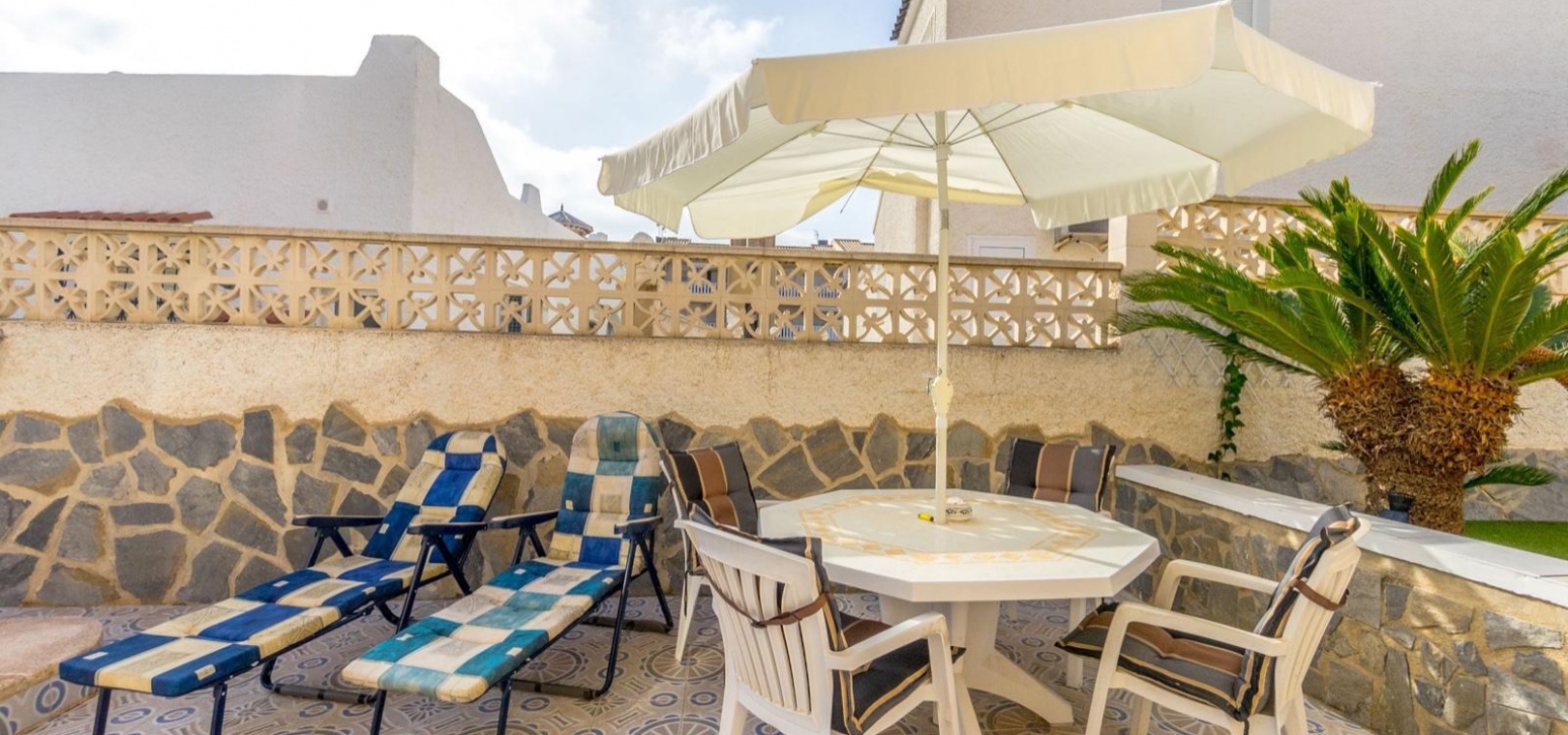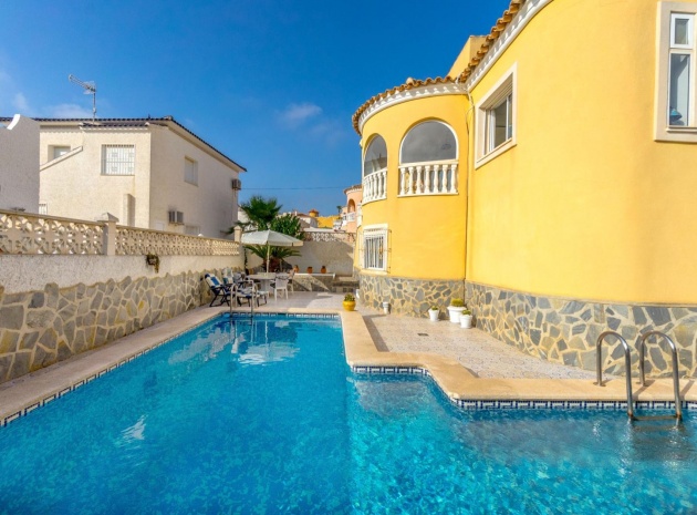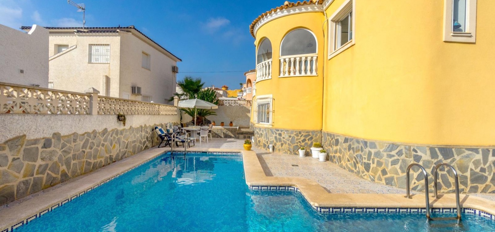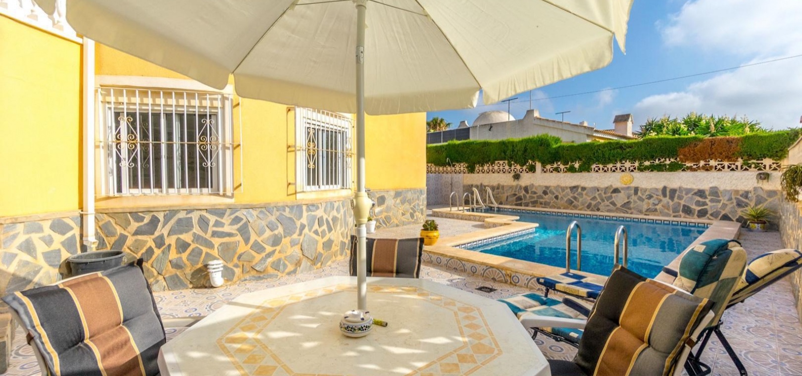En fristående villa med 3 sovrum och 2 badrum med en separat 1 säng 1 W/C lägenhet och en privat pool belägen i Blue Lagoon, Villamartin, Costa Blanca.
