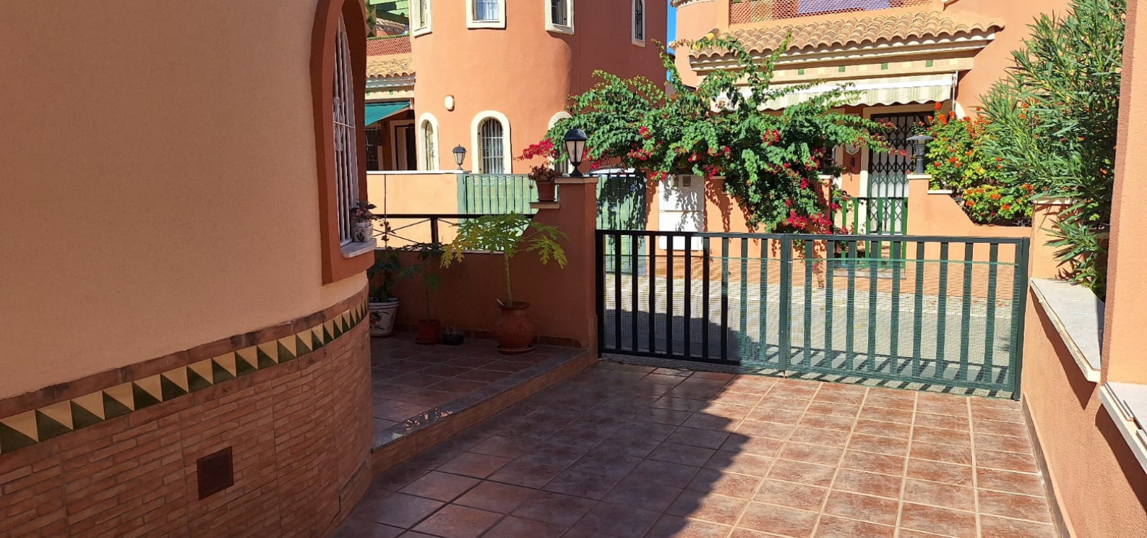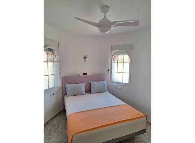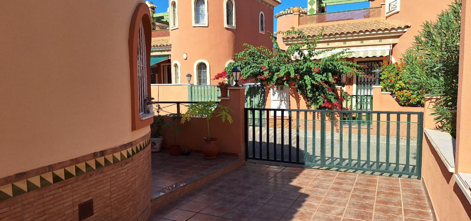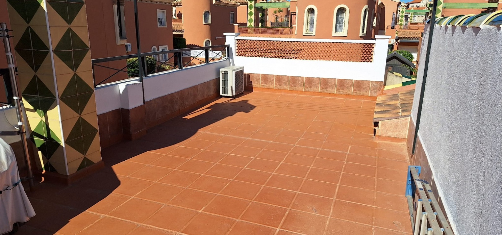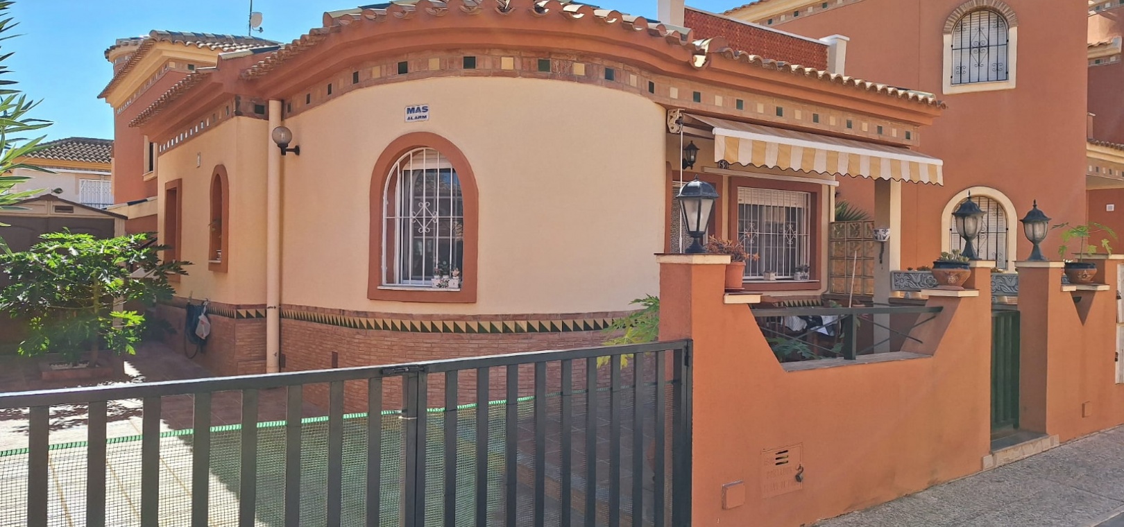 En fristående villa med 2 bäddar och 1 badrum i västerläge med ett privat takterrass i Villas San Luis, Playa Flamenca, Costa Blanca South.