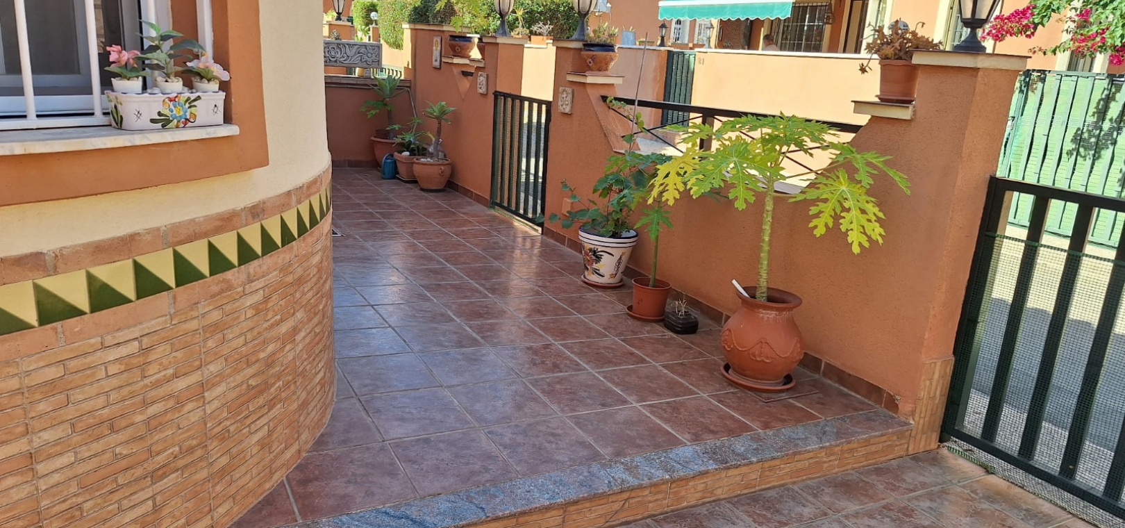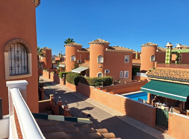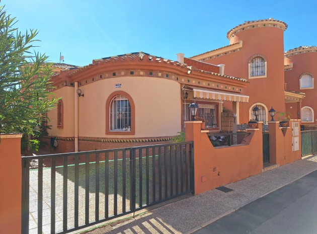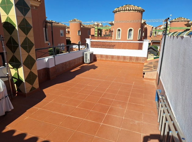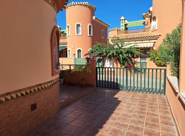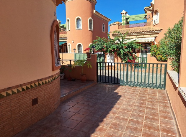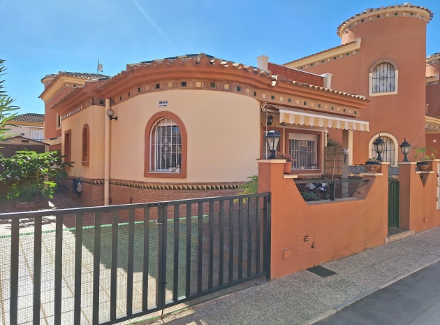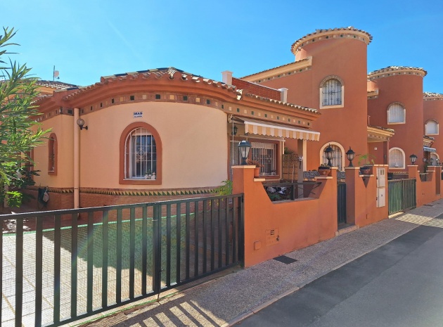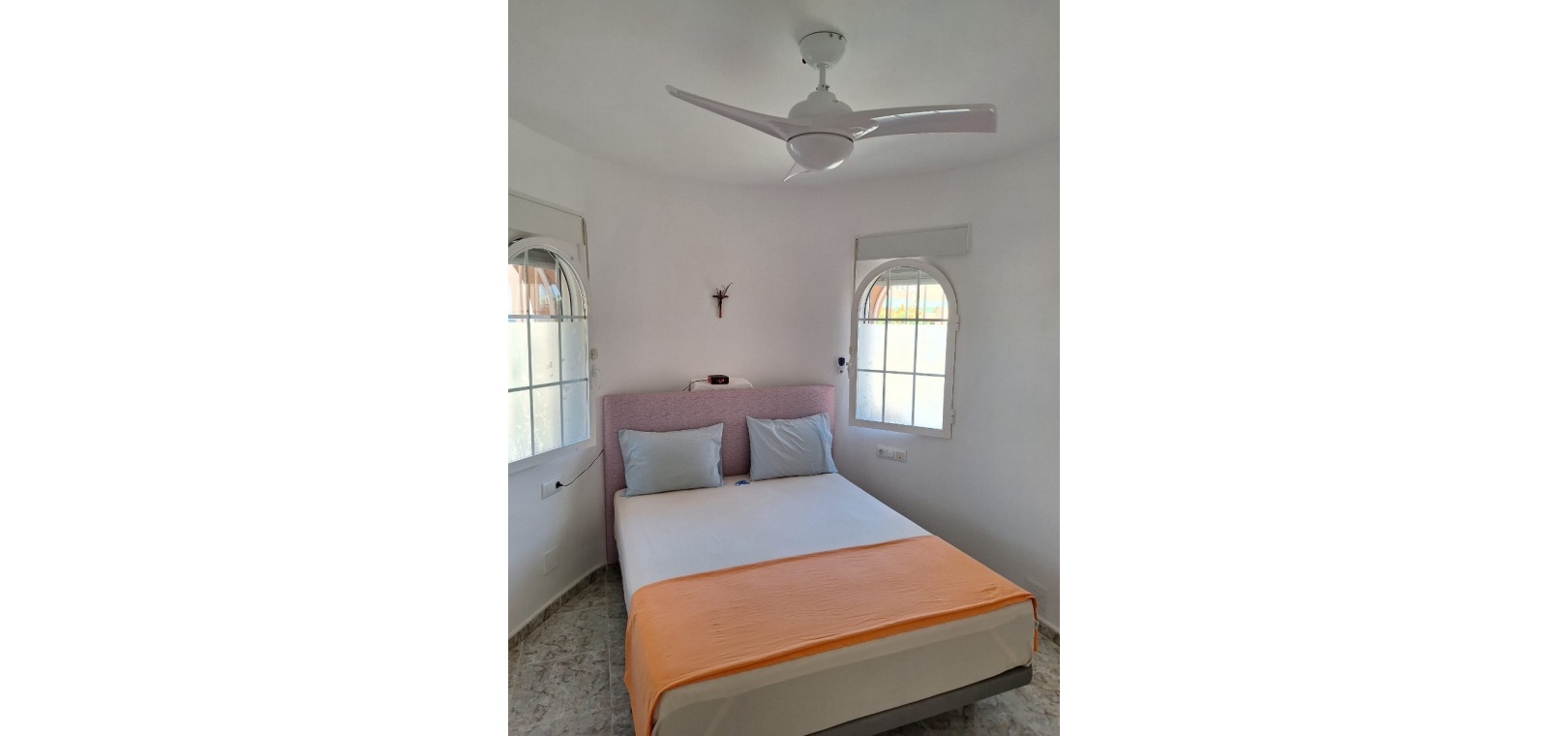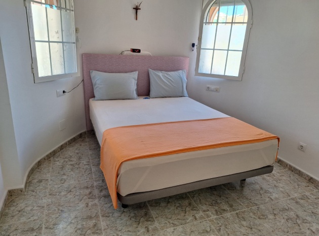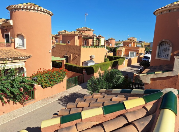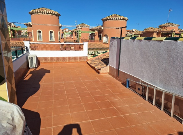 En fristående villa med 2 bäddar och 1 badrum i västerläge med ett privat takterrass i Villas San Luis, Playa Flamenca, Costa Blanca South.
