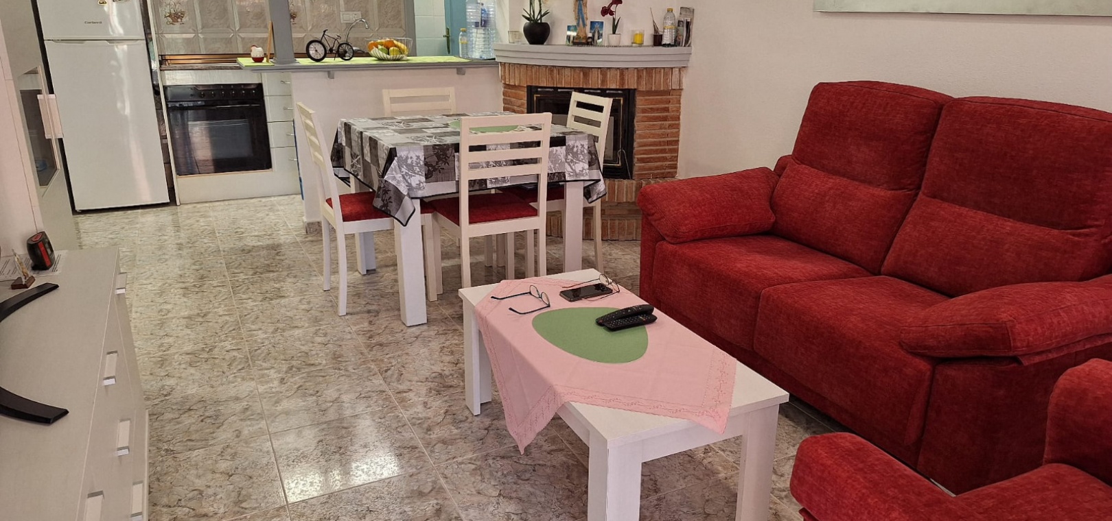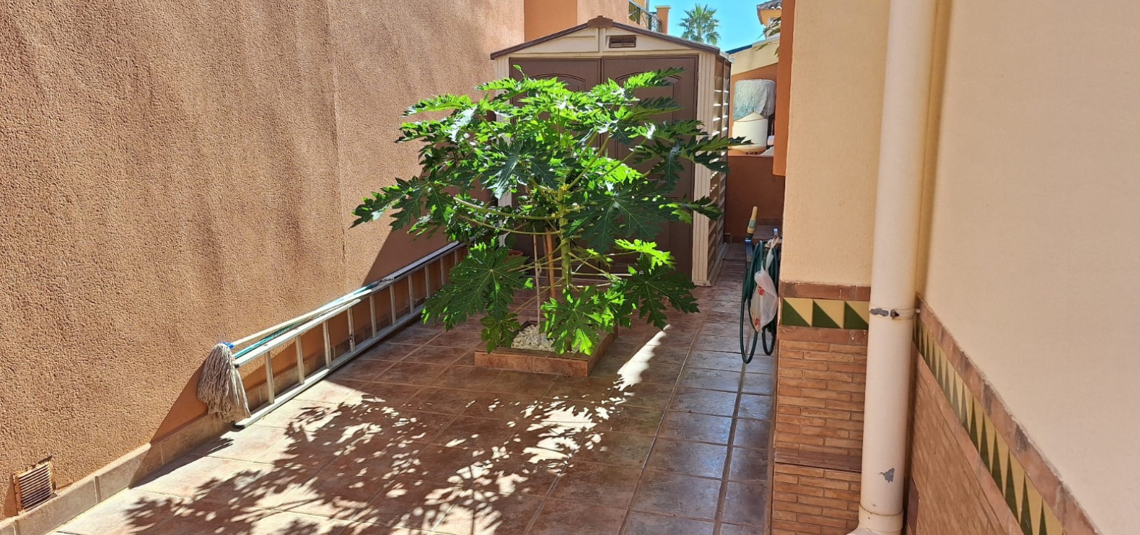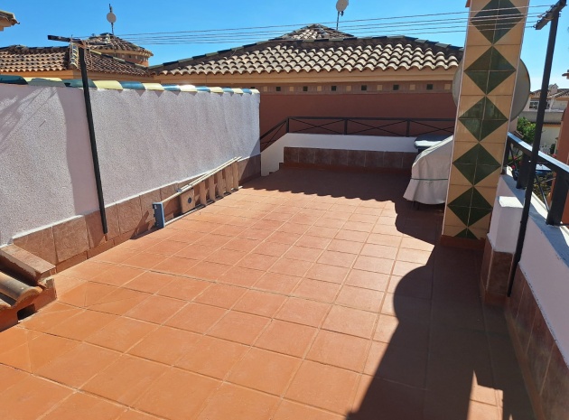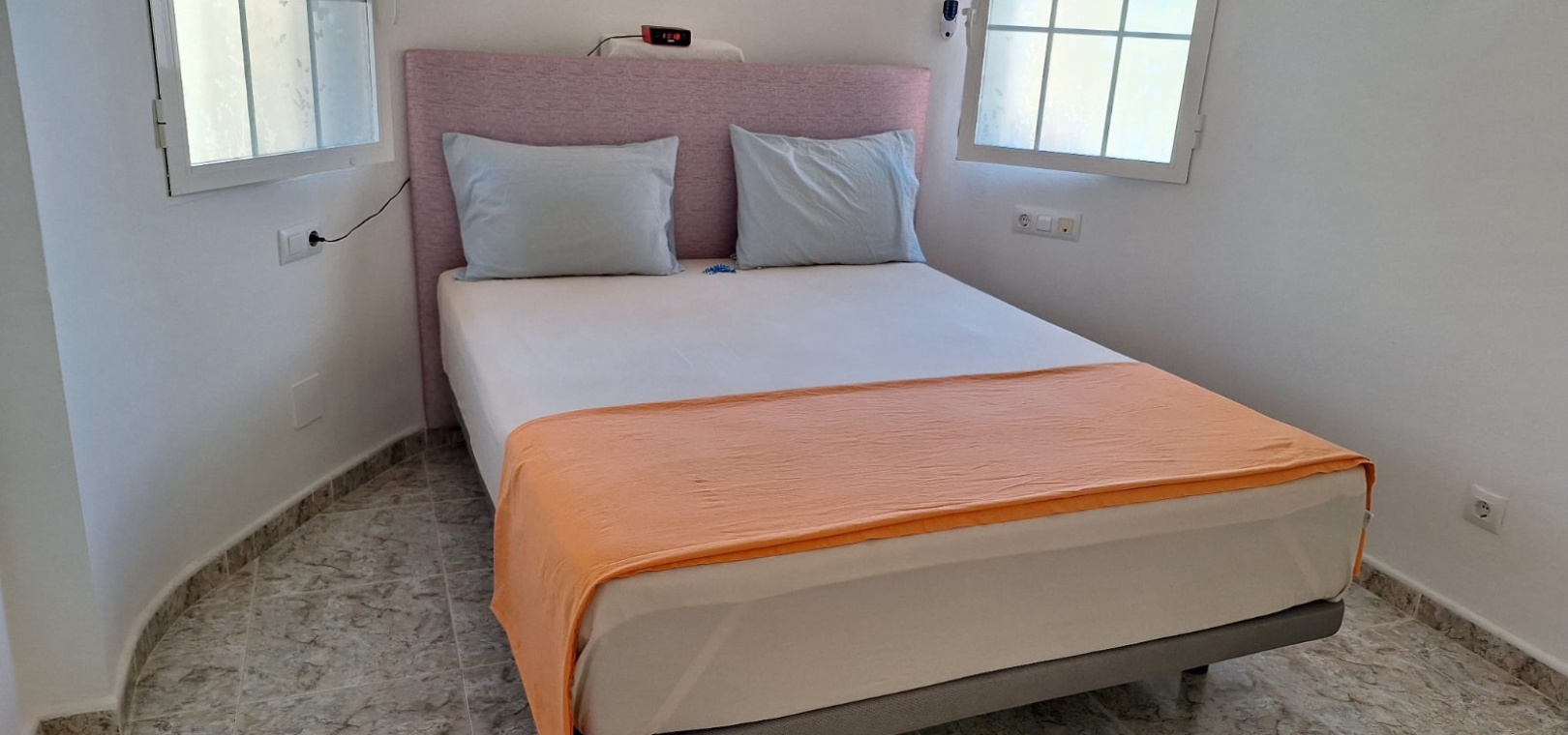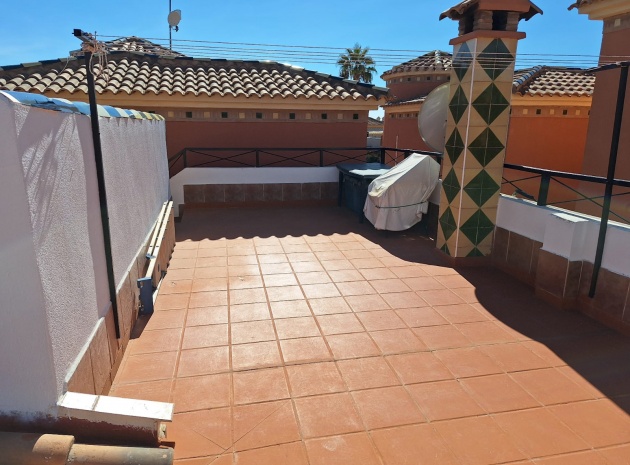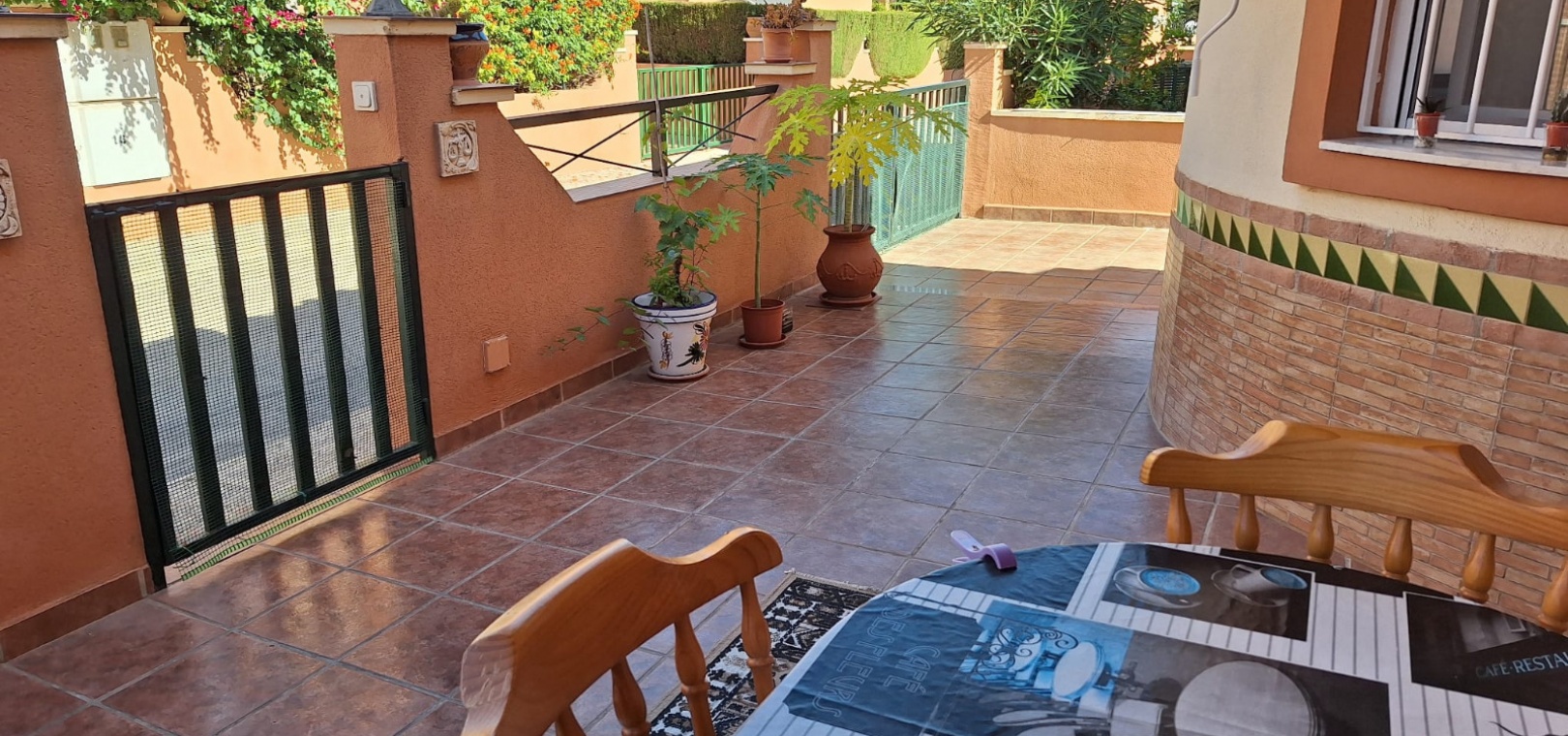 En fristående villa med 2 bäddar och 1 badrum i västerläge med ett privat takterrass i Villas San Luis, Playa Flamenca, Costa Blanca South.