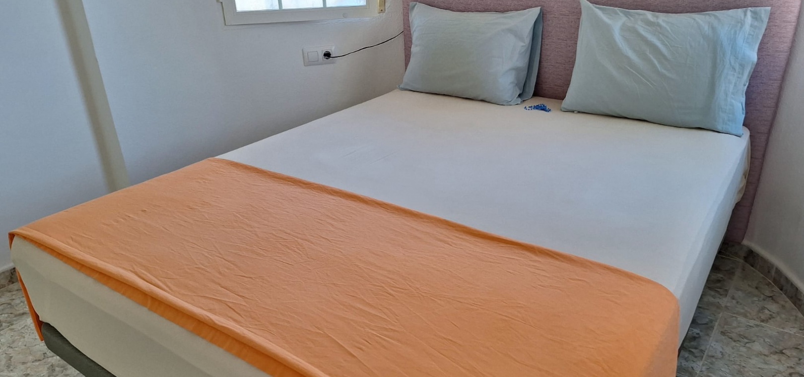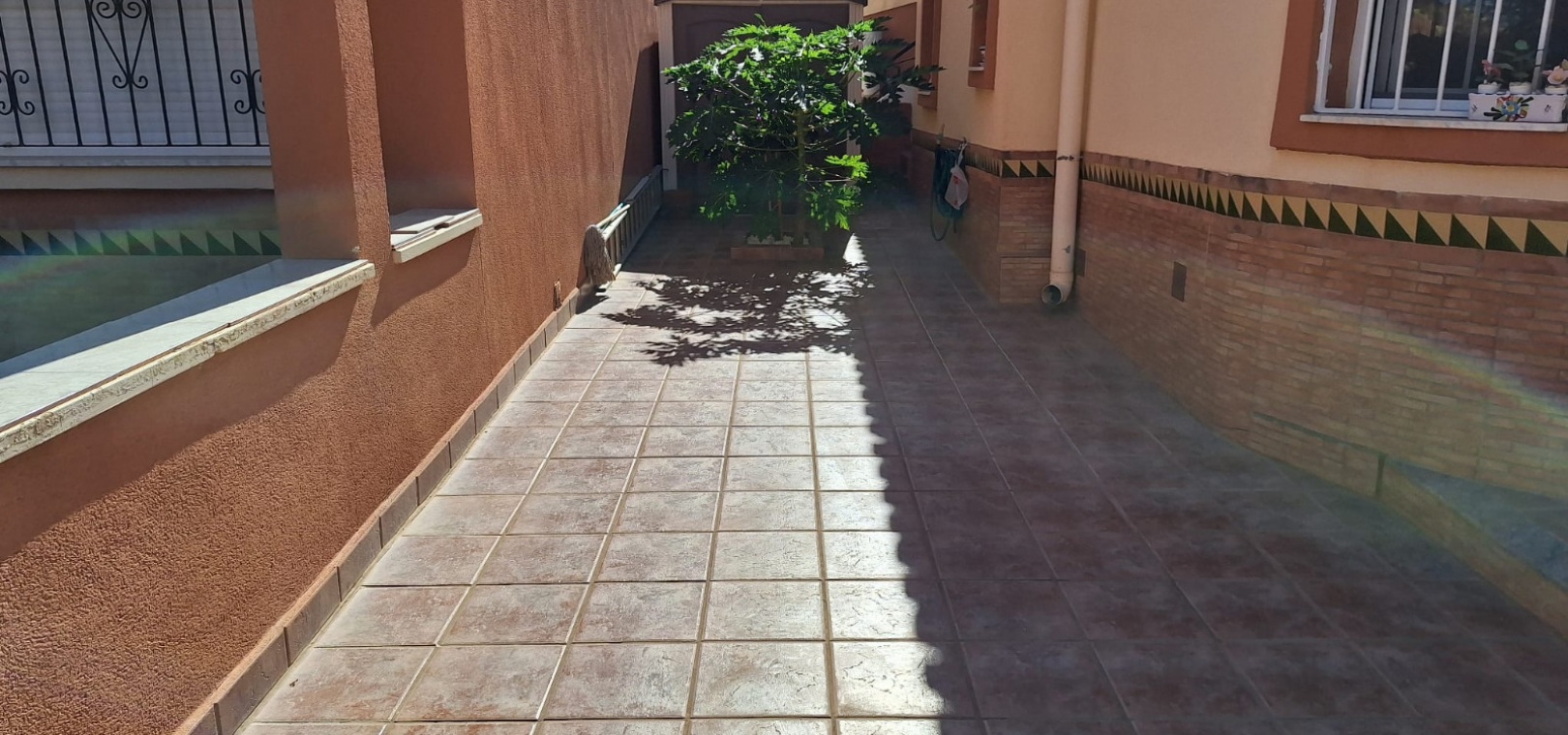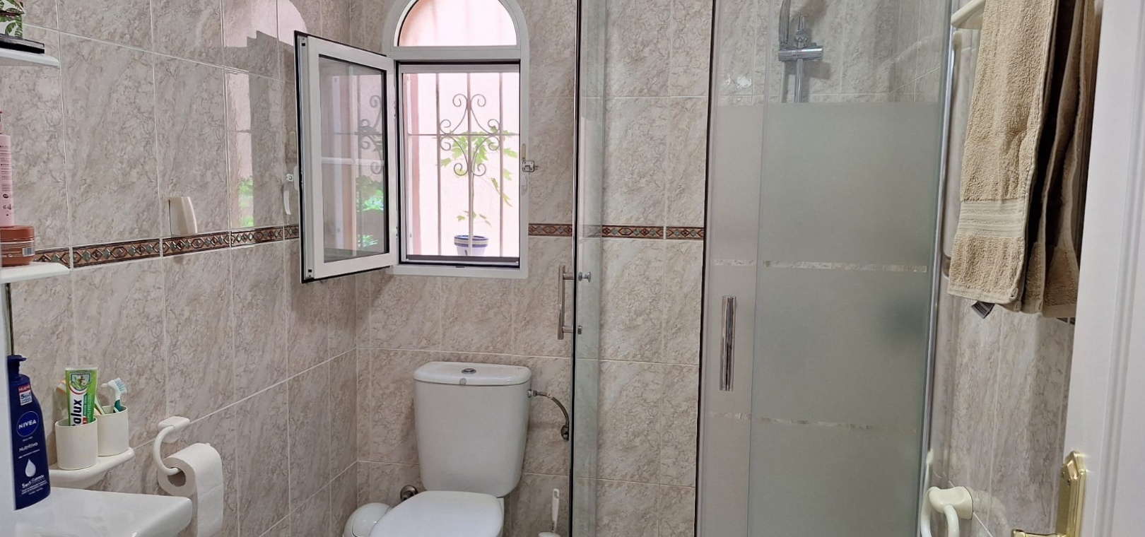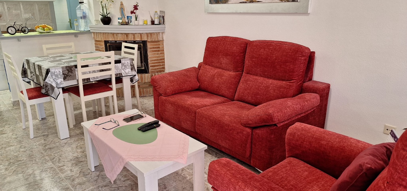 En fristående villa med 2 bäddar och 1 badrum i västerläge med ett privat takterrass i Villas San Luis, Playa Flamenca, Costa Blanca South.
