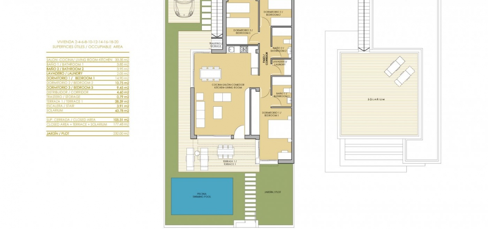 Villa Kauai är byggd på en nivå för maximal komfort och lätt att leva. Villan har ett rymligt vardagsrum med altandörrar som vetter mot den privata trädgården , där det finns plats för en valfri pool. Den innehåller också ett kök och matplats i öppen planlösning , en tvättstuga, ett master bedroom med eget badrum och inbyggda garderober, plus ytterligare två dubbelrum med inbyggda garderober och ett gästtoalett .