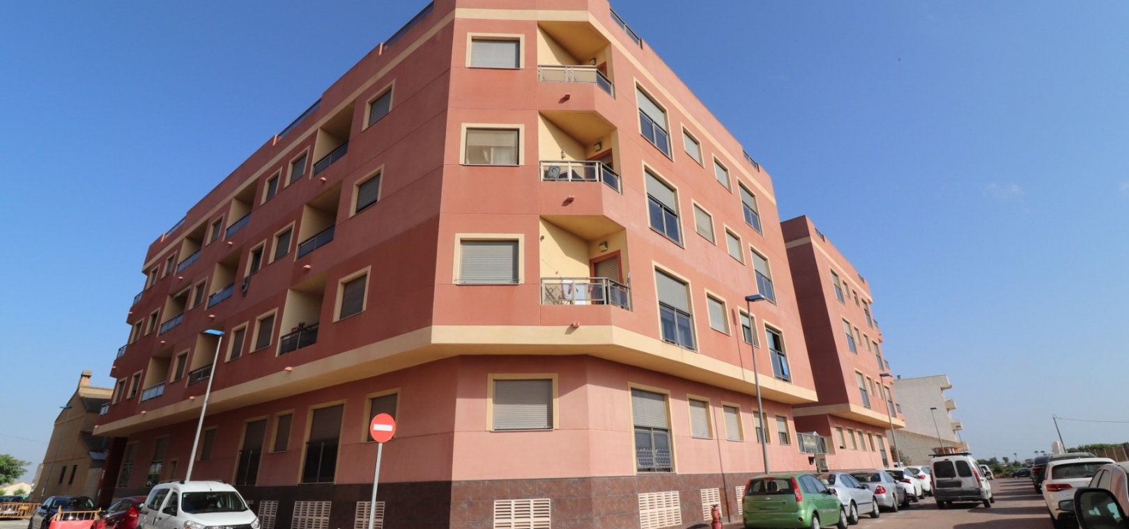 En fantastisk lägenhet med två sovrum, första våningen i Los Palacios, belägen bara ett par minuters promenad till affärer, stormarknader, en mängd olika kafébarer och den kommunala poolen. Belägen på gränsen till den spanska staden Rojales, denna lägenhet drar nytta av närhet till golfbanan La Marquesa och en rad ytterligare bekvämligheter, inklusive skolor, en populär veckomarknad och ett 24-timmars vårdcenter. De vackra stränderna på Costa Blanca South ligger bara 8 minuters bilresa bort. Lägenheten har ett ljust och luftigt vardagsrum/matsal med nästan golv till tak skjutbara glasfönster, vilket skapar ett ljust och välkomnande vardagsrum. Köket i öppen planlösning är både funktionellt och modernt. Det finns ett dubbelrum och ett enkelrum, båda med inbyggda garderober, samt ett familjeduschrum. Ytterligare funktioner inkluderar luftkonditionering och tillgång till ett gemensamt solarium, som också rymmer en pool, vilket är en perfekt plats för att koppla av och njuta av solskenet. Denna fastighet är idealisk som ett inlåsnings-och-lämna fritidshus eller en permanent bostad med lågt underhåll på Costa Blanca South.
