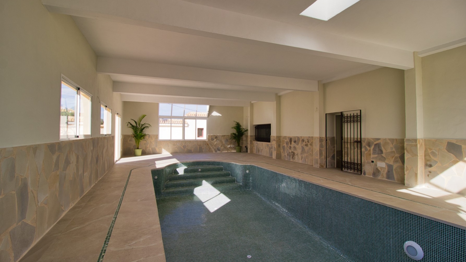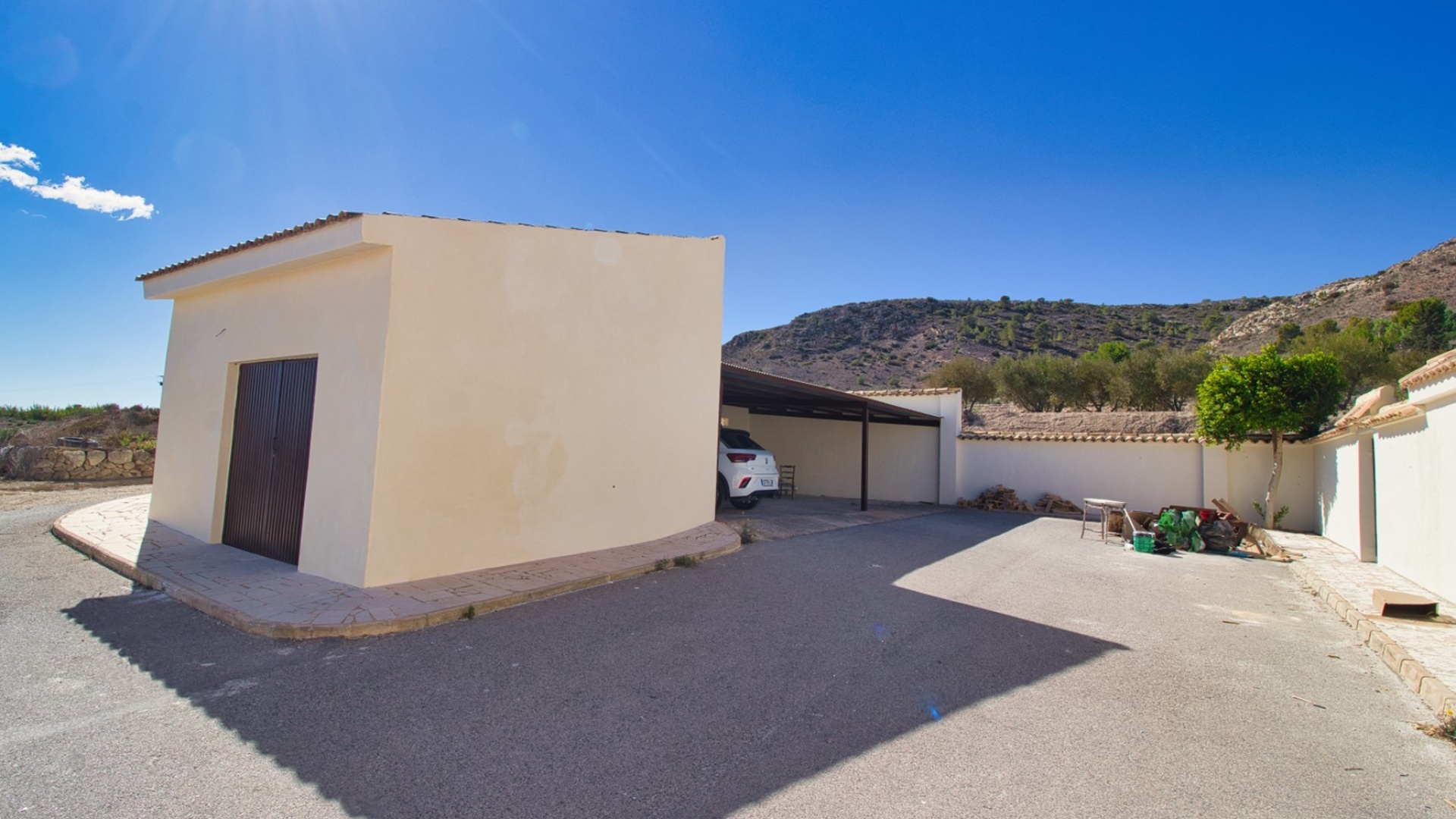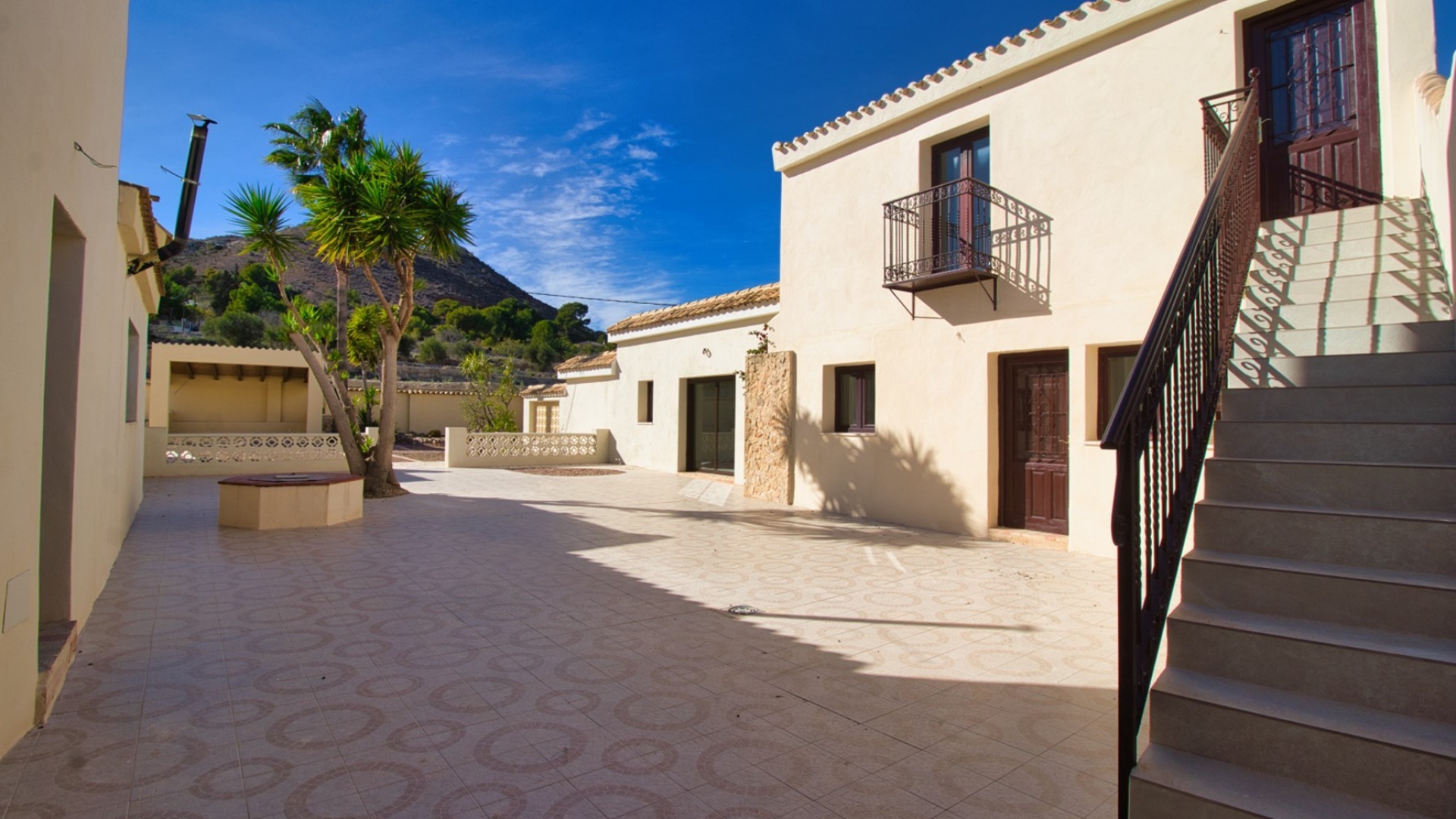 Denna fristående villa med sex sovrum och annex i västerläge i Aspe ligger bland pittoreska berg och landsbygd och erbjuder ett lugnt boende, bara 7-10 minuters bilresa från staden Aspe, där du hittar stormarknader, barer, restauranger, butiker och andra bekvämligheter. För bekvämlighetens skull finns en lokal bar cirka 20 minuters promenad bort, medan Alicantes flygplats ligger bara 25 minuters bilresa bort, och de vackra stränderna och staden ligger bara 30 minuter bort. Denna imponerande villa sträcker sig över cirka 500 m² och kombinerar modern funktionalitet med traditionell charm. Det L-formade vardagsrummet är ljust och rymligt, medan det separata köket/matsalen har tre uppsättningar höga fönster som släpper in naturligt ljus. En valvbåge leder in i ett mysigt vardagsrum med en funktionell braskamin och trappa till första våningen. Det finns också ett kontor på bottenvåningen, som kan omvandlas till ett extra sovrum, tillsammans med ett duschrum. Första våningen har fyra dubbelrum, inklusive en master suite med ett eget badrum med separat dusch. Bjälkar i taket och en härlig innergård förstärker villans traditionella attraktionskraft. Ett separat annex erbjuder ytterligare boende, komplett med duschrum, kök, vardagsrum och sovrum. På första våningen i annexet finns ett mångsidigt spelrum. Fastigheten har en otrolig privat inomhuspool på 20 x 10 cm, färdigställd till en elegant standard och något som bara finns i lyxhus, vilket ger en exklusiv touch. Villan ligger på en stor tomt på 16 400 m² och erbjuder gott om parkeringsplatser, carport och garage. Detta är en unik möjlighet att äga en fantastisk lantlig oas på Costa Blanca Södra, som blandar komfort, lyx och charm i en lugn miljö.