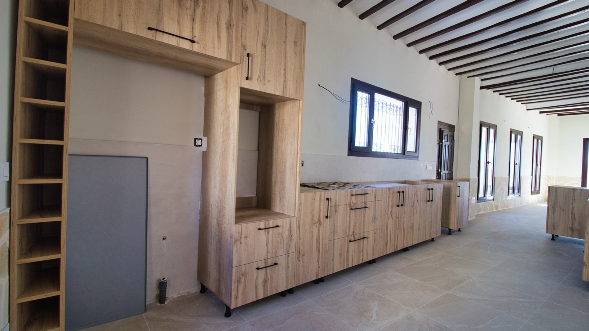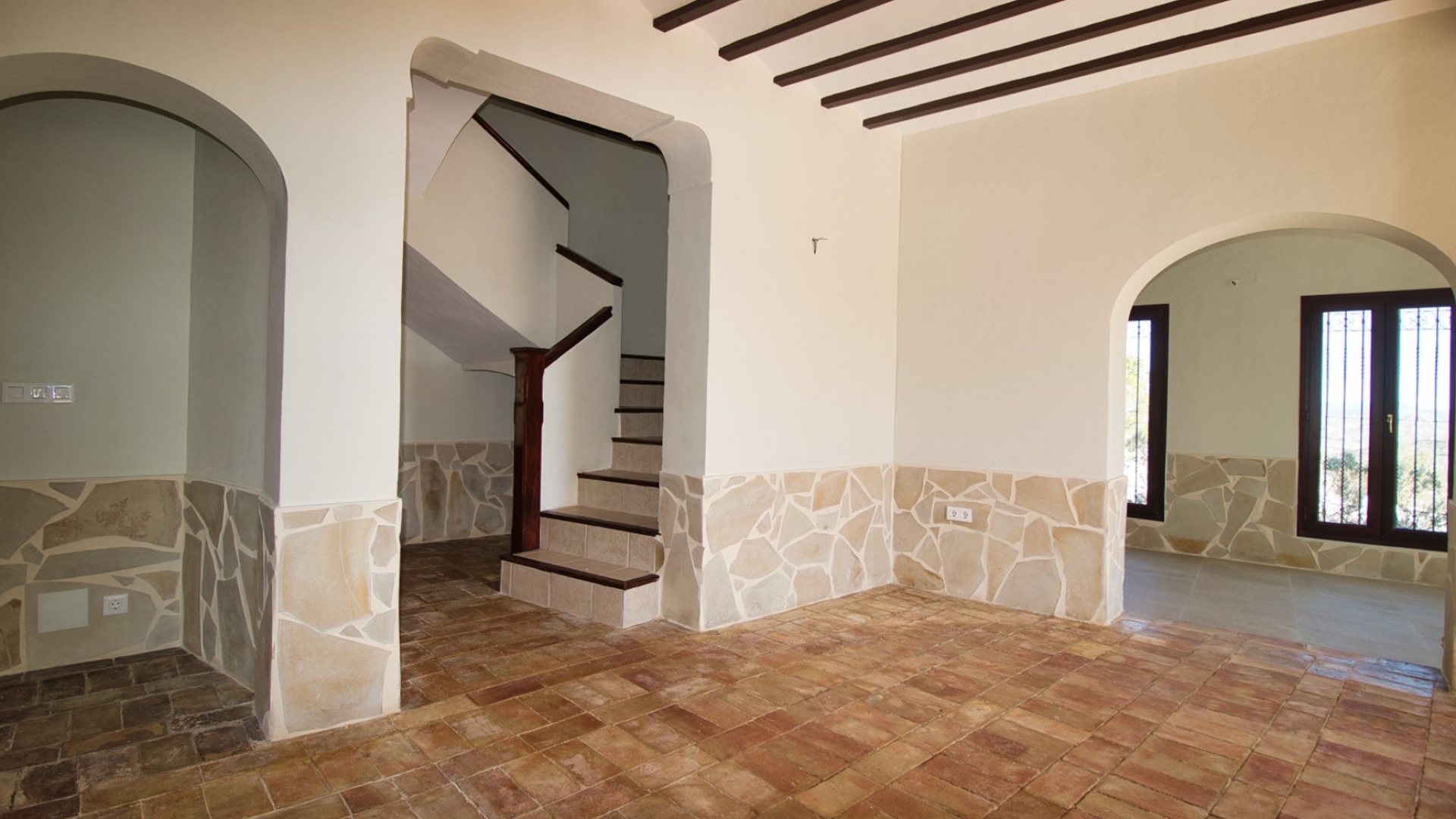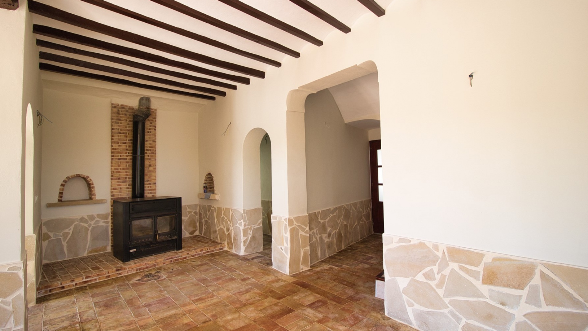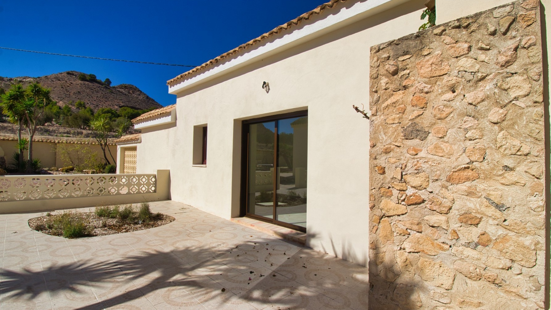 Denna fristående villa med sex sovrum och annex i västerläge i Aspe ligger bland pittoreska berg och landsbygd och erbjuder ett lugnt boende, bara 7-10 minuters bilresa från staden Aspe, där du hittar stormarknader, barer, restauranger, butiker och andra bekvämligheter. För bekvämlighetens skull finns en lokal bar cirka 20 minuters promenad bort, medan Alicantes flygplats ligger bara 25 minuters bilresa bort, och de vackra stränderna och staden ligger bara 30 minuter bort. Denna imponerande villa sträcker sig över cirka 500 m² och kombinerar modern funktionalitet med traditionell charm. Det L-formade vardagsrummet är ljust och rymligt, medan det separata köket/matsalen har tre uppsättningar höga fönster som släpper in naturligt ljus. En valvbåge leder in i ett mysigt vardagsrum med en funktionell braskamin och trappa till första våningen. Det finns också ett kontor på bottenvåningen, som kan omvandlas till ett extra sovrum, tillsammans med ett duschrum. Första våningen har fyra dubbelrum, inklusive en master suite med ett eget badrum med separat dusch. Bjälkar i taket och en härlig innergård förstärker villans traditionella attraktionskraft. Ett separat annex erbjuder ytterligare boende, komplett med duschrum, kök, vardagsrum och sovrum. På första våningen i annexet finns ett mångsidigt spelrum. Fastigheten har en otrolig privat inomhuspool på 20 x 10 cm, färdigställd till en elegant standard och något som bara finns i lyxhus, vilket ger en exklusiv touch. Villan ligger på en stor tomt på 16 400 m² och erbjuder gott om parkeringsplatser, carport och garage. Detta är en unik möjlighet att äga en fantastisk lantlig oas på Costa Blanca Södra, som blandar komfort, lyx och charm i en lugn miljö.