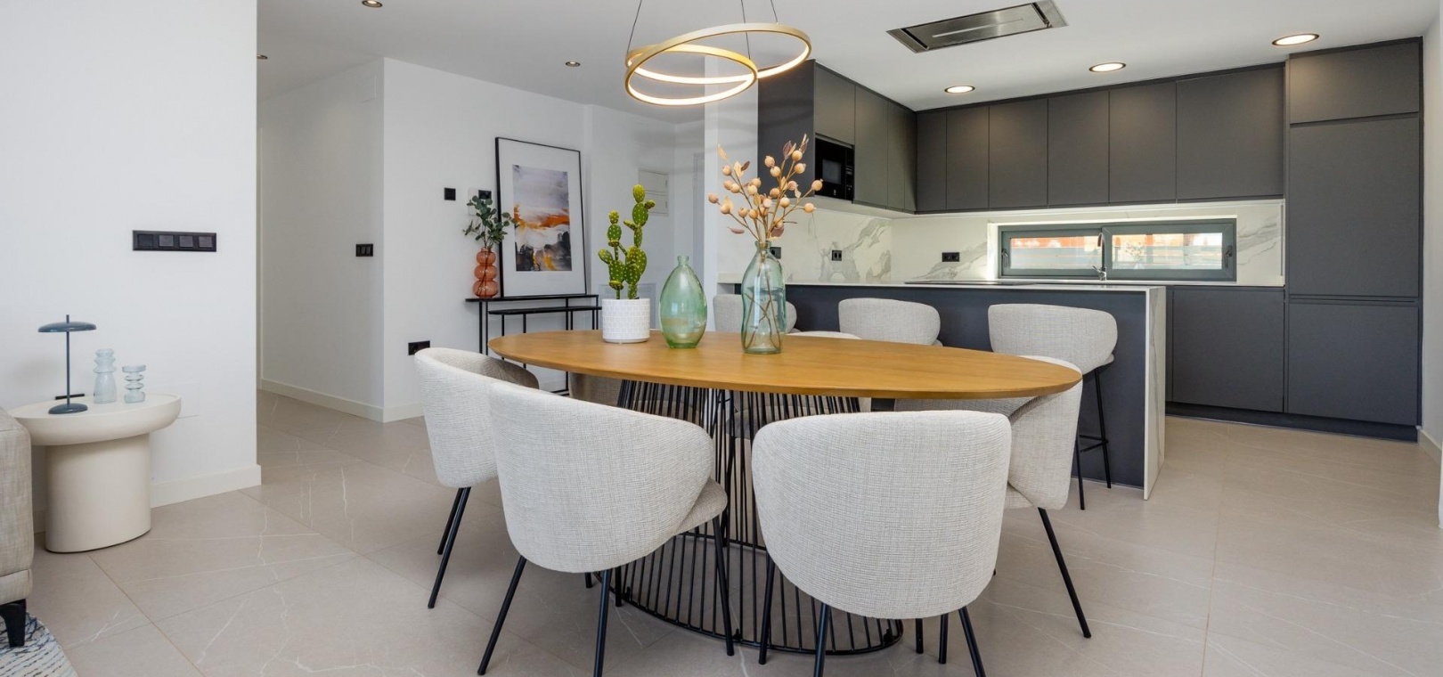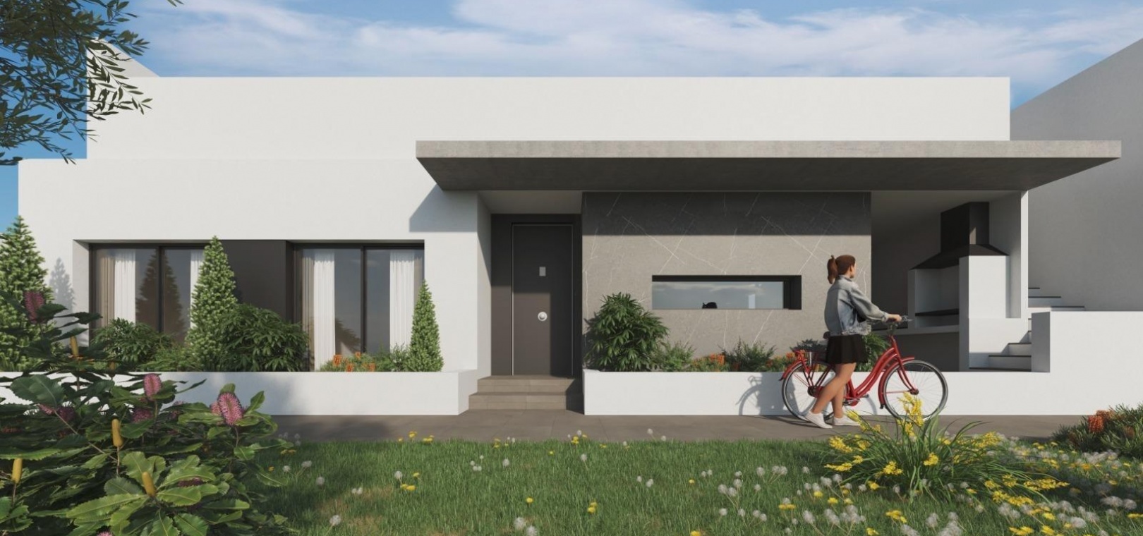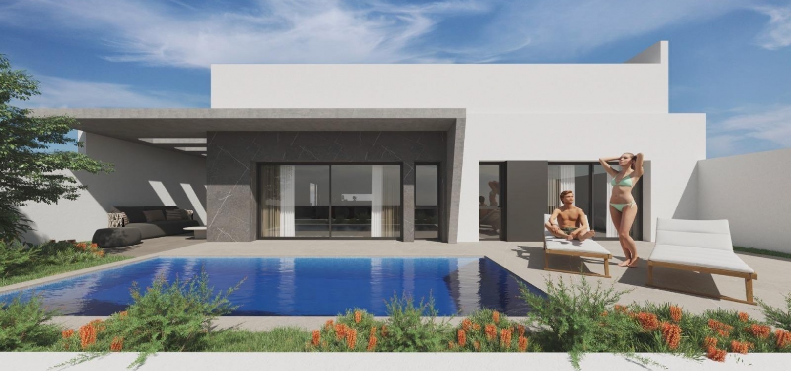Dessa enplansvillor är genomtänkt utformade för maximal komfort och enkelhet att leva. Med en öppen planlösning ger de gott om utrymme för avkoppling och underhållning. Villorna har högkvalitativa ytbehandlingar, inklusive termiska aluminiumfönster, Climalit tvåglasfönster och förinstallation för kanaliserad luftkonditionering. För extra bekvämlighet har bostäderna elektriska fönsterluckor, moderna badrum med duschkar i harts och inbyggda svarta kranar samt privat parkering i det underjordiska garaget med extra förvaringsutrymme.