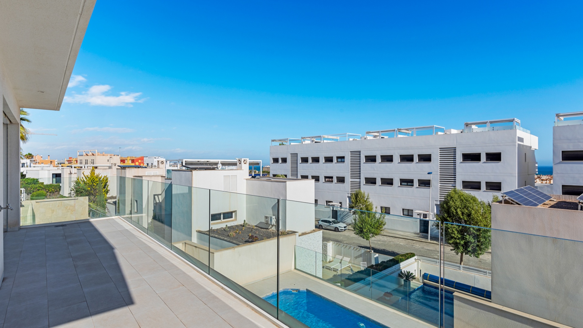 Exklusiv villa i Guardamar Hills till salu – utmärkt läge nära stranden Denna lyxvilla ligger i det prestigefyllda området Guardamar Hills och erbjuder en exceptionell blandning av modern design, utrymme och ett oslagbart läge. Detta fantastiska hem byggdes 2016 och ligger bara 900 meter från de gyllene stränderna i Guardamar de Segura och inom gångavstånd från den livliga stadskärnan. Rymlig layout över tre nivåer Bottenvåning: En slående öppen trappa skiljer det eleganta vardagsrummet från det eleganta köket och matsalen. Designen med öppen planlösning, exklusiva ytskikt och naturligt ljus skapar en inbjudande atmosfär. Första våningen: Två rymliga sovrum med eget badrum, båda med havsutsikt och gott om dagsljus. Källarlägenhet: Ett fullt utrustat fristående vardagsrum med ett helt nytt kök, ett rymligt vardagsrum, två extra sovrum med eget badrum och en separat gästtoalett. Stora skjutdörrar öppnar direkt till terrasserna och den privata poolen och fyller källaren med naturligt ljus. Utomhusliv Panoramautsikt Denna villa är designad för friluftsliv i Medelhavet, med: En stor privat pool i en vackert anlagd trädgård. Flera terrasser för att njuta av solen eller underhålla gäster. Ett fantastiskt solarium på taket med hisnande panoramautsikt över havet och Guardamars frodiga kullar. Utmärkt läge – gångavstånd till strandfaciliteter Detta hem ligger i Guardamar de Segura och har den perfekta balansen mellan lugn och bekvämlighet. 900 meter till stranden – Njut av den orörda kustlinjen inom några minuter. 500 meter till bekvämligheter – Kaféer, restauranger och butiker ligger bara en kort promenad bort. 15 minuter till golfbanor – En fristad för golfälskare. 30 minuters bilresa till Alicantes flygplats – Enkel åtkomst för internationella resor. Nyckelfunktioner: ✅ Byggår: 2016 ✅ 4 sovrum | 4 badrum | 2 gästtoaletter ✅ Total byggnad: 448m² ✅ Privat pool Trädgård ✅ Rymliga terrasser Solarium ✅ Havsutsikt från flera nivåer ✅ Fullt utrustad källarlägenhet ✅ Privat parkering ✅ Luftkonditionering Exklusiv finish Denna lyxiga villa är perfekt för dem som söker ett rymligt och privat, stilfullt hem. Med fantastisk havsutsikt, en privat pool och en kort promenad till stranden och centrum är detta en sällsynt möjlighet i Guardamar de Segura. Kontakta oss idag för att boka en visning!