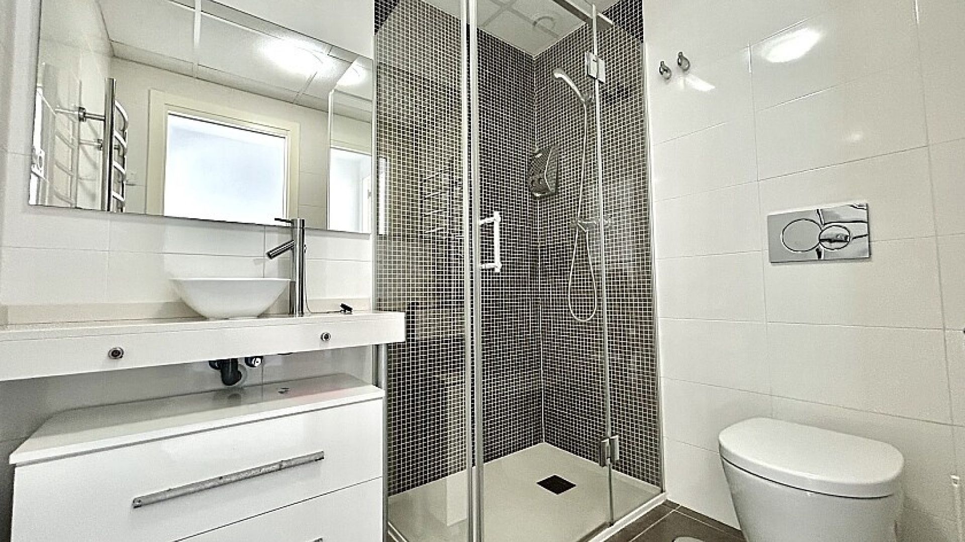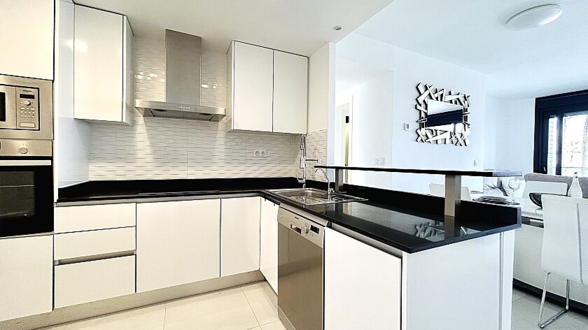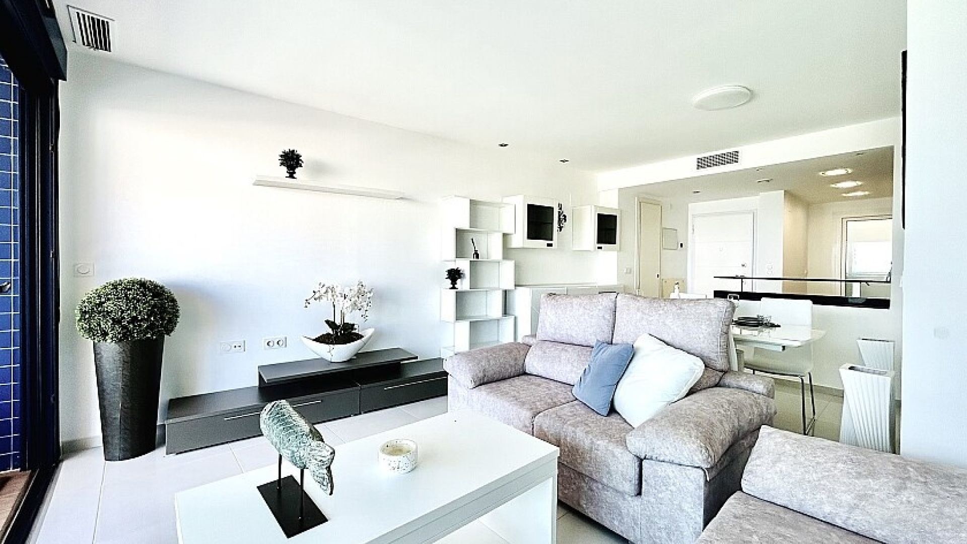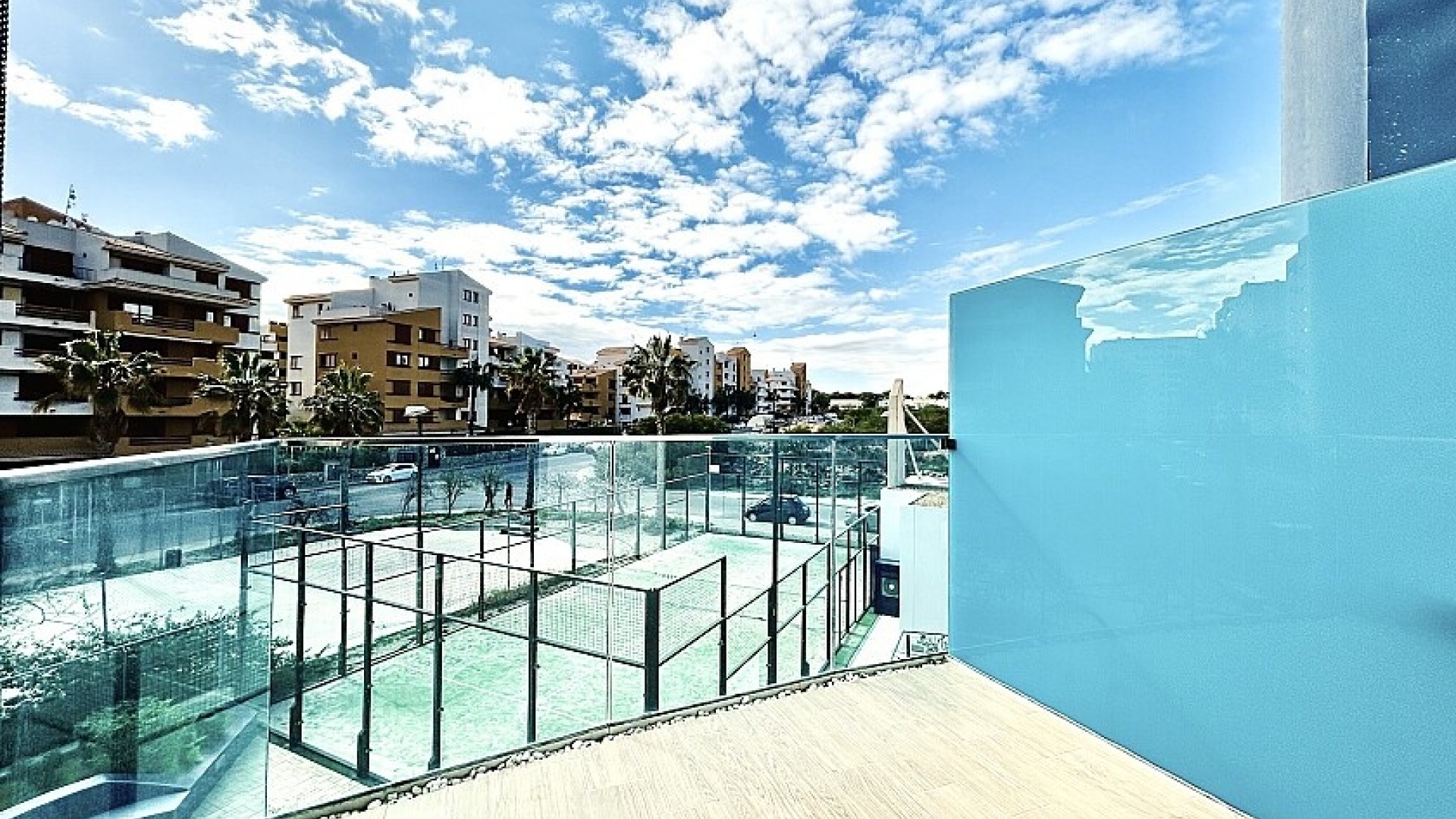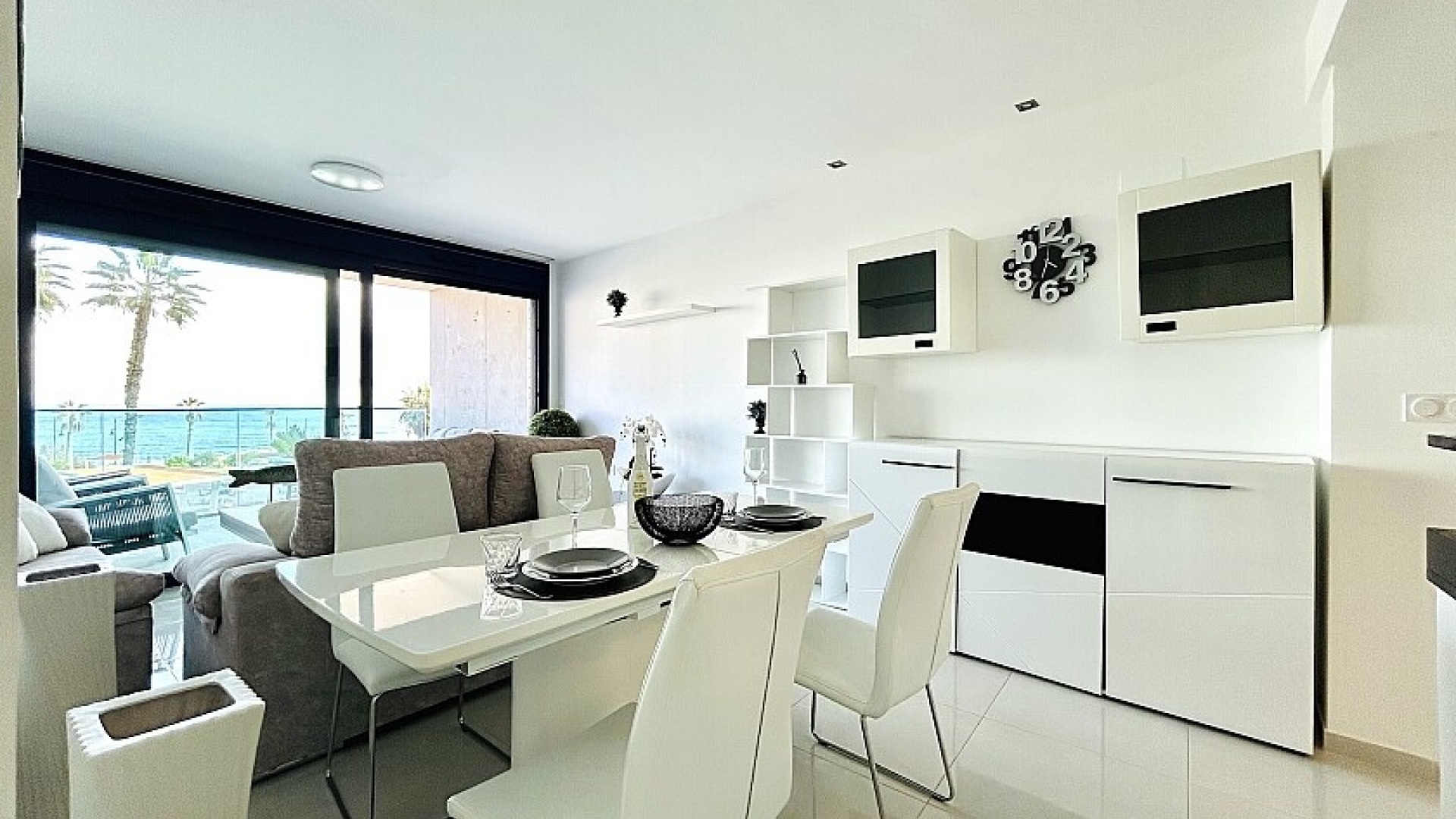 2 sovrum nära havet i Punta Prima. Lyxig lägenhet med 2 sovrum, 2 badrum, vardagsrum/matsal med kök i öppen planlösning, galleri och två terrasser: en stor terrass på framsidan i österläge med spektakulär utsikt över havet, Torrevieja och samhällsområdena med flera pooler, gym, jacuzzi , bastu, barn- och sportytor och ytterligare en terrass i söderläge. Den ligger på 1:a våningen och har även underjordisk parkering och ett förråd. Bara några meters promenad till sandstranden Punta Prima och Cala Ferrís, nära till affärer, restauranger, kaféer, kollektivtrafik och andra tjänster. 5-10 minuters bilresa till Torreviejas centrum, Zenia Boulevard köpcentrum och flera golfbanor i området.