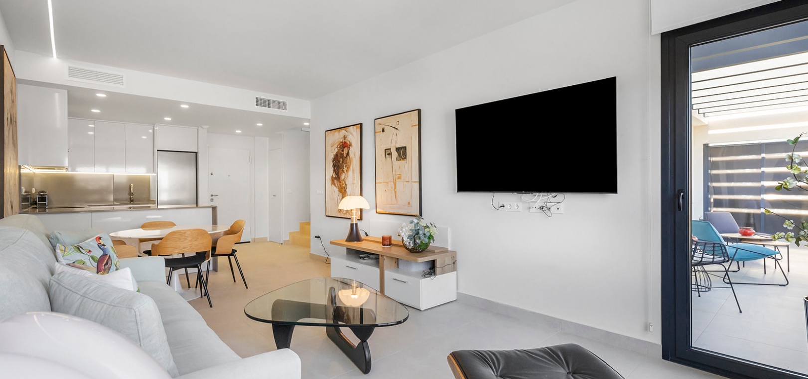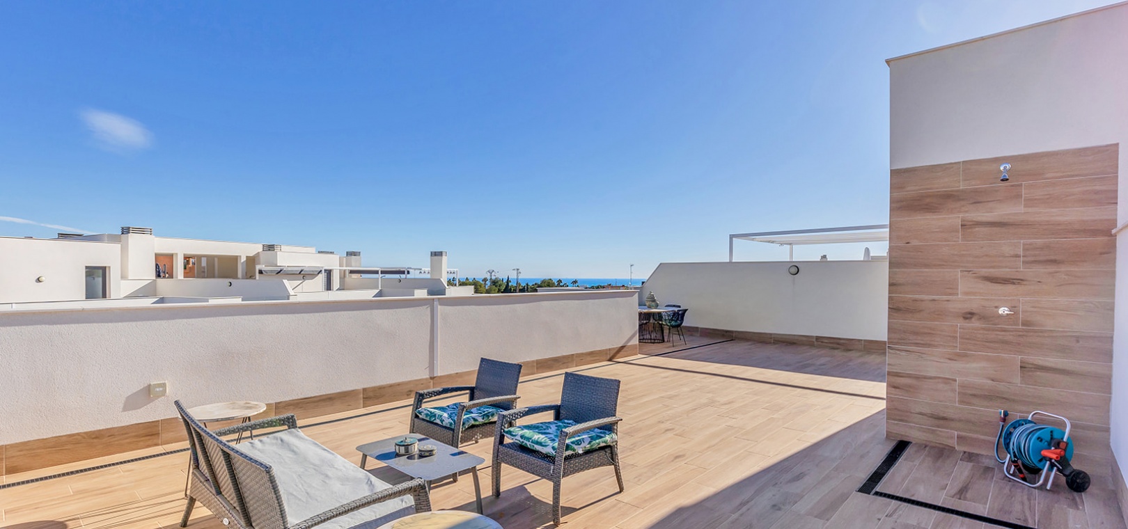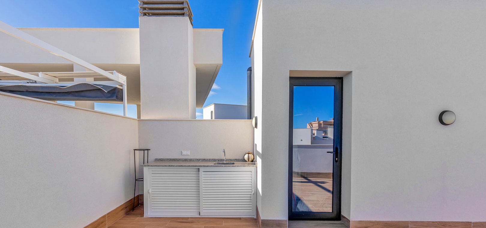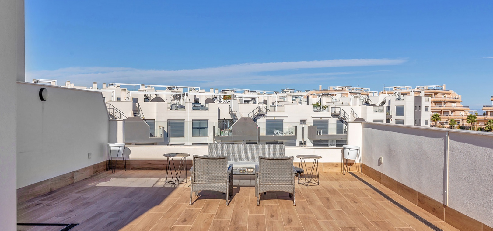 Beläget i det vackra bostadsområdet Valentino Golf de Villamartin, är denna nybyggda takvåning i 2 plan en riktig pärla. Med 90 m2 interiör, en terrass på 20 m2 och ett 80 m2 solarium med utsikt över havet, är detta hem perfekt för dem som söker en avslappnad och sofistikerad livsstil.