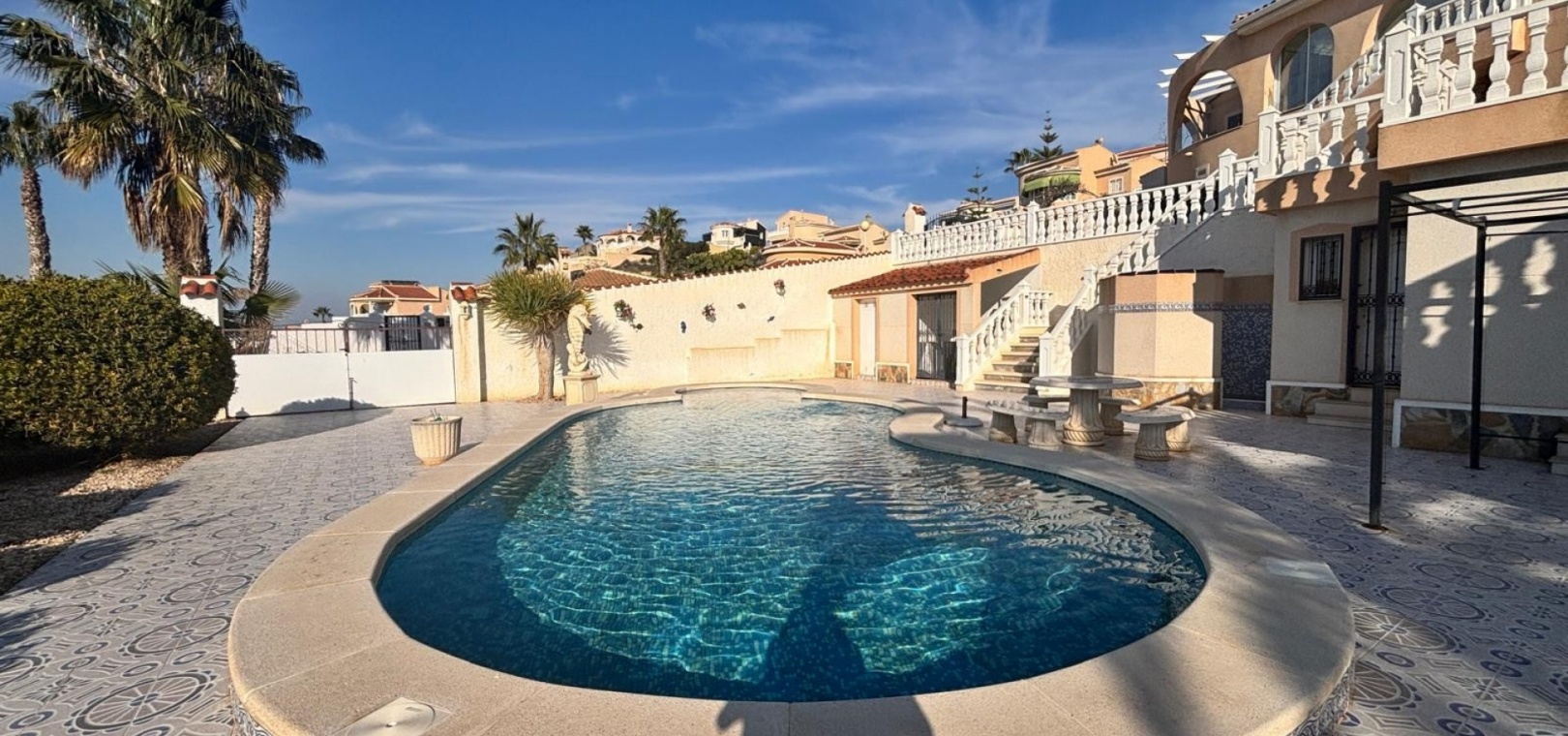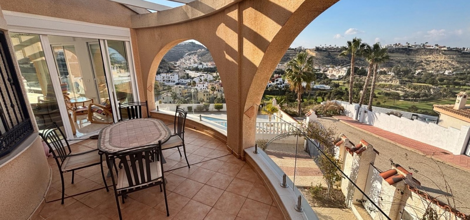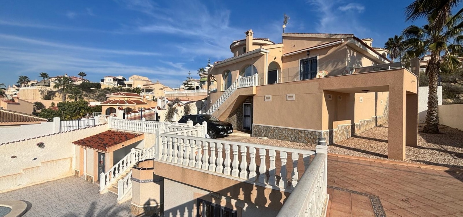 Här har vi denna fantastiska fristående villa i Luz-stil med fantastisk utsikt över golfbanan La Marquesa och dess omgivningar. Huvudvillan består av 3 dubbelrum med 3 badrum, varav 2 har eget badrum. Stort vardagsrum med separat matsal och kök med grovkök. Det finns 3 huvudsakliga terrasser från huvudbyggnaden 2 är öppen och en sluten mycket ljus med dörrar och fönster som kan öppnas upp och ger känslan av en stor terrass igen med fantastisk utsikt mot poolen och golfen. Dig under kan omvandlas till en stor underbyggd med 3 m högt i tak så massor av potential .. på utsidan finns det återigen gott om terrasserade områden och en stor 12x5 uppvärmd pool, det finns en separat 2 säng 2 badrum fristående bungalow som har utsikt över poolen. Komplett med många extrafunktioner luftkonditionering, golvvärme, elektriska grindar.........