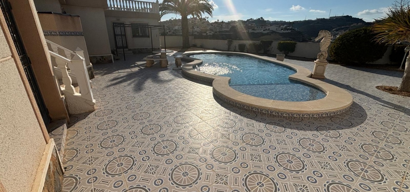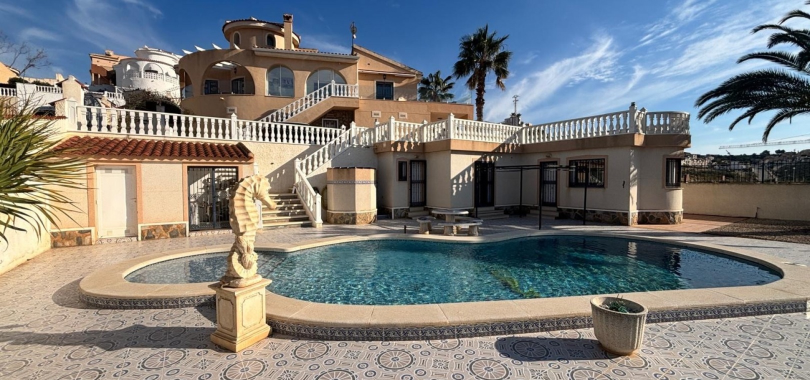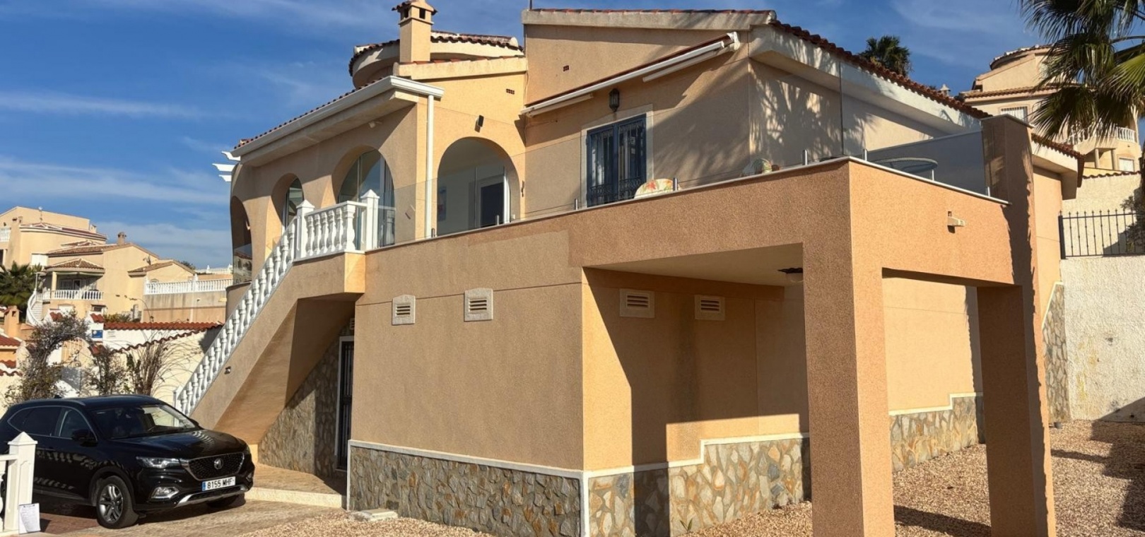 Här har vi denna fantastiska fristående villa i Luz-stil med fantastisk utsikt över golfbanan La Marquesa och dess omgivningar. Huvudvillan består av 3 dubbelrum med 3 badrum, varav 2 har eget badrum. Stort vardagsrum med separat matsal och kök med grovkök. Det finns 3 huvudsakliga terrasser från huvudbyggnaden 2 är öppen och en sluten mycket ljus med dörrar och fönster som kan öppnas upp och ger känslan av en stor terrass igen med fantastisk utsikt mot poolen och golfen. Dig under kan omvandlas till en stor underbyggd med 3 m högt i tak så massor av potential .. på utsidan finns det återigen gott om terrasserade områden och en stor 12x5 uppvärmd pool, det finns en separat 2 säng 2 badrum fristående bungalow som har utsikt över poolen. Komplett med många extrafunktioner luftkonditionering, golvvärme, elektriska grindar.........