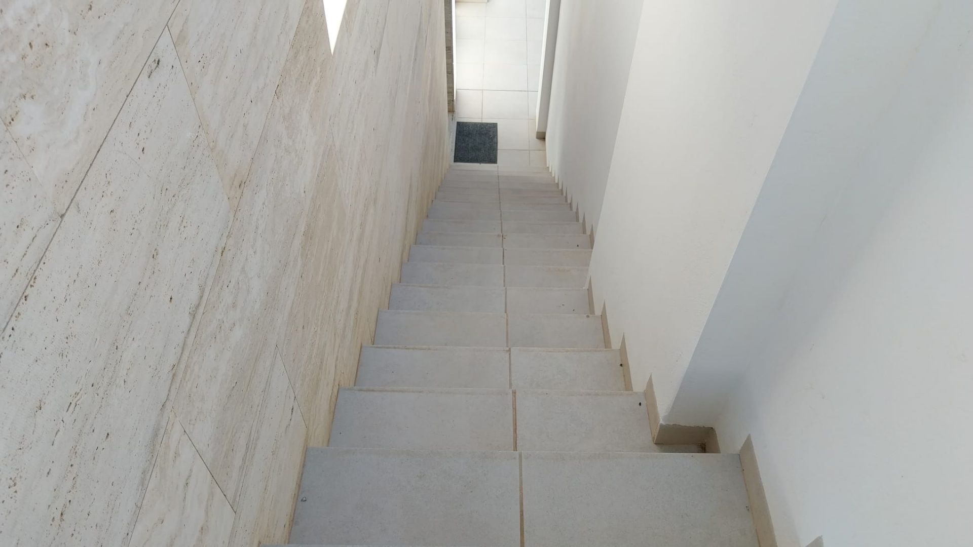 – Tidlös elegans – Byggnadens exteriör är färdig med utsökt beige natursten, vilket ger en känsla av klass och hållbarhet.