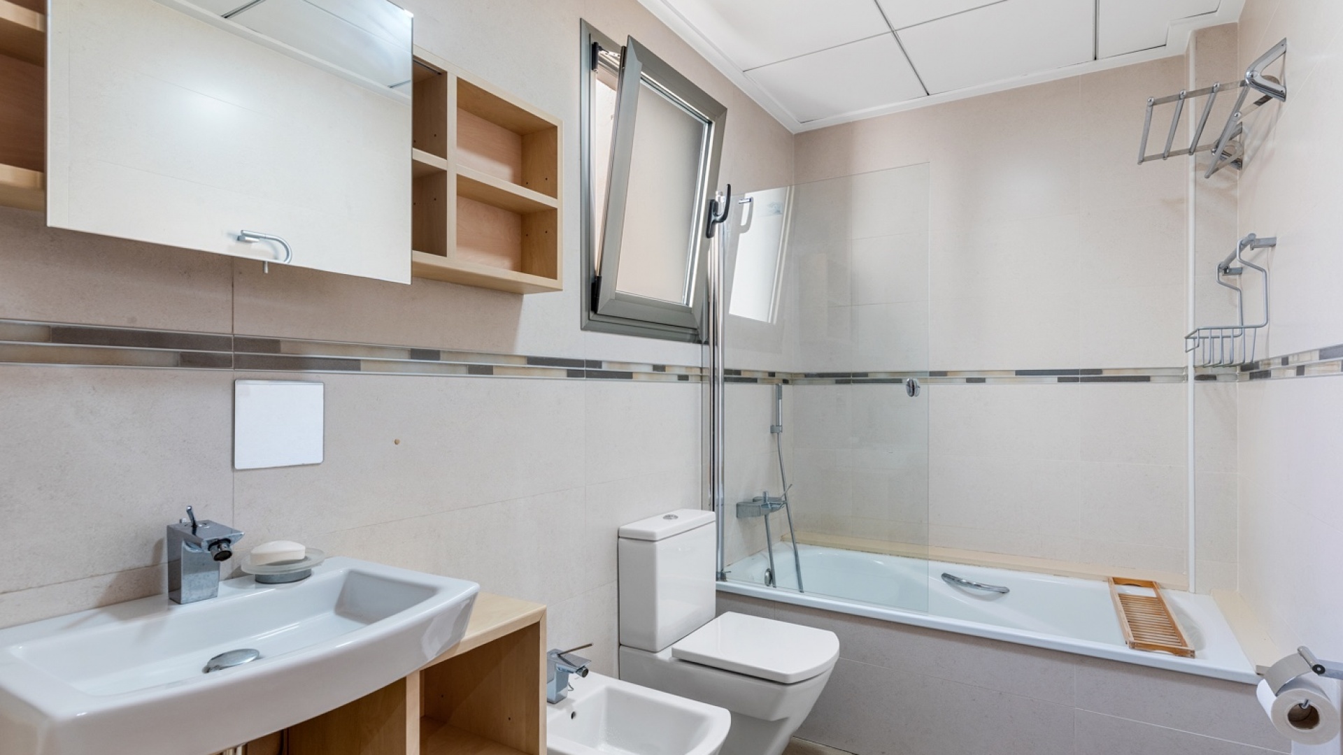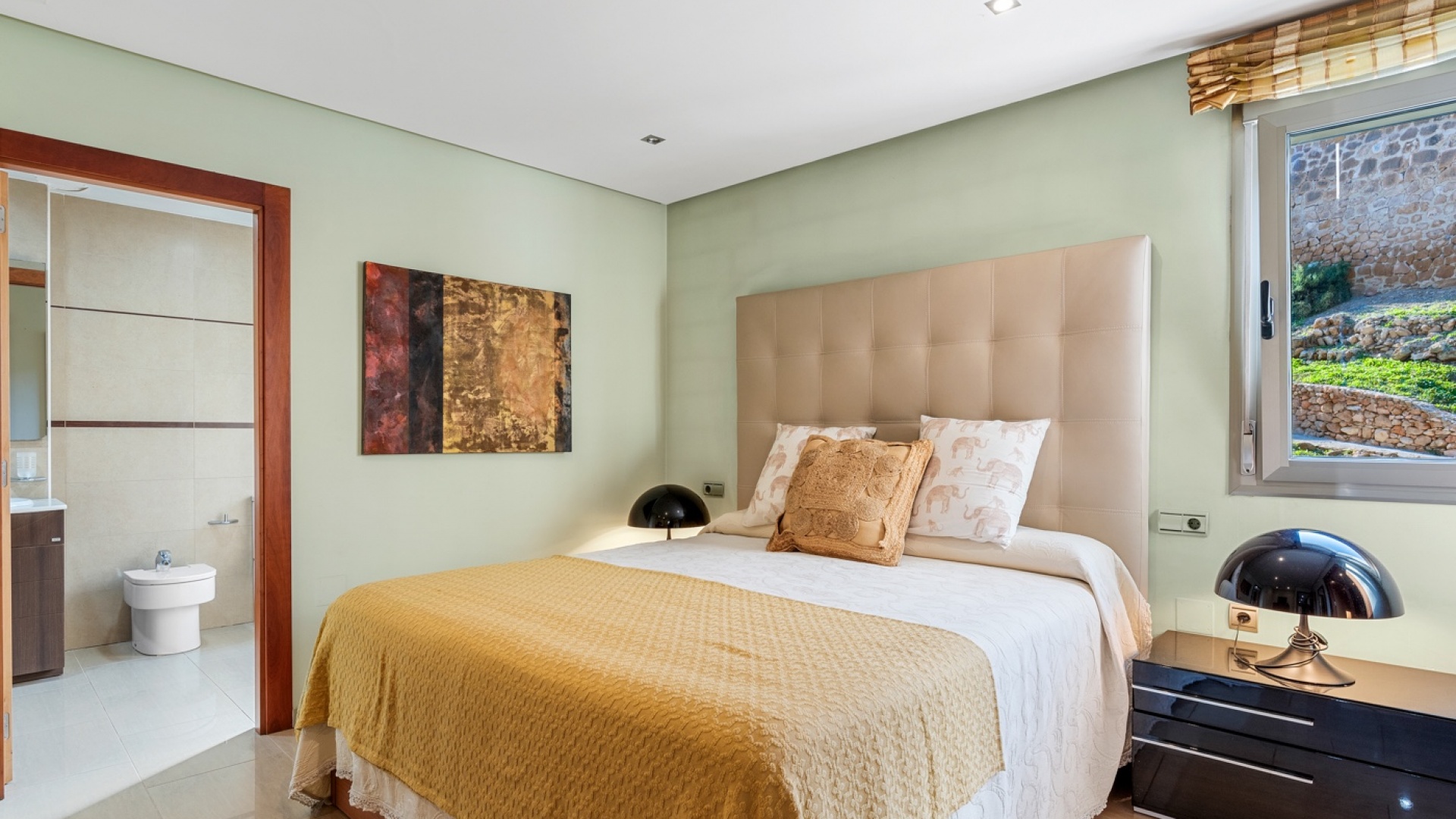 På andra våningen finns fyra generöst tilltagna sovrum, alla med inbyggda garderober. Ett av dessa rum är ett master bedroom med eget badrum och klädkammare. De övriga tre sovrummen inkluderar två med enkelsängar och ett tredje används som kontor. De två badrummen på denna nivå är välutrustade, med både badkar och dusch. Stora fönsterpartier i båda badrummen släpper in gott om naturligt ljus och ventilation. En terrass på denna våning erbjuder fantastisk, fri utsikt.