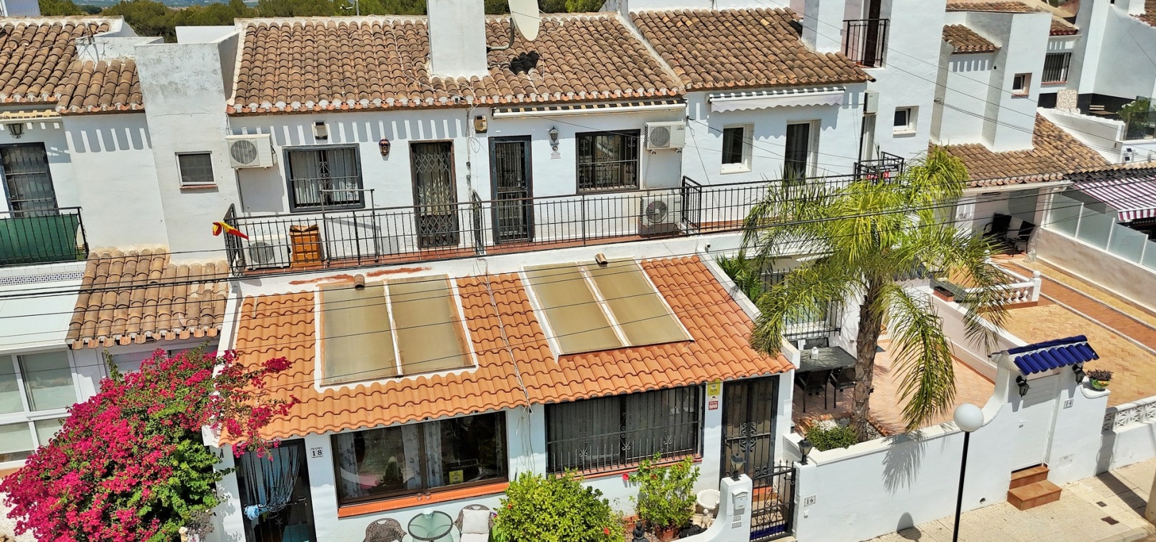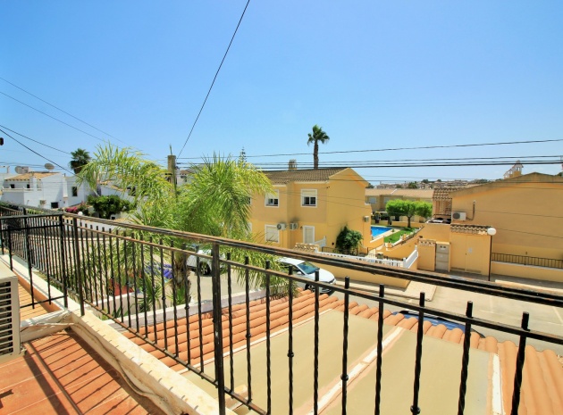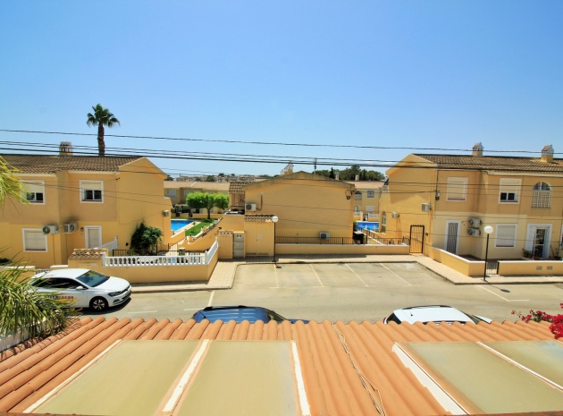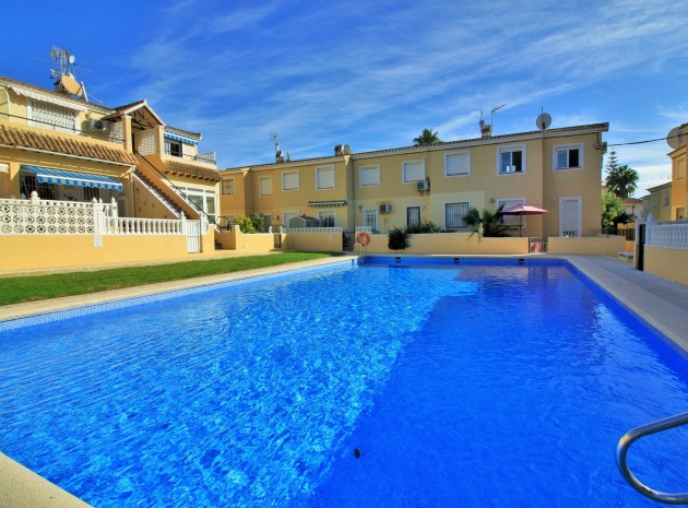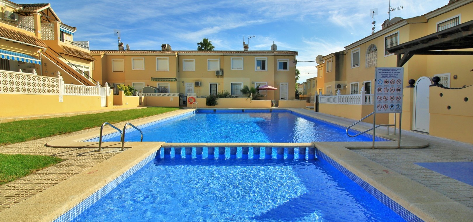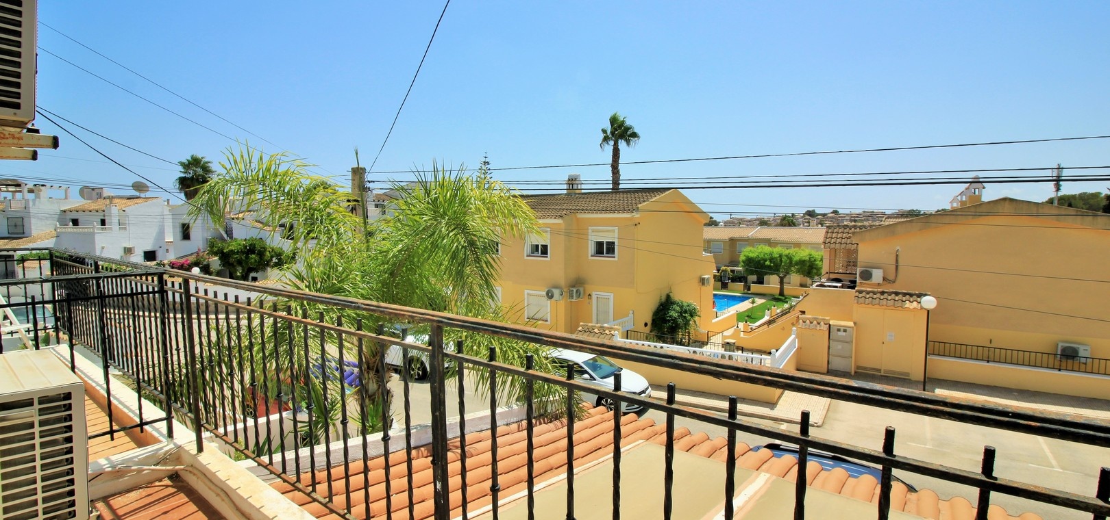 Radhus med 3 sovrum i söderläge till salu beläget i den populära urbaniseringen Lomas del Golf i Villamartin, inom en kort promenad till berömda Villamartin Plaza och golfbanan. Fastigheten erbjuder solsken hela dagen med utomhusutrymme inklusive en bakre trädgård, främre och bakre balkong med utsikt mot den gemensamma poolen och utsikt över landskapet. Bottenvåningen består av ett stort vardagsrum/matsal med öppet kök, 1 dubbelrum med inbyggda garderober och ett familjebadrum med duschkabin. På baksidan av fastigheten kan du nå trädgården på baksidan. På övervåningen finns ytterligare 2 sovrum och ett badrum med duschkabin. Det stora sovrummet på övervåningen har en privat balkong i söderläge med utsikt mot de gemensamma poolerna. Fastigheten utgör en del av ett samhälle med användning av flera gemensamma pooler i närheten. Beläget bara 10-15 minuters promenad från Villamartin Plaza och golfbanan, som erbjuder en rad tjänster inklusive barer, restauranger, butiker, en stormarknad, taxistation och busshållplats. Stränderna med blå flagg på Orihuela Costa och köpcentret Zenia Boulevard ligger mindre än 10 minuters bilresa bort.