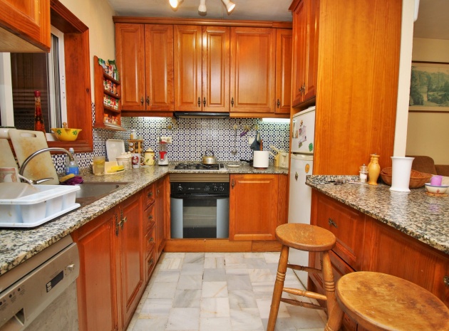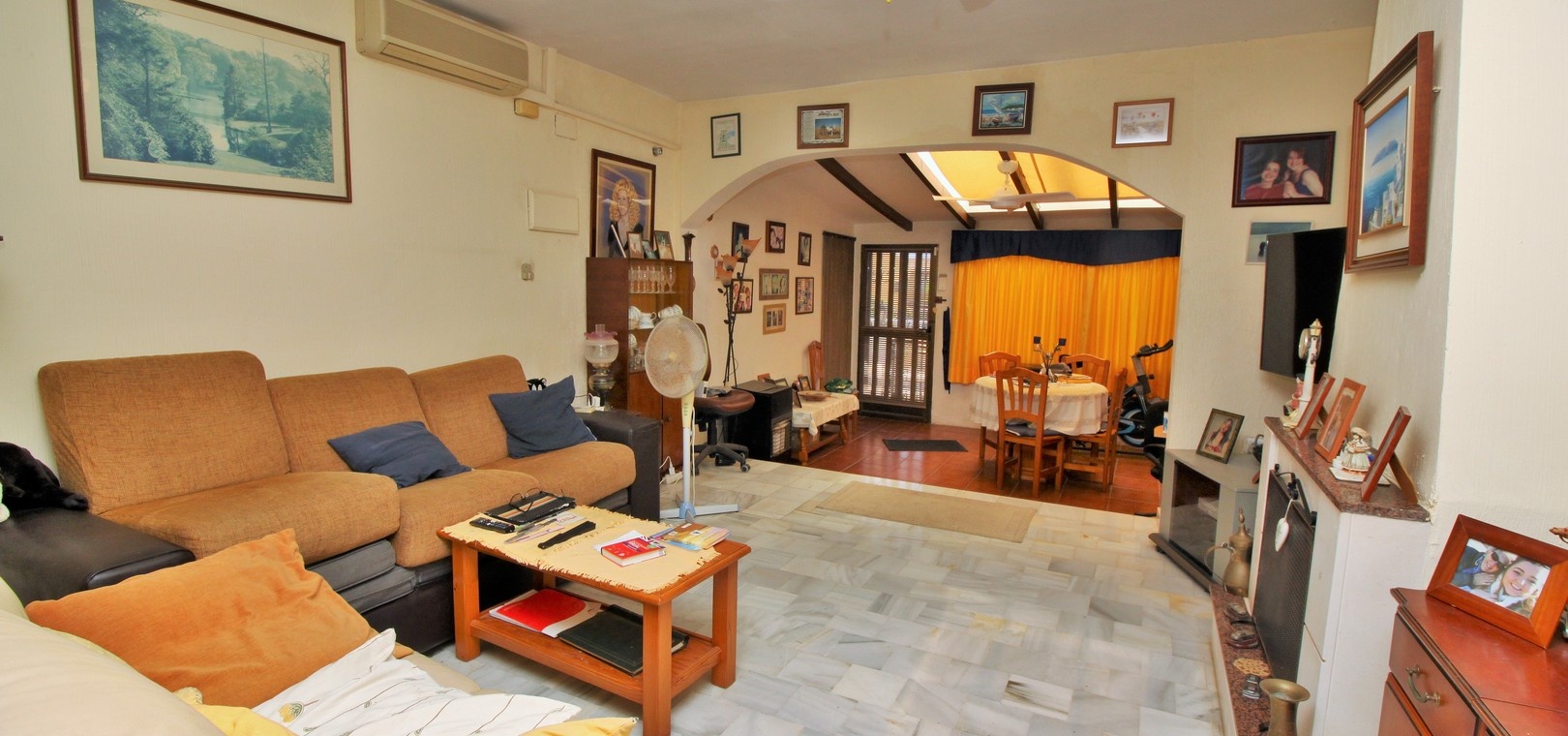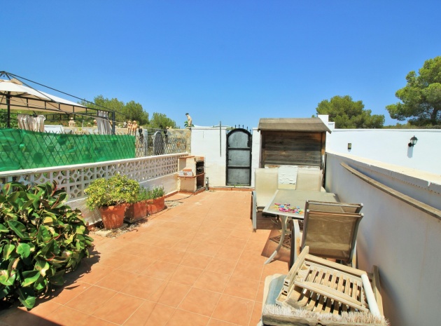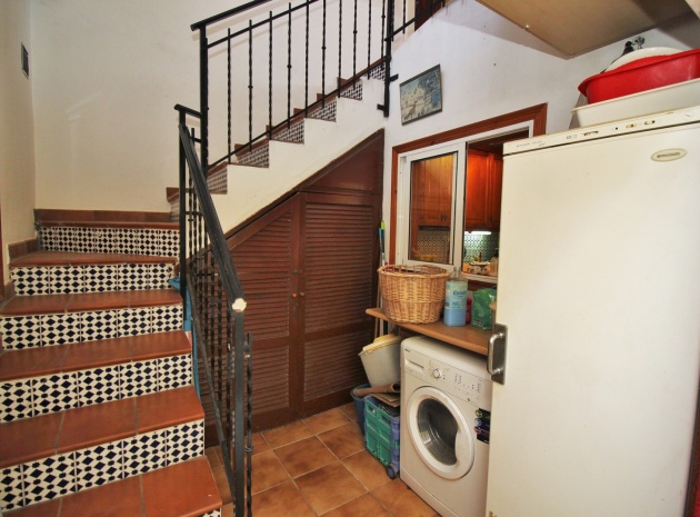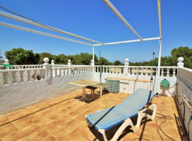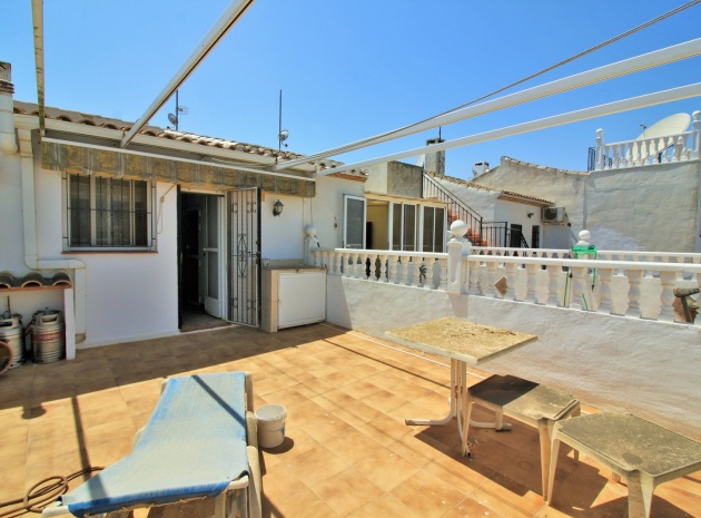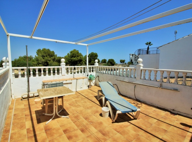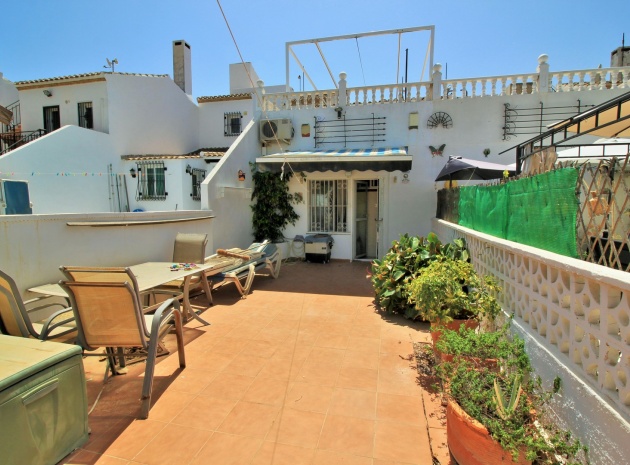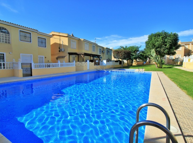 Radhus med 3 sovrum i söderläge till salu beläget i den populära urbaniseringen Lomas del Golf i Villamartin, inom en kort promenad till berömda Villamartin Plaza och golfbanan. Fastigheten erbjuder solsken hela dagen med utomhusutrymme inklusive en bakre trädgård, främre och bakre balkong med utsikt mot den gemensamma poolen och utsikt över landskapet. Bottenvåningen består av ett stort vardagsrum/matsal med öppet kök, 1 dubbelrum med inbyggda garderober och ett familjebadrum med duschkabin. På baksidan av fastigheten kan du nå trädgården på baksidan. På övervåningen finns ytterligare 2 sovrum och ett badrum med duschkabin. Det stora sovrummet på övervåningen har en privat balkong i söderläge med utsikt mot de gemensamma poolerna. Fastigheten utgör en del av ett samhälle med användning av flera gemensamma pooler i närheten. Beläget bara 10-15 minuters promenad från Villamartin Plaza och golfbanan, som erbjuder en rad tjänster inklusive barer, restauranger, butiker, en stormarknad, taxistation och busshållplats. Stränderna med blå flagg på Orihuela Costa och köpcentret Zenia Boulevard ligger mindre än 10 minuters bilresa bort.