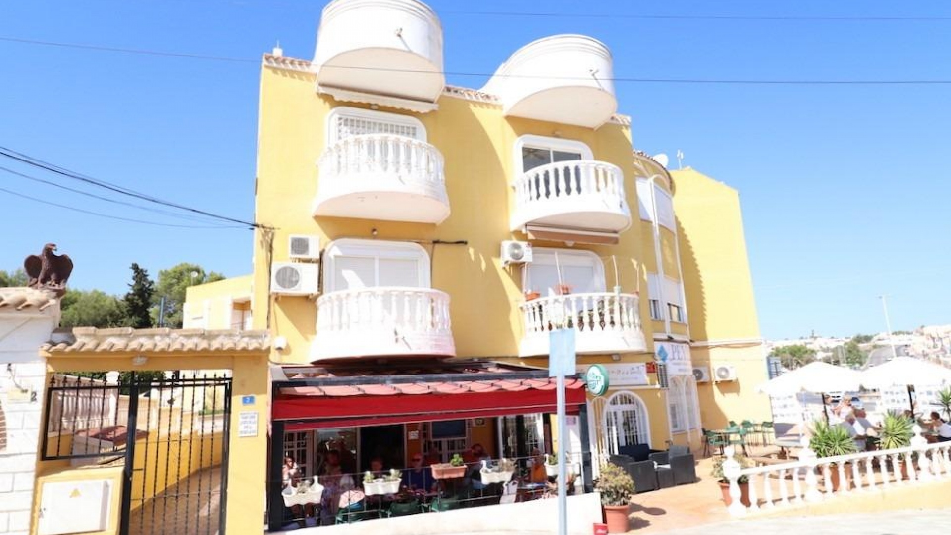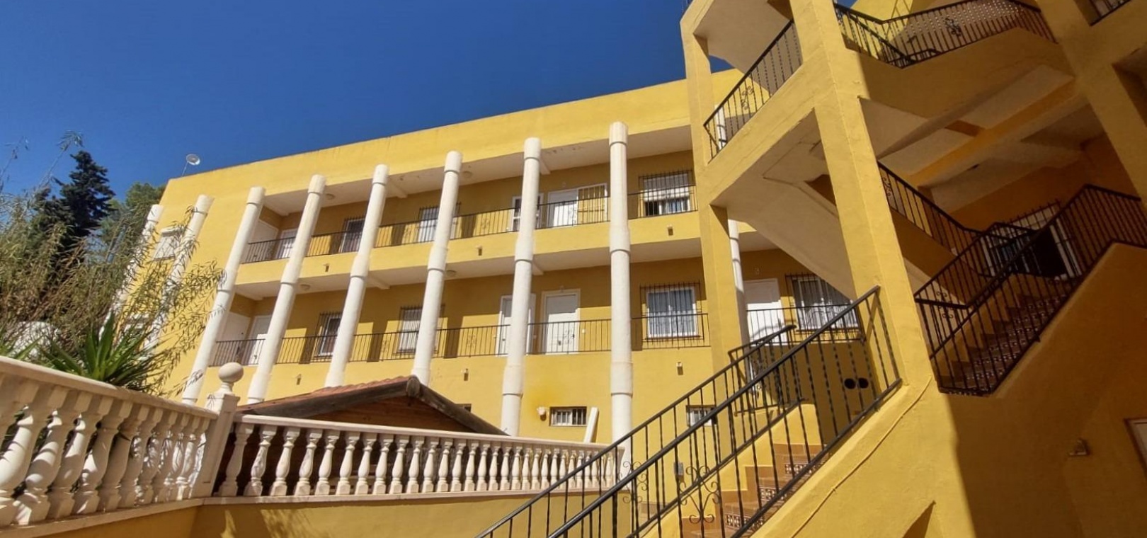 Möjlighet att köpa en hörnlägenhet på översta våningen med terrass och fri utsikt nära golfbanorna, La Fuente köpcentrum, restauranger, stormarknader och omgiven av natur. ~~Består av 2 dubbelrum, 1 badrum, vardagsrum/matrum med kök och terrass i öppen planlösning.~~Med viss renovering är det en fantastisk investering.~~För att notera är det en andra våning utan hiss.~