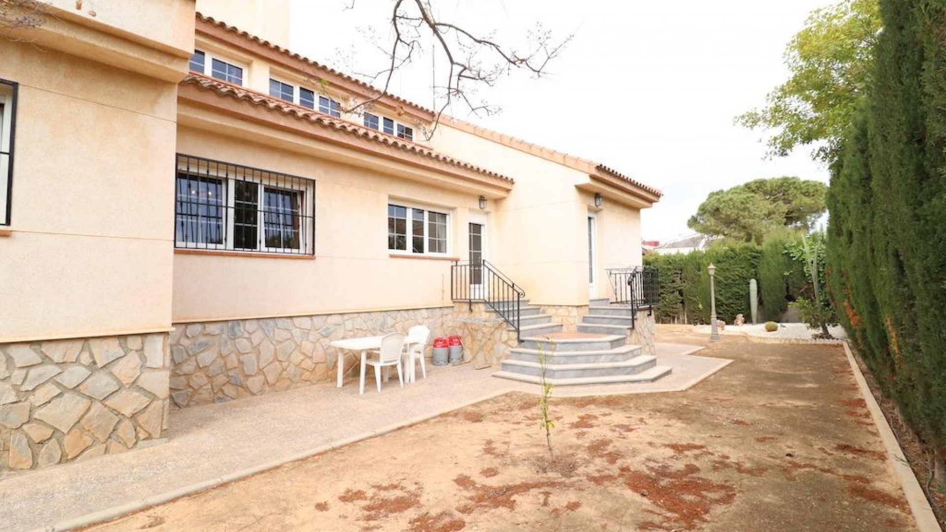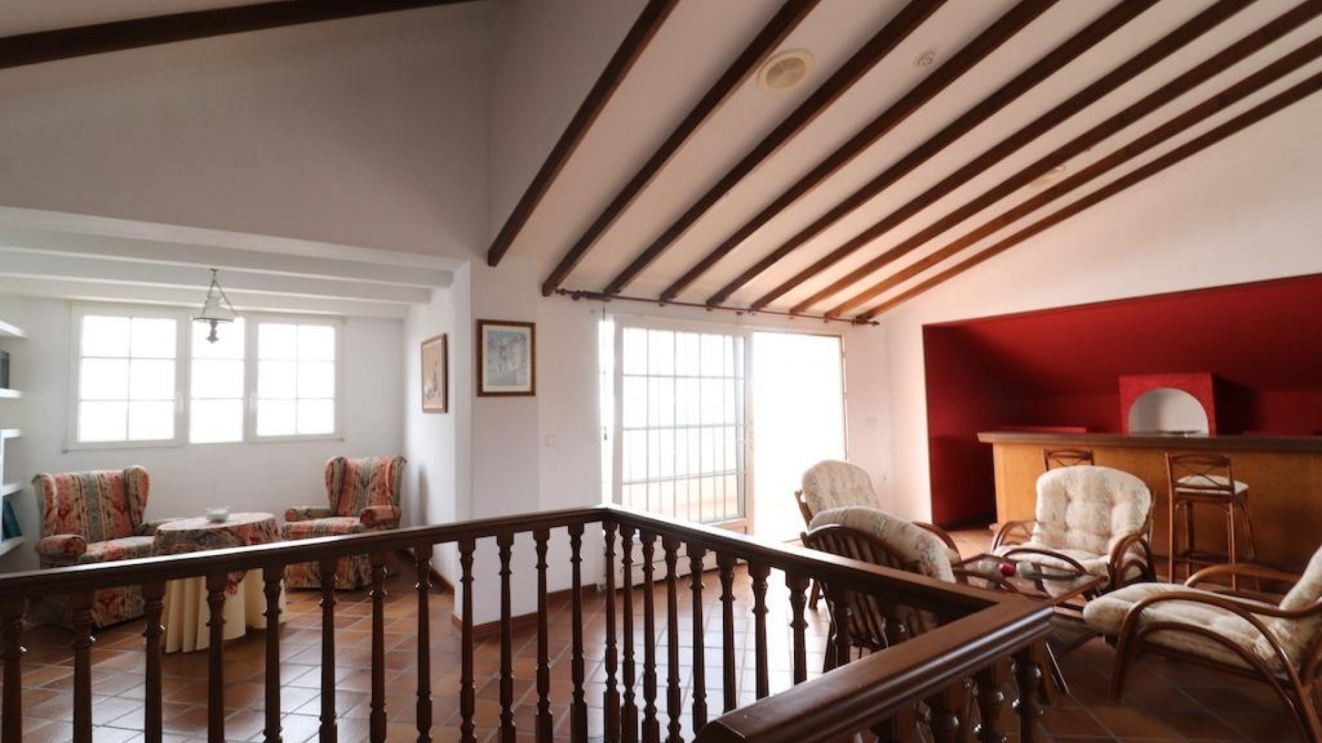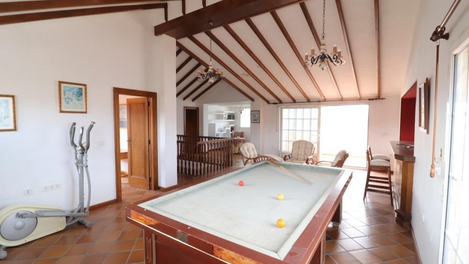 Mil Palmeras, Fristående villa med en stor tomt på 1000 m2 och ett hus i 2 våningar plus ett källargarage på ca 350 m2, den ligger bara 300 m från stranden, och har 4 sovrum, alla dubbelrum, med 3 badrum, ett stort vardagsrum matsal på två plan, stort fristående kök med biljardrum med en tvättstuga på övervåningen och en egen tvättstuga, en trappa upp 3 terrasser, ett garage för två bilar och en källare, den har en stor trädgård med sin grill och med sin pergola och en stor privat pool.~