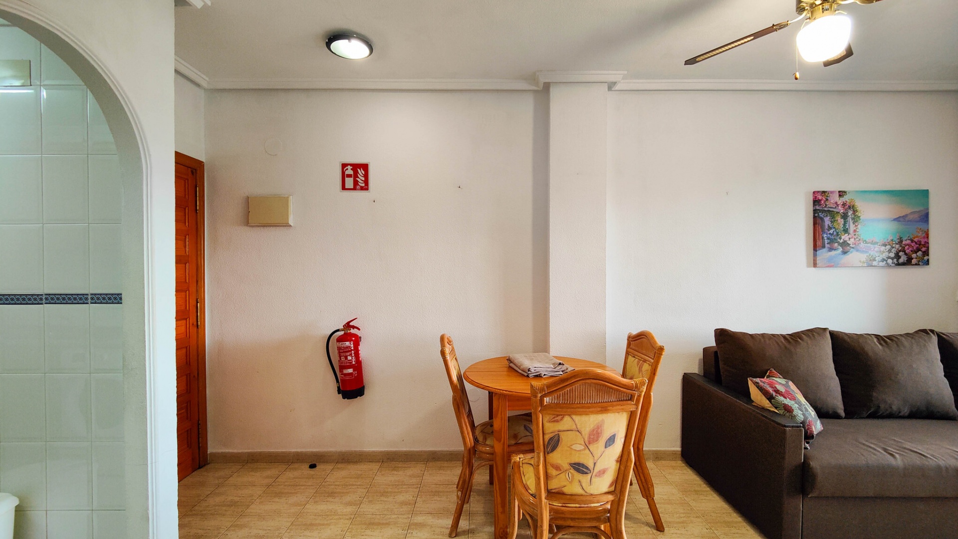 Upptäck ditt nya hem i Torrevieja med denna charmiga 2-rumslägenhet, perfekt för dig som söker komfort och närhet till havet. Denna lägenhet ligger bara 400 meter från stranden i Acequión och erbjuder fri utsikt över en park från terrassen i västerläge, perfekt för att njuta av oförglömliga solnedgångar. Det ljusa vardagsrummet och matsalen är hemmets hjärta, tillsammans med ett fullt utrustat kök som kommer att glädja alla matlagningsentusiaster.