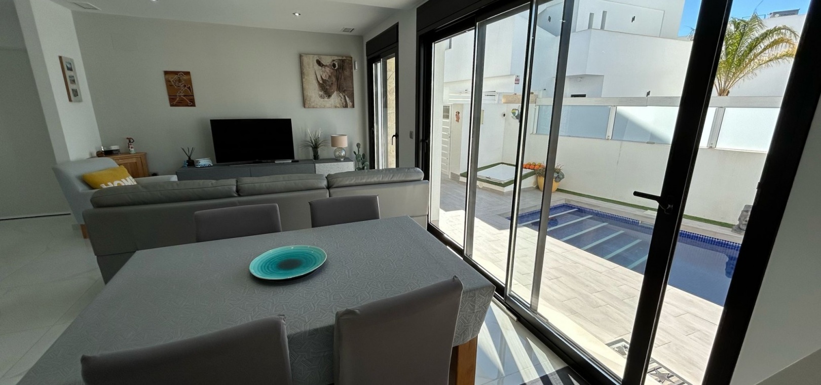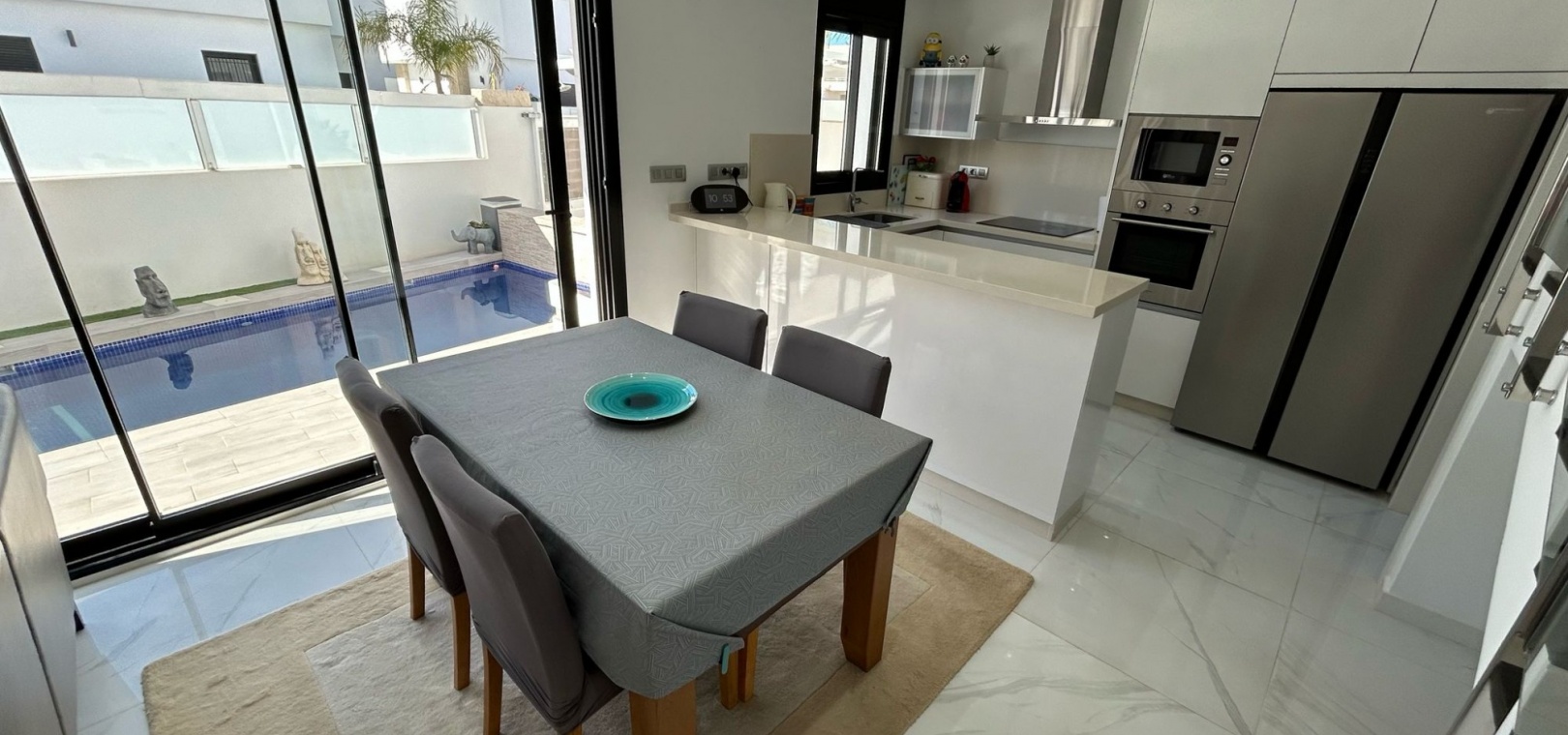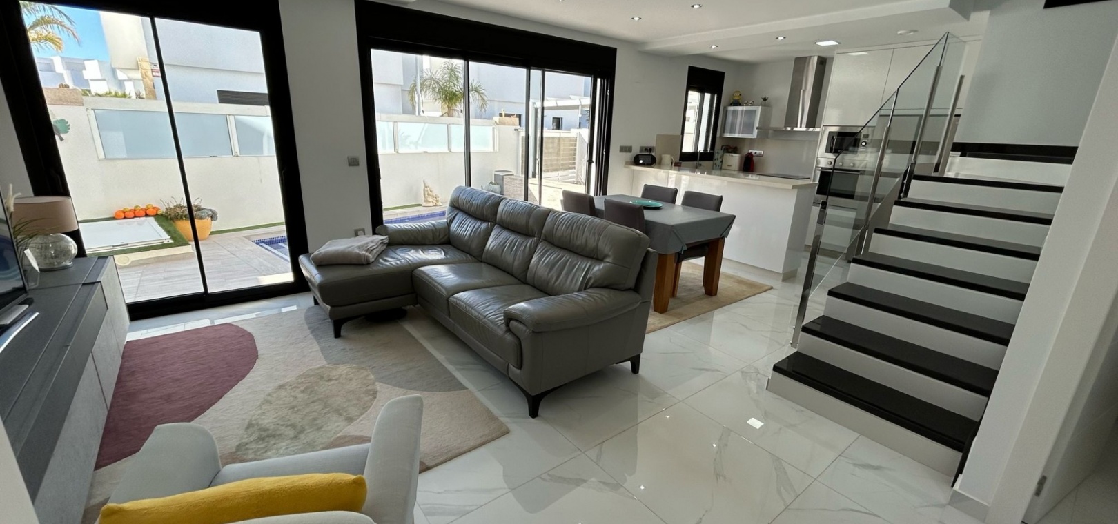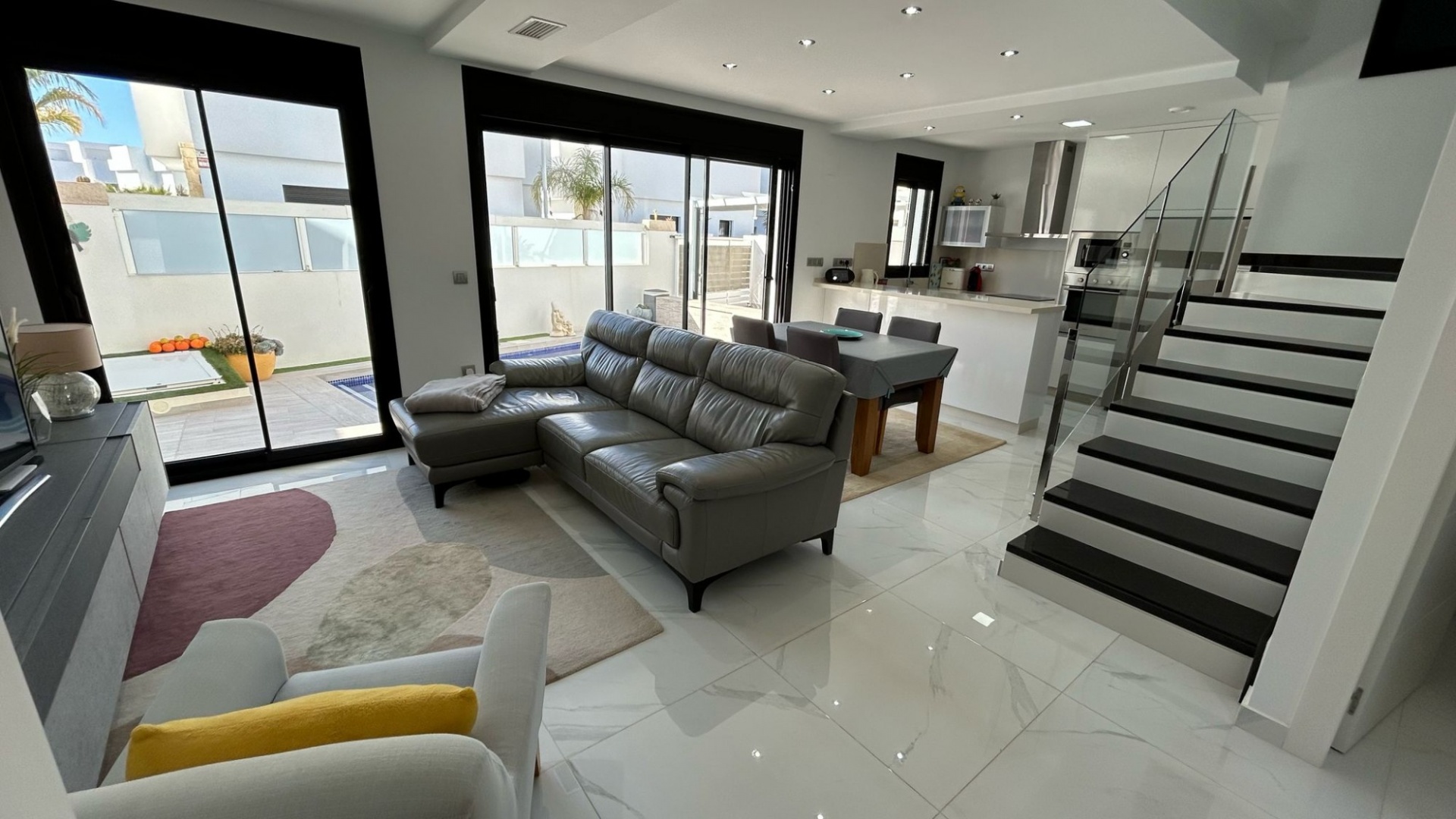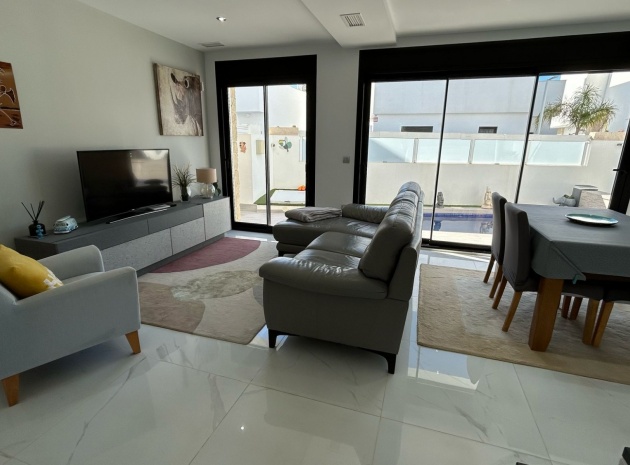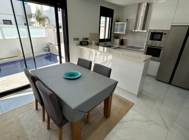 Inbäddat i den charmiga staden Los Montesinos, erbjuder denna fantastiska nybyggda villa en perfekt blandning av modern komfort och bekvämlighet. Med en rymlig och genomtänkt planlösning har fastigheten tre ljusa och luftiga sovrum, två stilfulla badrum med golvvärme och en extra gästtoalett. Köket med öppen planlösning flyter sömlöst in i vardagsrummet och matsalen, vilket skapar ett välkomnande utrymme för både avkoppling och underhållning.