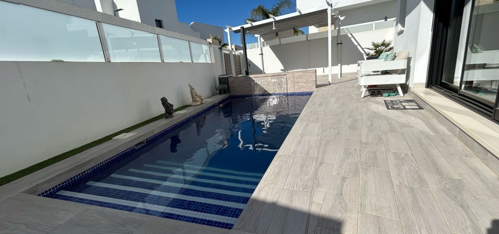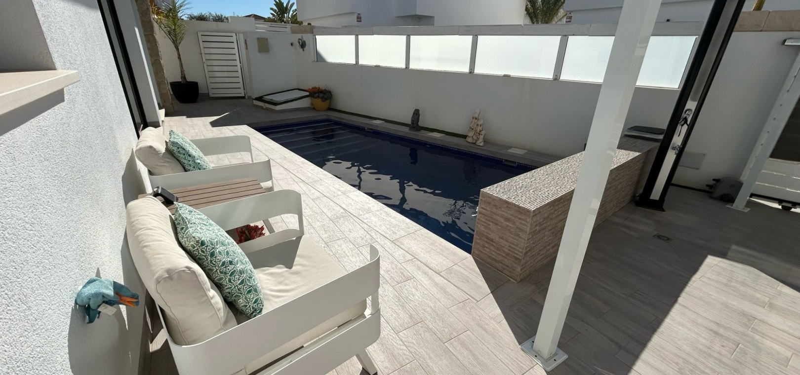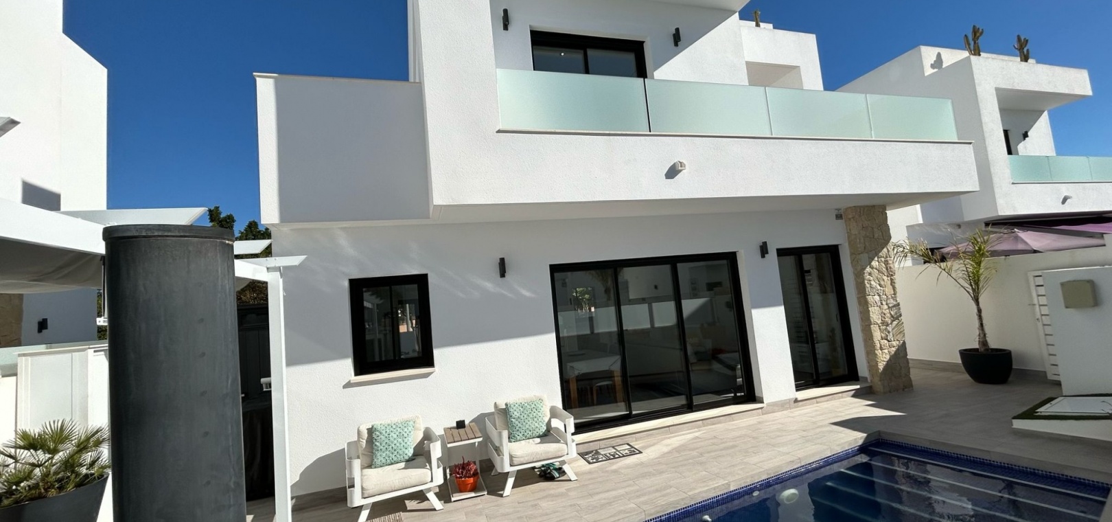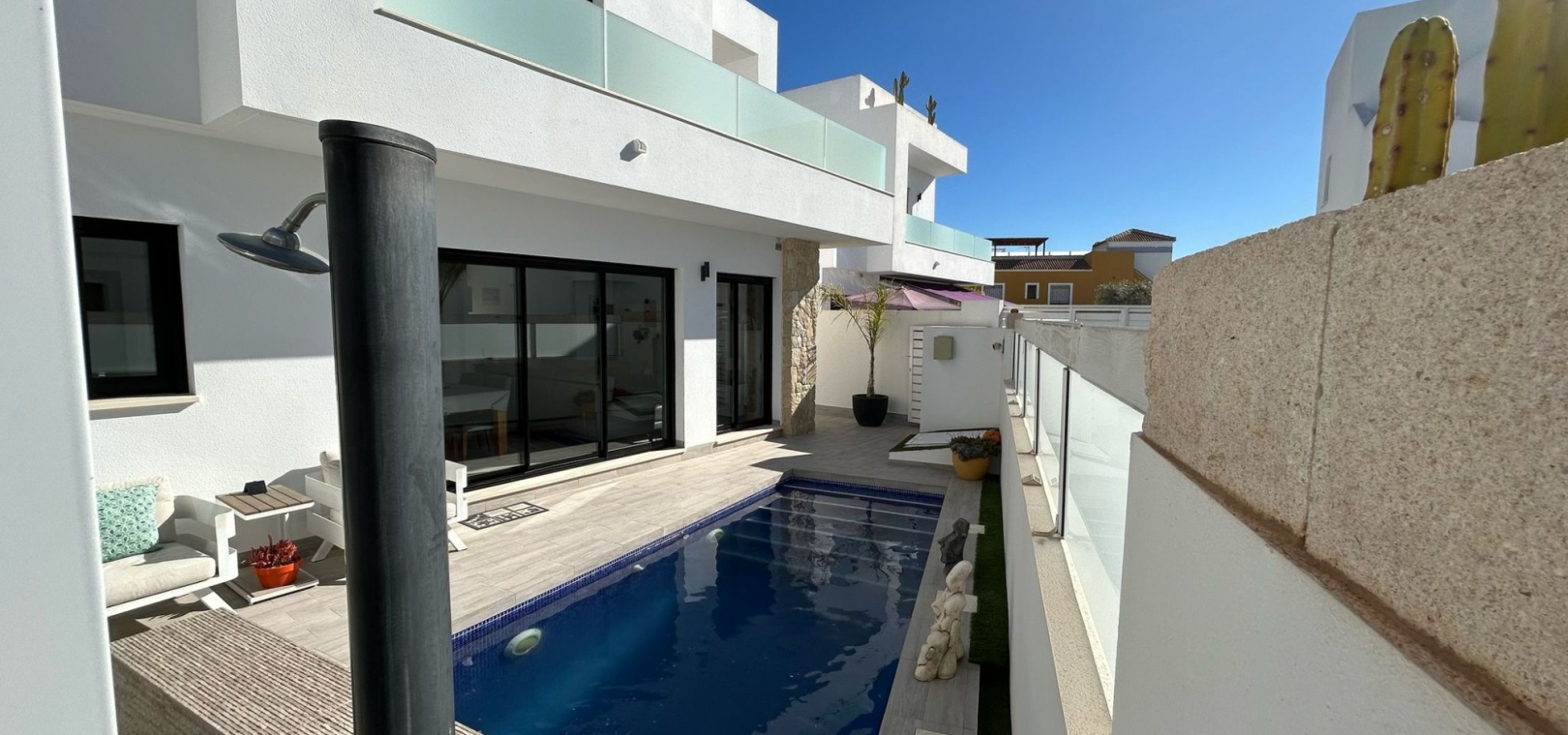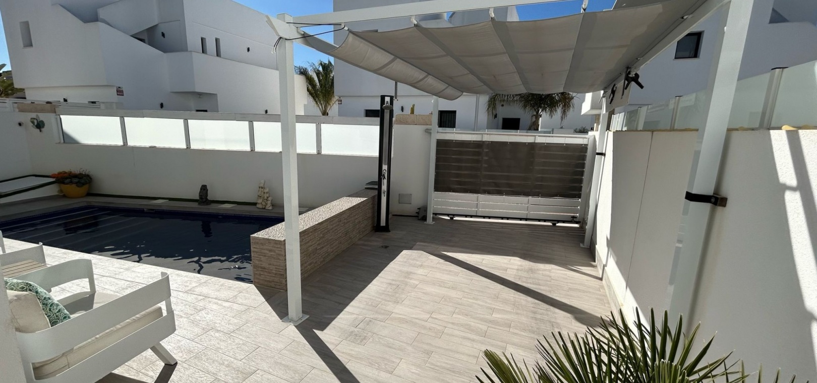 Gå ut för att njuta av den privata poolen, perfekt för att svalka dig under varma dagar, eller ta in solen från solariet och terrassen. Villan har även en privat trädgård, en balkong och gott om förvaringsutrymme. Den är delvis möblerad. Utrustat med luftkonditionering, värme och moderna apparater är detta hem redo att flytta in.