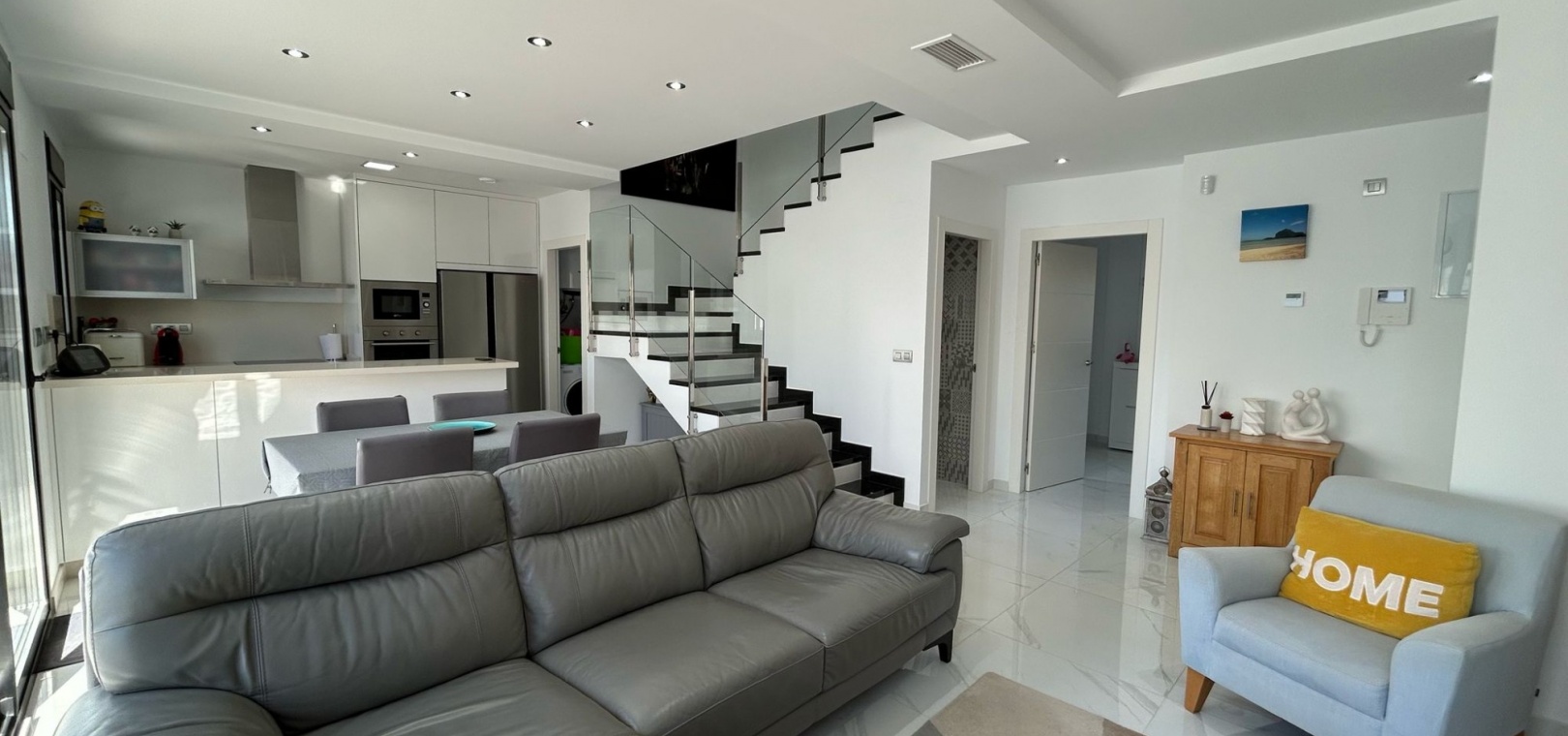 Beläget bara 15 minuter från stranden och 30 minuter från Alicantes flygplats, erbjuder det den perfekta balansen mellan lugn och tillgänglighet. Dagliga nödvändigheter och lokala bekvämligheter ligger bara en kort två minuters promenad bort, vilket gör livet här otroligt bekvämt. Med privat parkering, inbyggda garderober och en vackert designad interiör är detta hem ett utmärkt val för dem som söker komfort, stil och ett oslagbart läge.