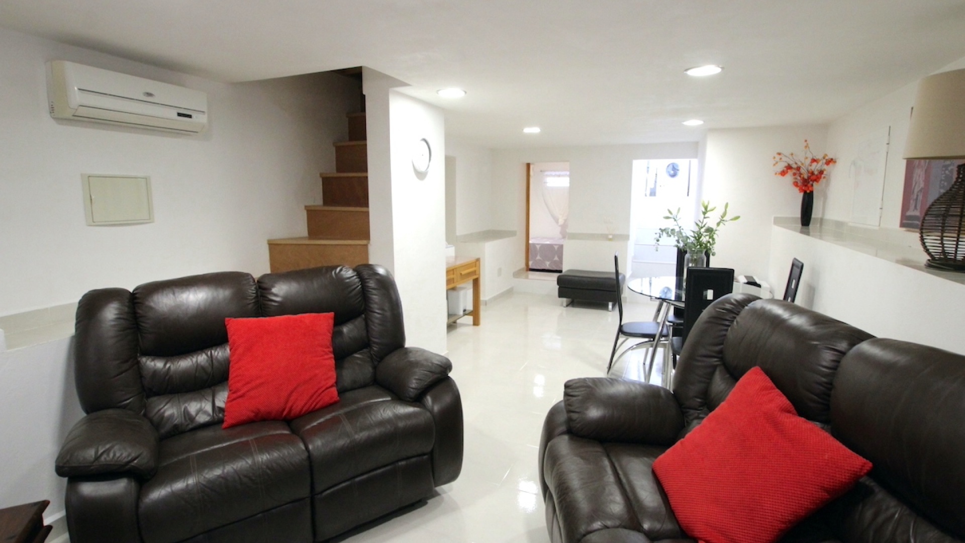 Villan har också ett stort taksolarium där du kan njuta av solskenet hela dagen tillsammans med några fantastiska vyer ner över den gemensamma poolen.