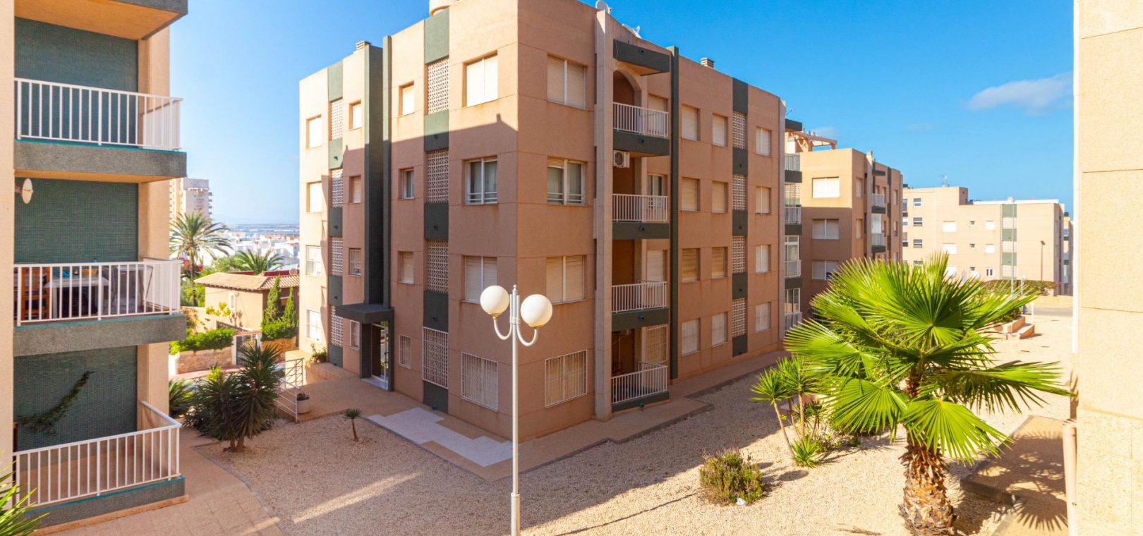 Belägen i det exklusiva området Aguas Nuevas i Torrevieja, utmärker sig denna fantastiska lyxvilla genom sin rymlighet, komfort och exklusivitet i en privilegierad miljö. Med en tomt på 813 m² och en boyta på 478 m², erbjuder denna bostad en oslagbar livsstil, med ljusa och generösa utrymmen, en perfekt planlösning och fantastisk panoramautsikt över staden.~~Vid entrén möts du av ett stilfullt vardagsrum med stora fönster, som fyller rummet med naturligt ljus och skapar en perfekt koppling mellan inne- och utemiljön. Det fullt utrustade köket kombinerar funktionalitet och stil, med tillgång till tvättstuga och förråd. På bottenvåningen finns ett bekvämt sovrum, perfekt för gäster eller personer med begränsad rörlighet. På övervåningen finns två rymliga sovrum, som erbjuder avskildhet och komfort, varav det ena har tillgång till en charmig balkong.~~En av de största fördelarna med denna villa är de två stora terrasserna, båda sydvända, vilket ger sol hela dagen. Härifrån kan du njuta av imponerande utsikt över staden och den privata poolen, och skapa en perfekt plats för avkoppling eller trevliga stunder med familj och vänner.~~Källaren är ett mångsidigt utrymme med tre extra rum, perfekta för hemmabio, gym eller nöjesrum. Dessutom har bostaden ett garage med plats för mer än tre bilar, vilket ger både bekvämlighet och säkerhet.~~Utomhus erbjuder den privata trädgården och den stora poolen en äkta medelhavsoas, perfekt för att njuta av det soliga klimatet. Den rymliga terrassen och uteplatsen är idealiska för utomhusaktiviteter, medan den inhägnade tomten garanterar fullständig avskildhet.~~Med sitt utmärkta läge, nära stormarknader, skolor, vårdcentraler, golfbanor och endast 1.000 meter från stranden, är denna villa den perfekta kombinationen av lyx, lugn och livskvalitet. En unik möjlighet för dem som söker en exklusiv bostad i Torrevieja.