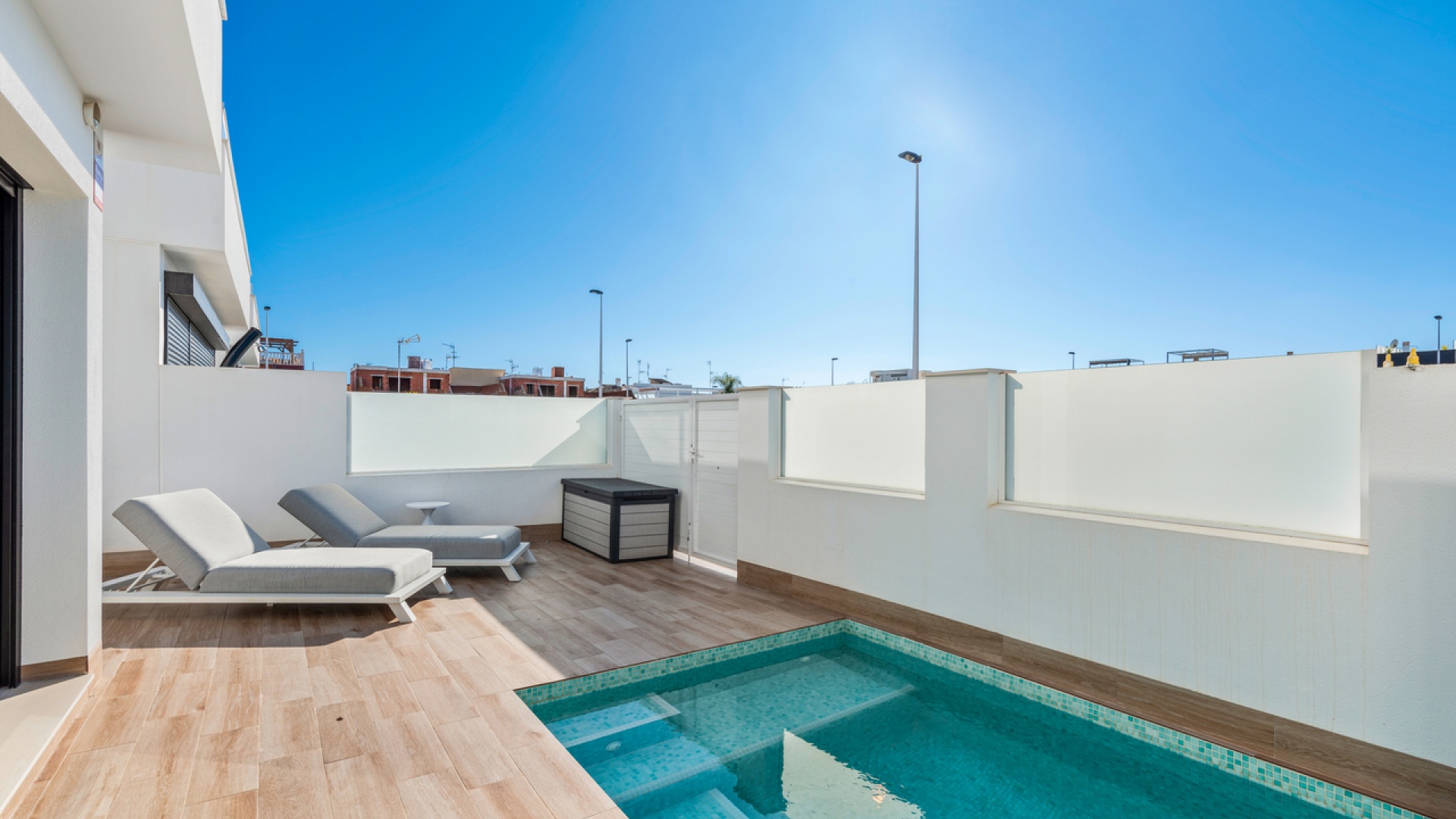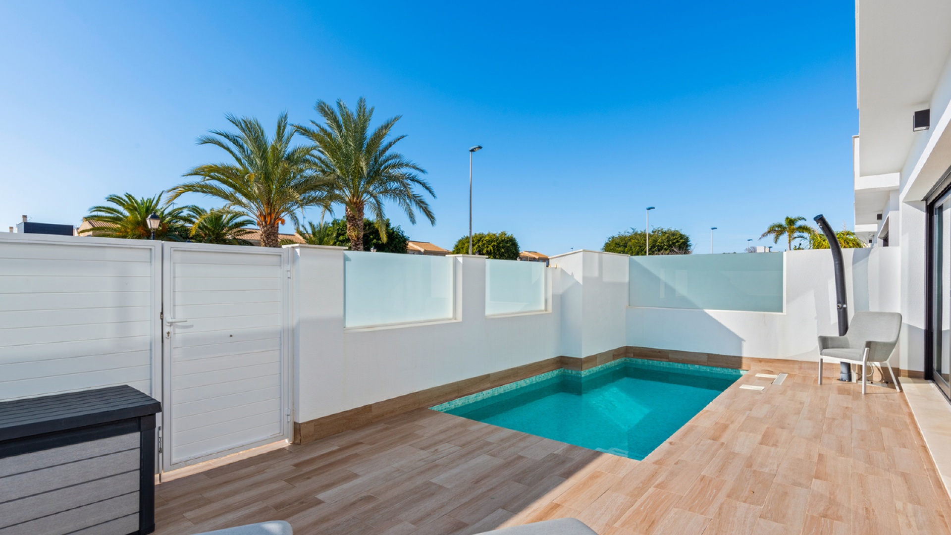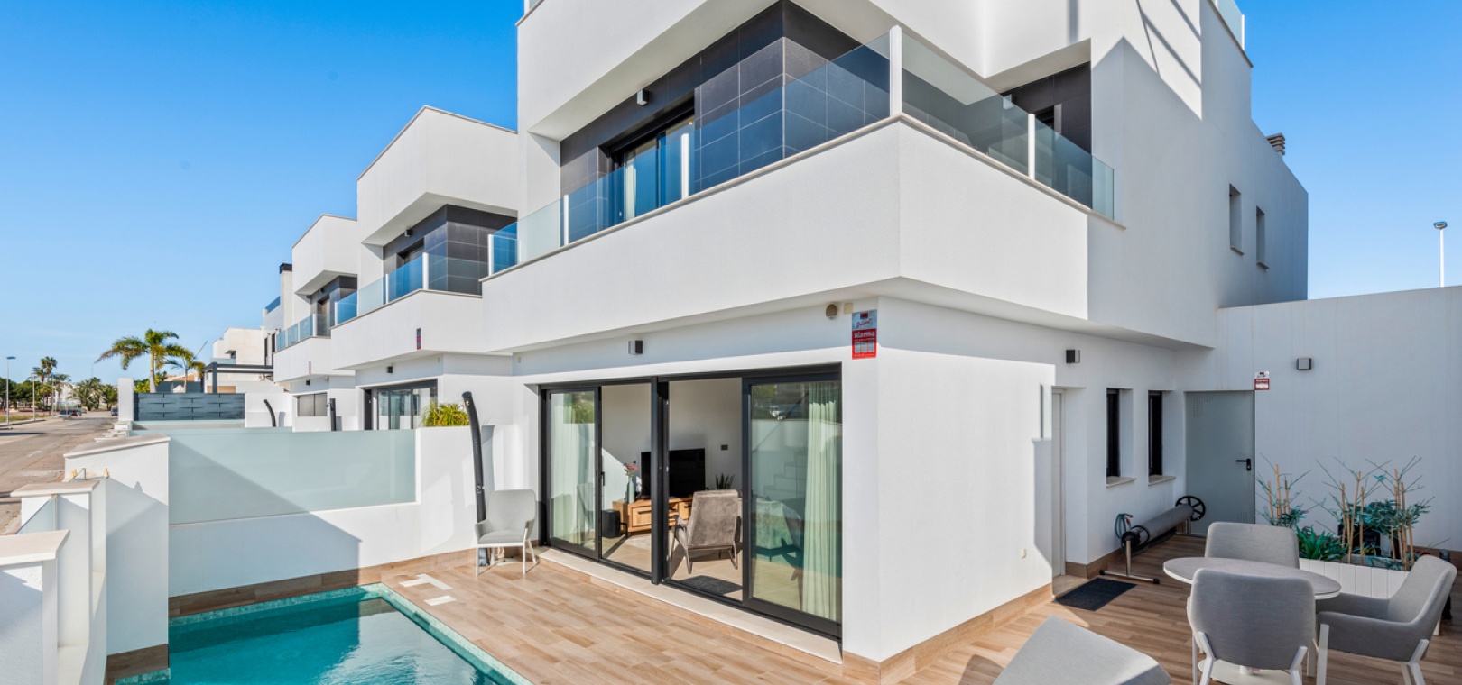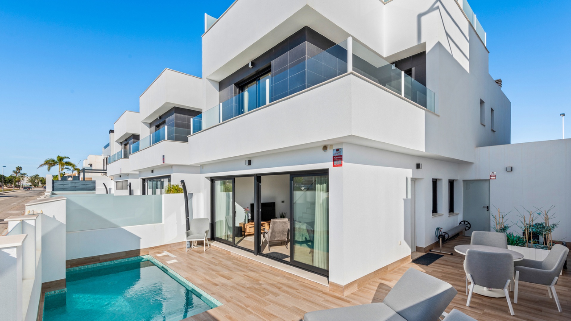 Denna vackra söderläge moderna 3-sovrumsvilla, med utsikt över parken, ligger i det populära området San Pedro del Pinatar, Murcia och har genomtänkt designats för att ge det perfekta individuella hemmet.