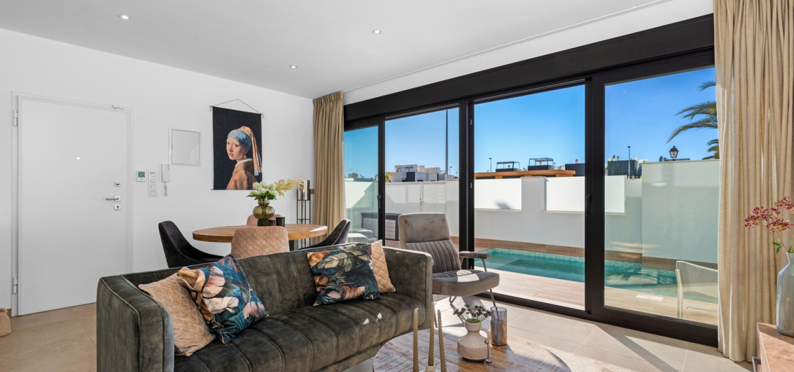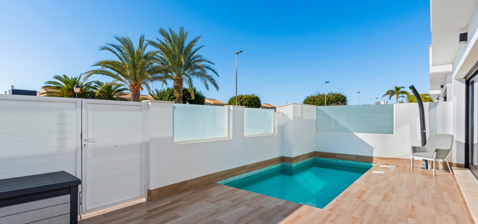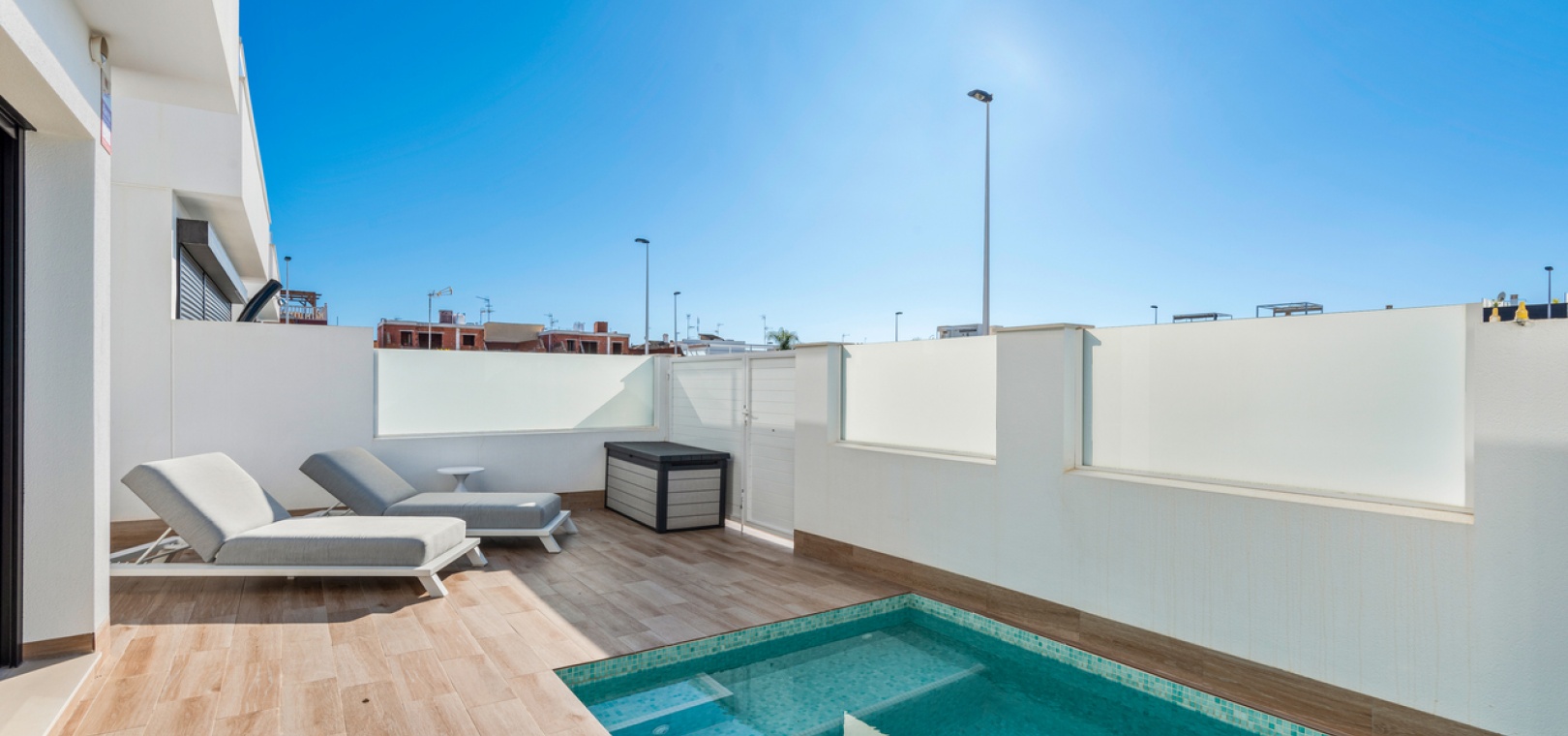Denna vackra söderläge moderna 3-sovrumsvilla, med utsikt över parken, ligger i det populära området San Pedro del Pinatar, Murcia och har genomtänkt designats för att ge det perfekta individuella hemmet.