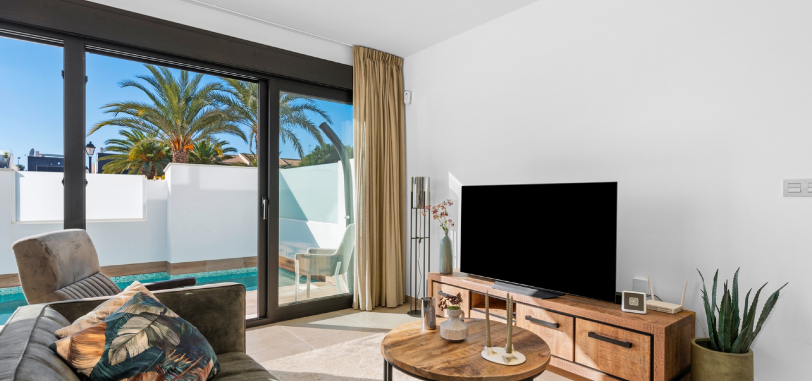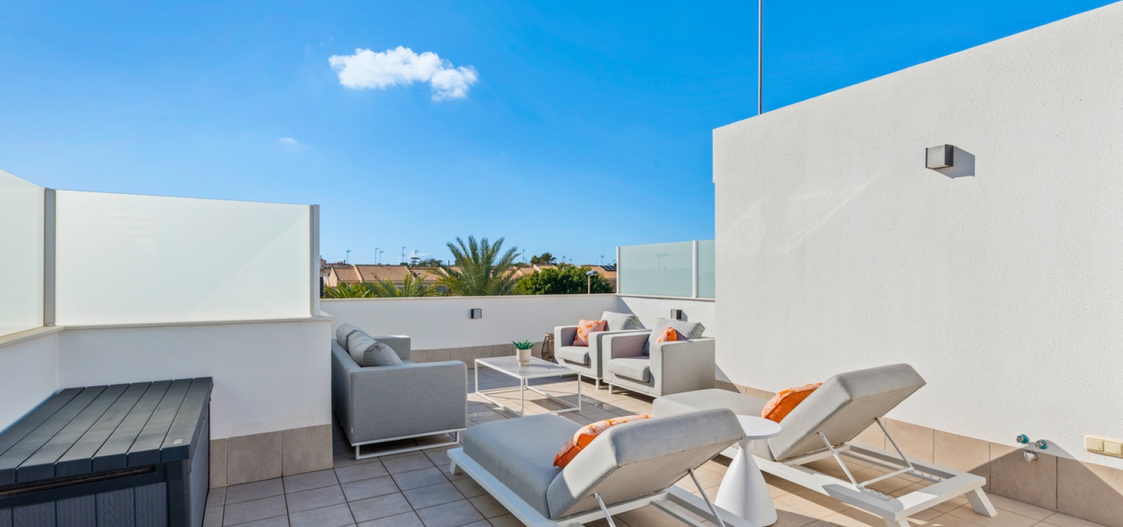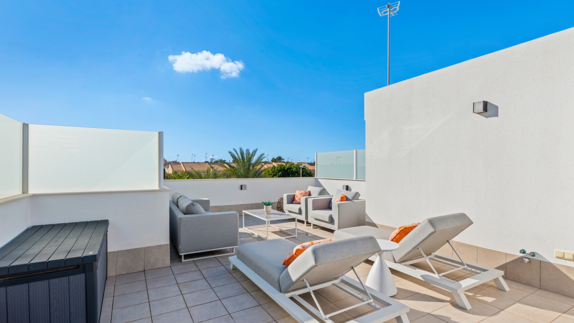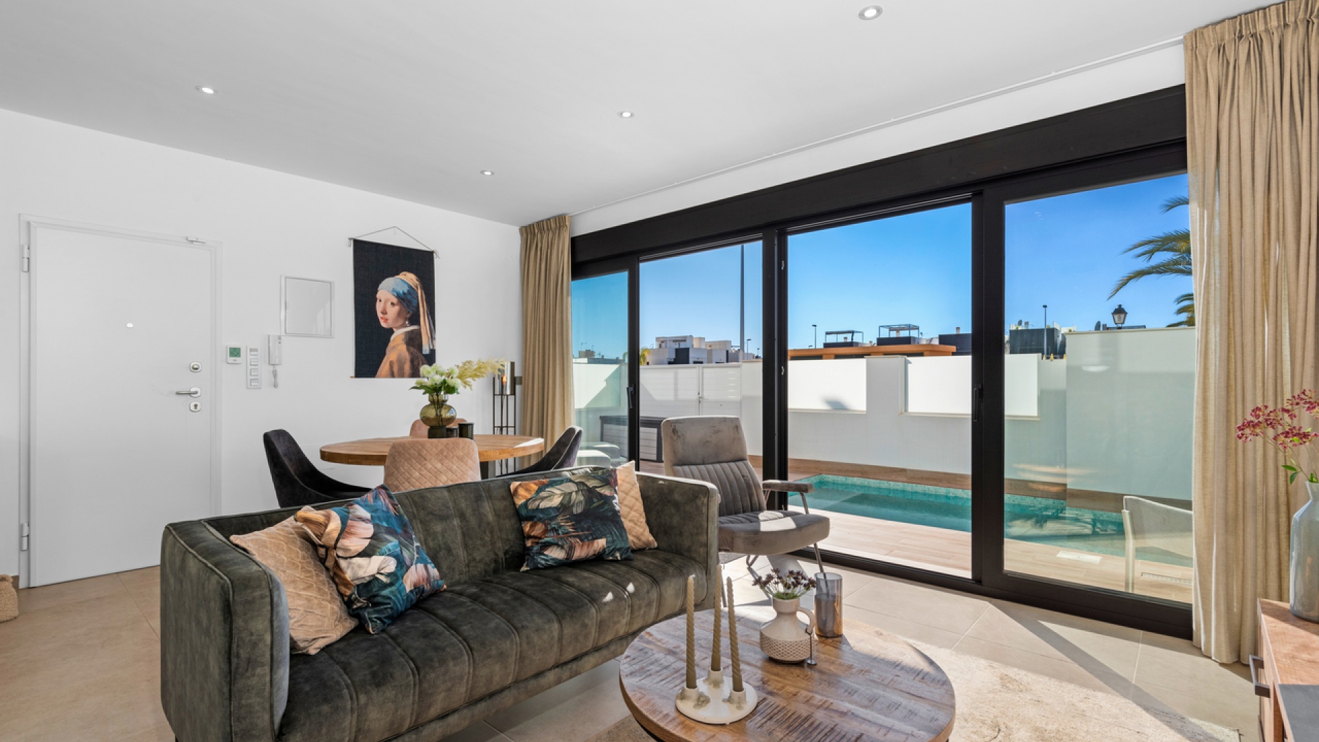 Denna vackra söderläge moderna 3-sovrumsvilla, med utsikt över parken, ligger i det populära området San Pedro del Pinatar, Murcia och har genomtänkt designats för att ge det perfekta individuella hemmet.