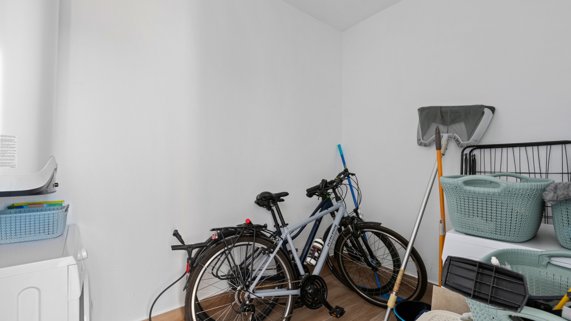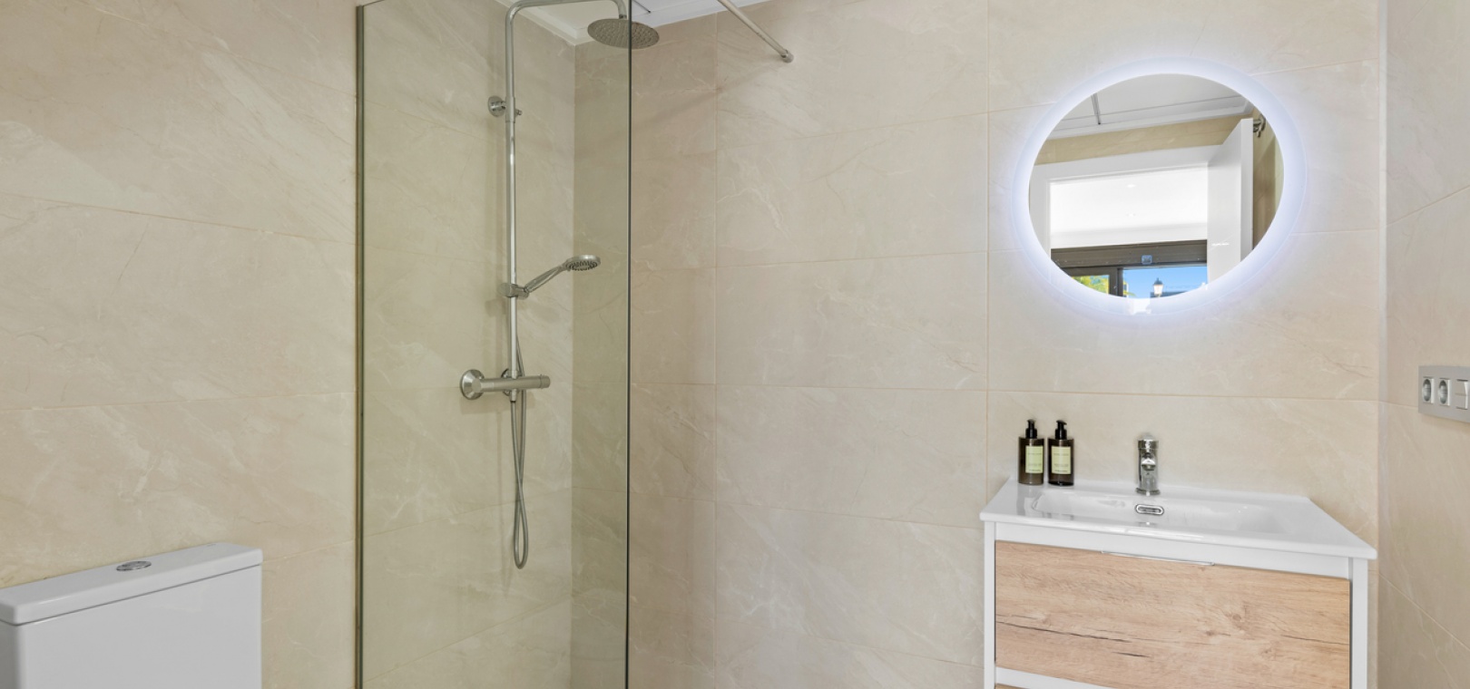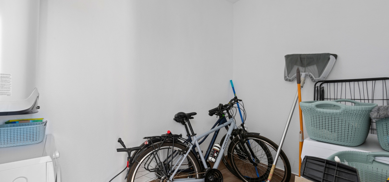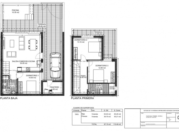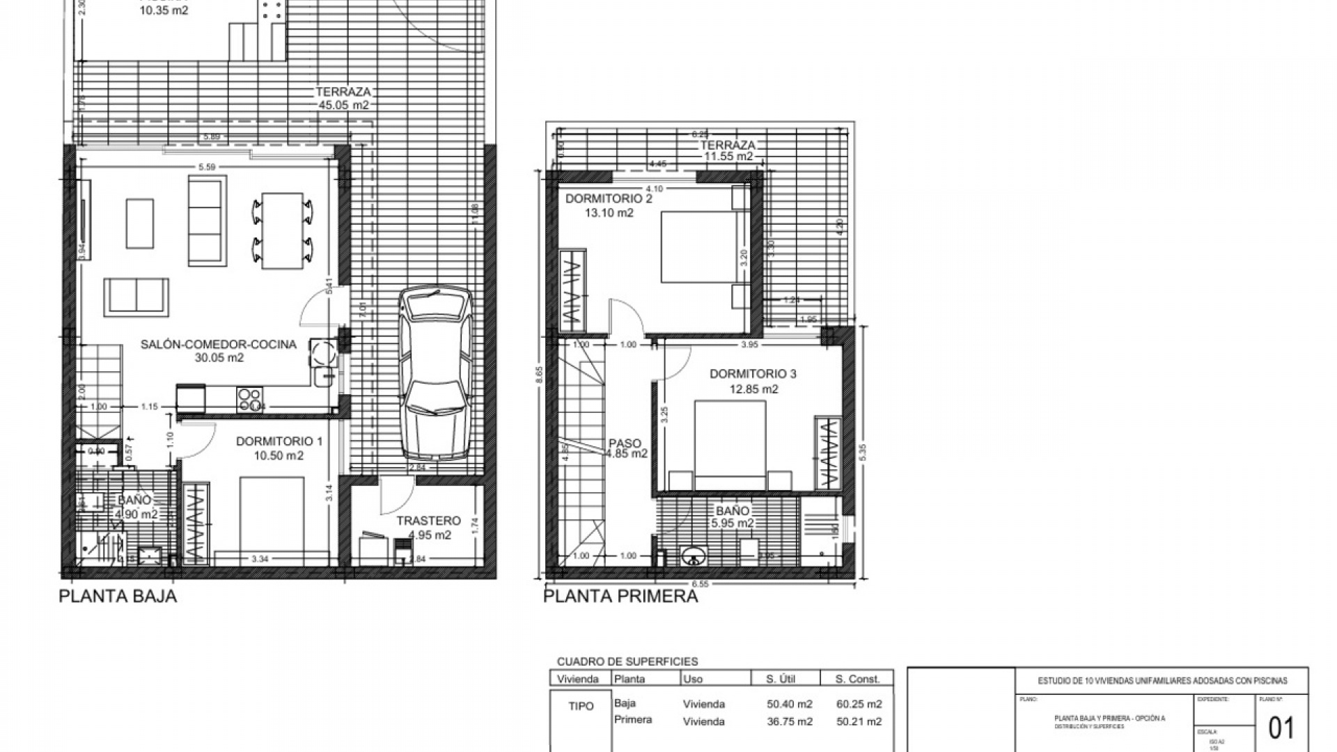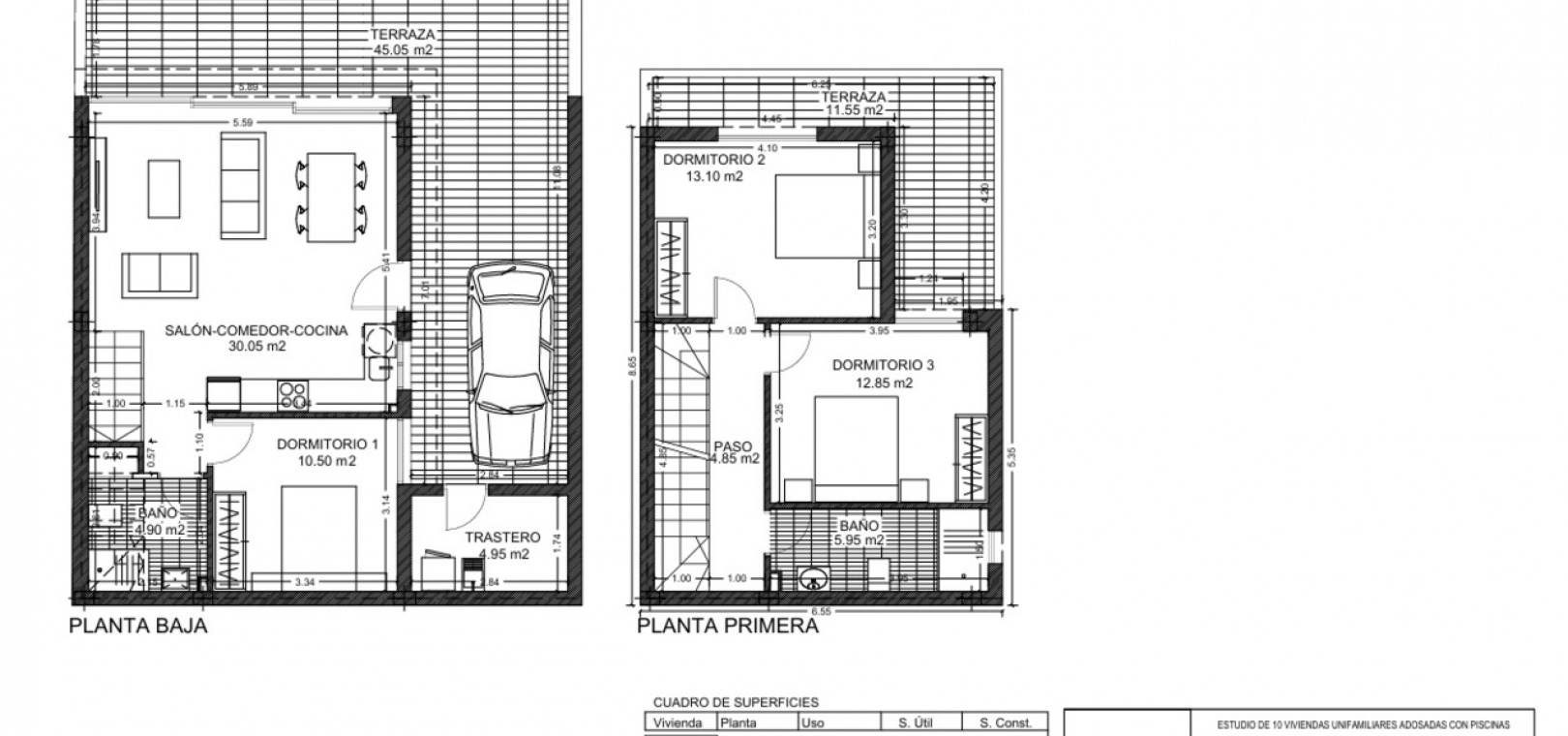 Fastigheten kommer att säljas fullt möblerad och består på bottenvåningen av ett mysigt vardagsrum/matsal med stora skjutbara glasfönster, ett fullt utrustat kök i öppen planlösning i L-form, ett sovrum med inbyggda garderober, ett badrum, flera terrasser, en privat trädgård med uppvärmd pool, ett förråd och parkering utanför vägen. På första våningen hittar vi ytterligare två stora sovrum med inbyggda garderober, ytterligare ett badrum, en stor terrass från sovrummet och det andra sovrummet, plus en privat takterrass/solarium med fantastisk utsikt.