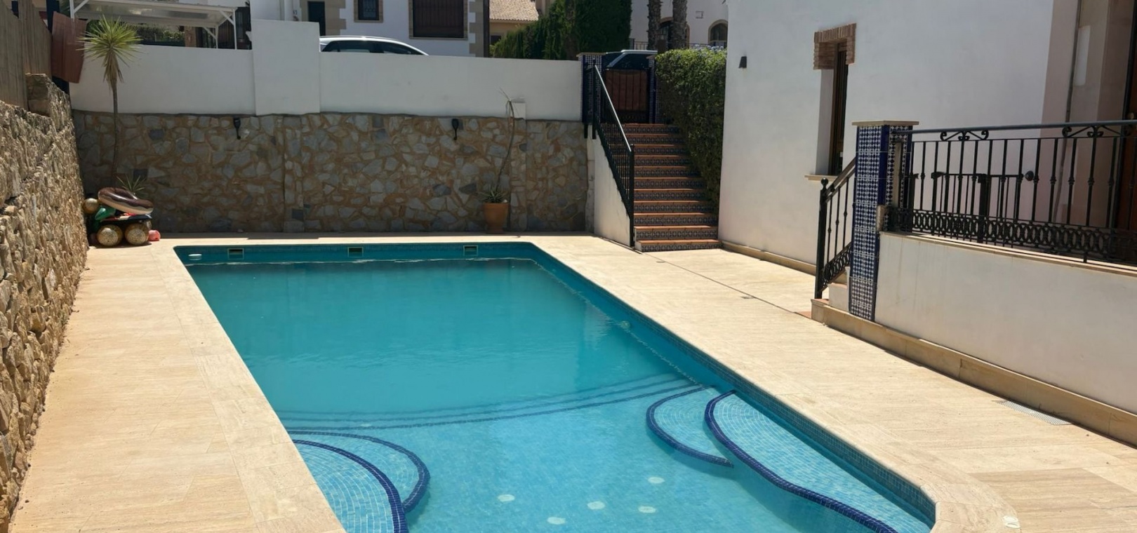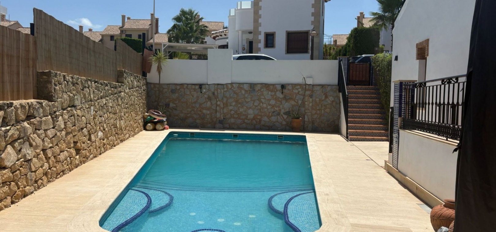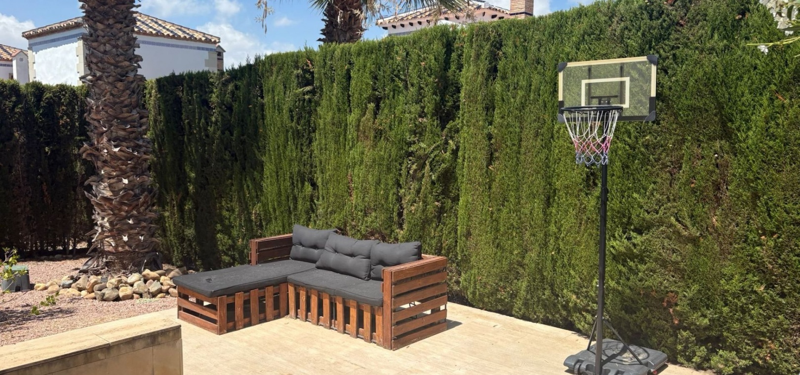 Vi är mycket glada över att kunna erbjuda denna fantastiska länkvilla som ligger inbäddad på en hörntomt i det prestigefyllda La Finca Golf-samhället. Detta rymliga hem har en imponerande inneryta på 160 m² och har fyra ljusa sovrum som erbjuder gott om plats för familj och gäster. Med tre välutrustade badrum blir morgonrutinerna en lek.