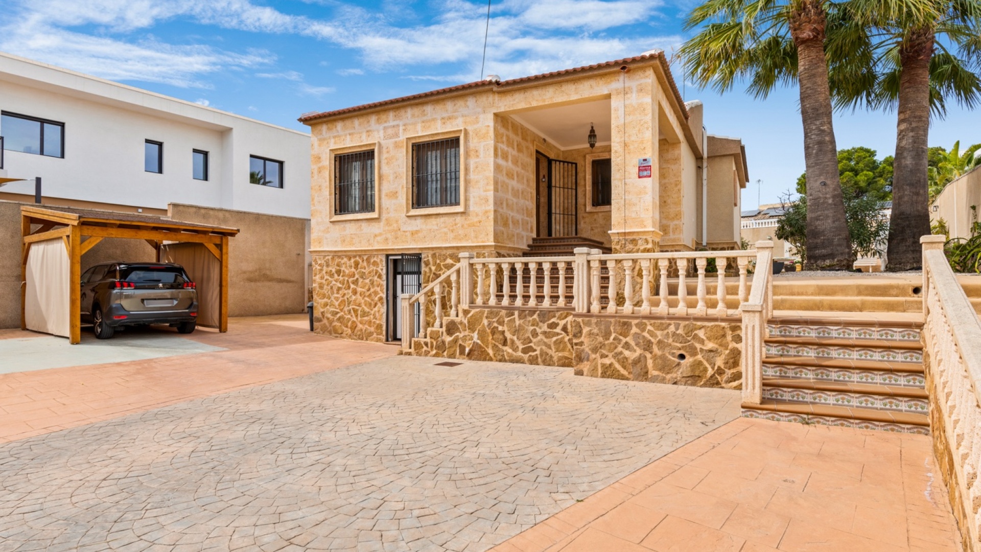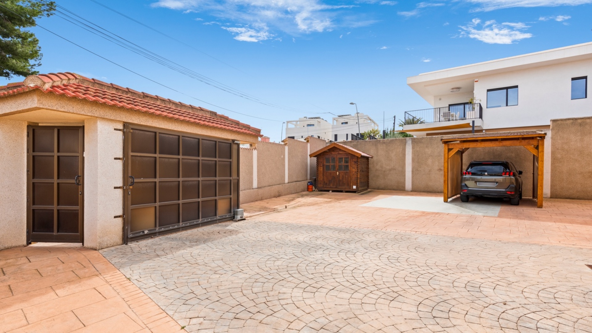 Mysigt och rymligt hem med en idealisk planlösning för komfort och avskildhet. Entréplanet har två sovrum, varav det ena har eget badrum, dusch, luftkonditionering och takfläkt, tillsammans med ett extra enkelrum. Det finns också ett badrum med dusch för gästerna. Det stora vardagsrummet med matplats, luftkonditionering, takfläkt och radiator skapar en bekväm och ljus atmosfär. Det fristående köket, helt renoverat, är utrustat med nya vitvaror och har direkt tillgång till verandan, där en imponerande, stor pool (10x5) ligger, omgiven av vidsträckta ytor perfekta för att njuta av utomhus. På nedre våningen når du den från utsidan eller via den inre trappan som förbinder båda nivåerna. Denna våning erbjuder ett öppet rum med två enkelsängar, stora garderober och på baksidan ett sovrum med dubbelsäng. Det finns även ett separat badrum med dusch och ett förråd. Husets exteriör är omgiven av en vacker trädgård och en veranda med ett bord för uteservering. Poolen med dusch erbjuder avskildhet och lugn. Fastigheten har tillräckligt med utrymme för tre bilar, samt automatiska grindar för extra bekvämlighet och säkerhet. Perfekt för att njuta av familjens eller vänners tid. Beläget bara några minuter från Parque de los Balcones, som har olika sportfaciliteter och en hundpark, har detta hem ett utmärkt läge. Dessutom är det mycket nära ett köpcentrum med restauranger, stormarknader och andra tjänster, vilket ger komfort och bekvämlighet för det dagliga livet. Perfekt för dem som söker ett lugnt hem men välanslutna.