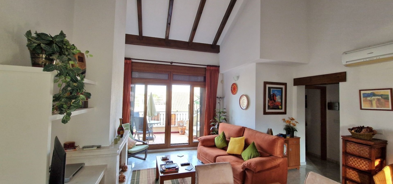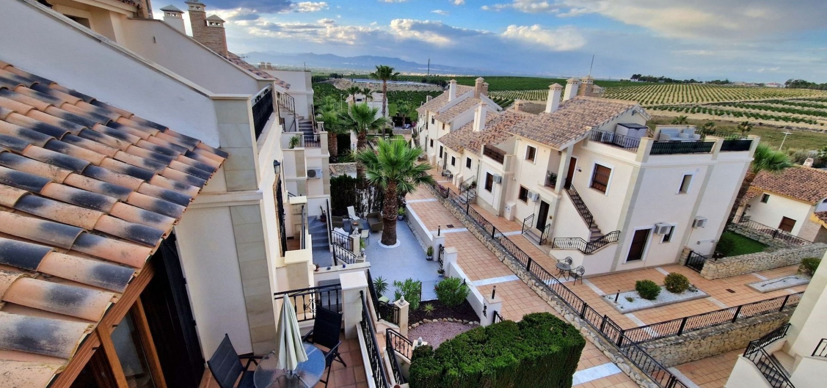 Till salu: en härlig lägenhet på översta våningen belägen i det eftertraktade området Algorfa, La Finca Golf. Denna återförsäljningsfastighet erbjuder 75 kvadratmeter internt utrymme, med två bekväma sovrum och två välutrustade badrum, vilket gör den perfekt för familjer eller de som söker extra utrymme för gäster. Njut av fantastisk panoramautsikt över de omgivande bergen och den omgivande landsbygden från din egen privata tillflyktsort. Lata morgnar kan tillbringas på frukostterrassen, där du kan njuta av den fantastiska utsikten över golfbanan och se golfare putta på 6:e green. Lägenheten badar i naturligt ljus och kompletterar den öppna planlösningen som kombinerar avkoppling och funktionalitet. Invånarna kan dra nytta av en gemensam pool, perfekt för att njuta av varma dagar eller träffa grannar. Området är känt för sin lugna atmosfär, tillsammans med bekväm tillgång till lokala bekvämligheter, inklusive affärer, restauranger och fritidsaktiviteter. Algorfa, La Finca Golf erbjuder en unik blandning av avkoppling och fritid, vilket gör det till en idealisk plats för både permanent boende och semesterresor. Missa inte möjligheten att äga denna charmiga lägenhet i ett pulserande samhälle. Kontakta oss för att boka ett visningstillfälle eller för att lägga ett bud.