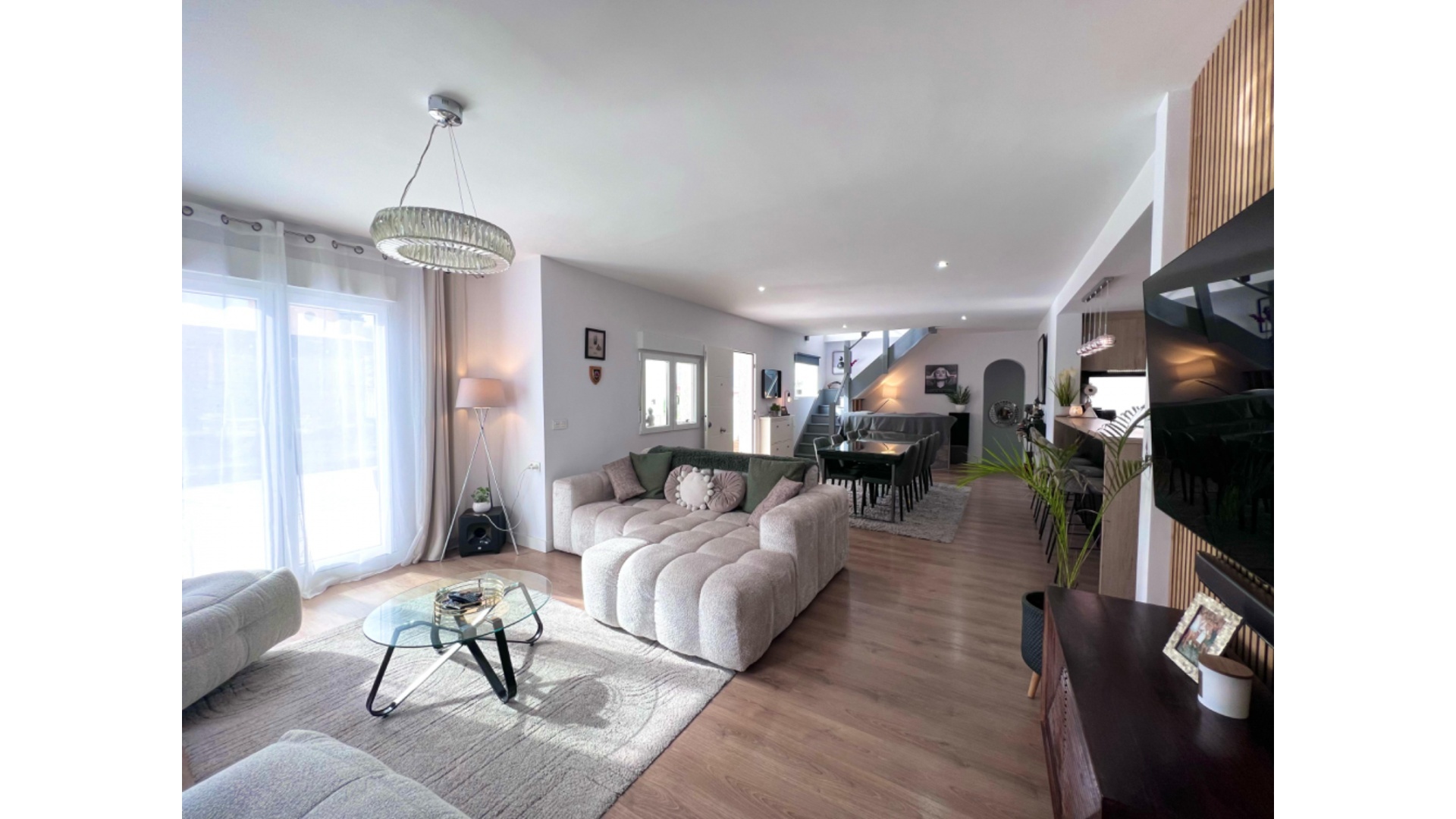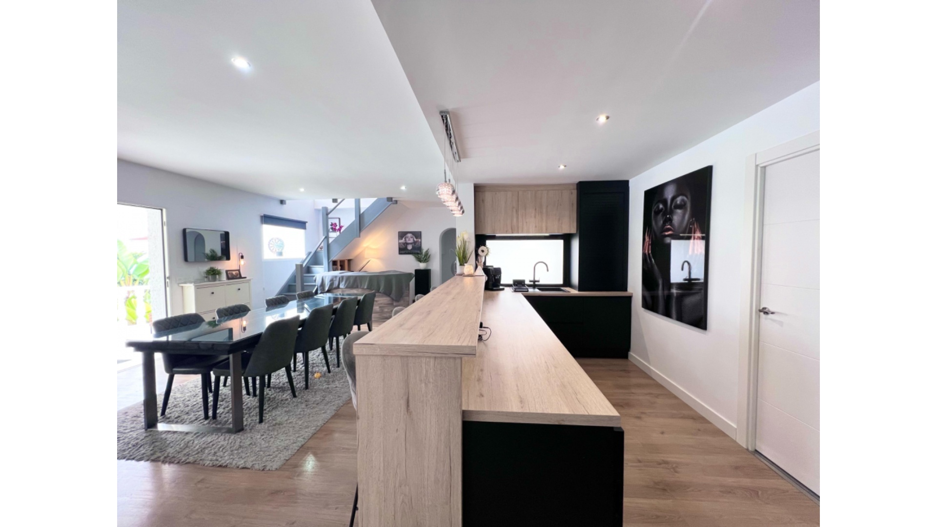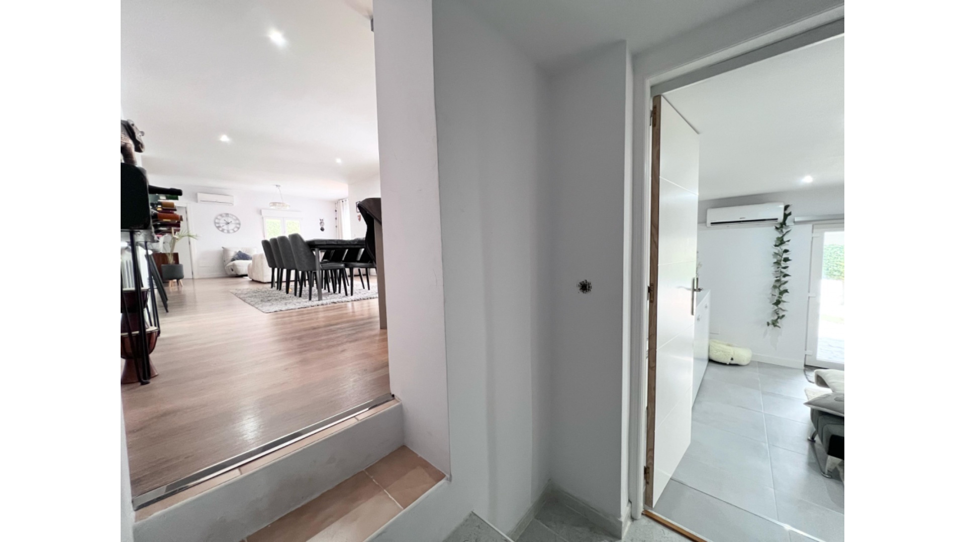 Rymligt familjehem med separat lägenhet i utmärkt läge. Vi är glada över att kunna presentera detta generöst tilltagna familjehem, nyligen renoverat av den nuvarande ägaren. Boendet inkluderar: Stort vardagsrum/matsal med ett nyligen utrustat kök i amerikansk stil med en frukostbar. Separat grovkök för extra bekvämlighet. Andra vardagsrummet/sovrum 5 – mångsidigt utrymme för att passa dina behov. Modernt badrum och ett stort dubbelrum med eget badrum. En trappa upp: en trappa upp med ett badrum med dusch och ett stort badrum. Två extra sovrum och ett extra badrum kompletterar övervåningen. Fastigheten har också en separat lägenhet med ett sovrum, perfekt för gäster eller som en uthyrningsmöjlighet. Beläget i en lugn återvändsgränd och bara 300 meter från lokala barer och restauranger, erbjuder villan den perfekta balansen mellan avskildhet och bekvämlighet, bara en kort bit från centrum av Ciudad Quesada på en generös tomt på 100 m². funktioner: En stor pool med en grillplats, perfekt för utomhusunderhållning. Terrängparkering för flera fordon. Detta hem erbjuder allt en växande familj behöver, med utrymme, avskildhet och ett fantastiskt läge. Visning rekommenderas varmt!