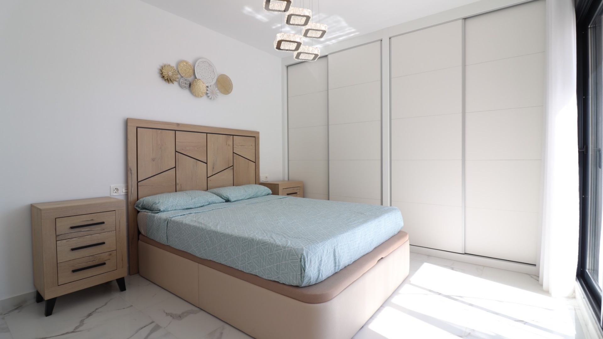 Denna fristående villa med tre sovrum i La Herrada, Los Montesinos, som vetter mot söder, ligger inom 5 minuters promenad från bekvämligheter och faciliteter på själva urbaniseringen och bara 15 minuters bilresa från stranden. Villan har två duschrum, en garderob och ett kök med öppen planlösning. Det enorma solariet på taket erbjuder fantastisk sjöutsikt. Ytterligare funktioner inkluderar elektriska fönsterluckor, luftkonditionering överallt och inbyggda garderober i alla tre sovrummen, med två sovrum med eget badrum. Utanför har fastigheten en privat kaklad och astro-torfad trädgård, en privat 6,5x3 pool och en skuggig uteplats bredvid poolen, perfekt för avkoppling. Terrängparkering är tillgänglig, och två av sovrummen leder ut till en trevligt tilltagen skuggig terrass med lätt sjöutsikt på första våningen. Denna moderna villa, byggd 2021, ligger i södra Costa Blanca och erbjuder kvalitetsfinish, en byggstorlek på 135 m2 på en 213 m2 tomt och har inga kommunala avgifter. DEN HÄR EGENDOMEN GÄNNER OCKSÅ AV EN TURISTLICENS!