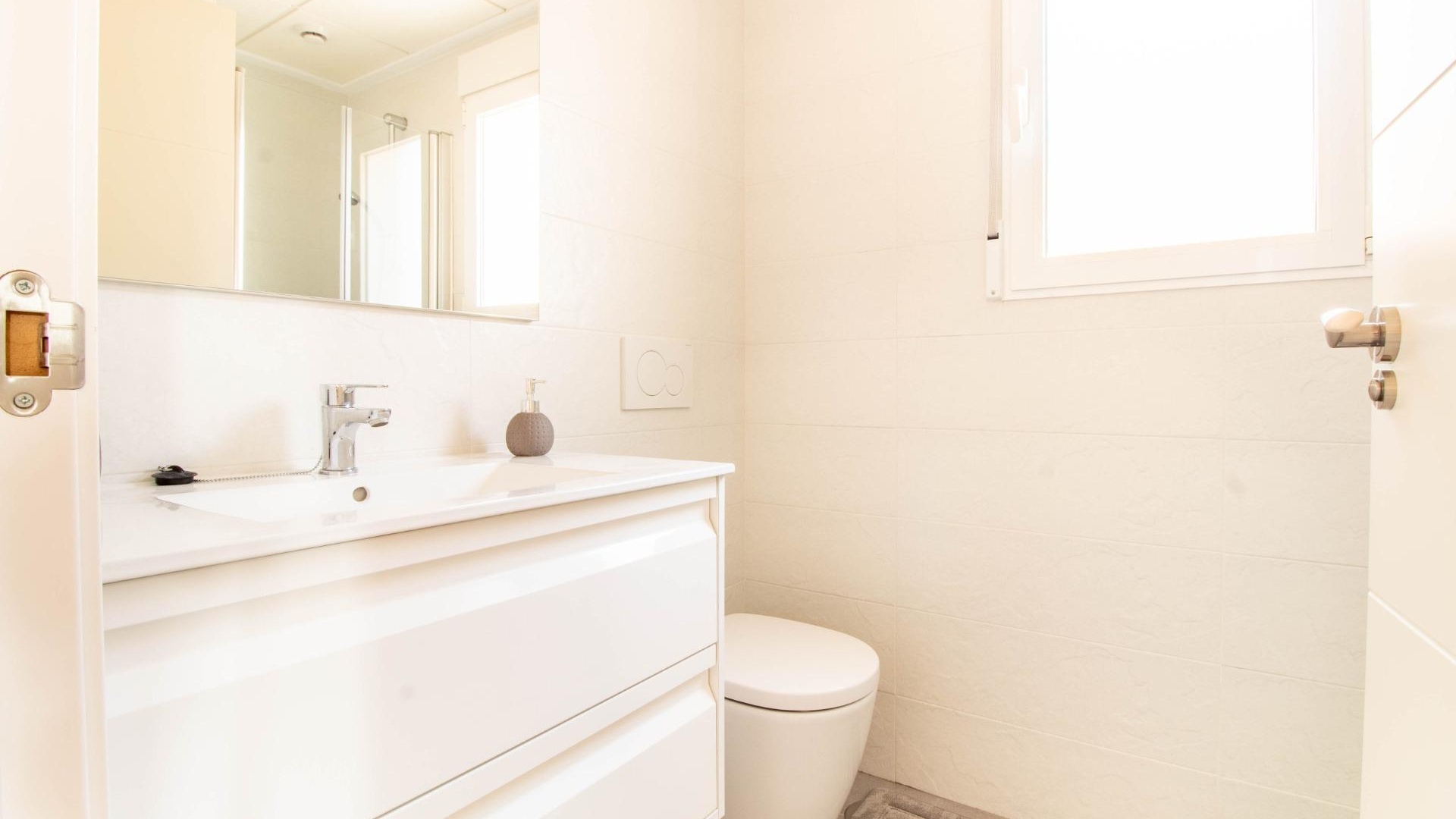 Denna charmiga bungalow på översta våningen erbjuder en bekväm och elegant livsstil med rymliga och välfördelade utrymmen. Den har två sovrum, ett av dem med eget badrum. Vardagsrummet med öppen planlösning ansluter till ett modernt amerikanskt kök som ger direkt tillgång till terrassen, vilket skapar en perfekt miljö för att njuta av utomhusliv. Dessutom kan du från vardagsrummet också komma åt en balkong i söderläge, perfekt för att ta vara på soltimmarna.~~Det privata 56 kvadratmeter stora solariumet blir en oas av lugn, utrustad med jacuzzi och omgiven av tropiska växter, vilket gör att du kan njuta av avkopplande utsikt mot bostadsområdet. På bottenvåningen finns ytterligare en privat terrass på 21 kvadratmeter, perfekt för utomhusaktiviteter. Huset har solpaneler och en parkeringsplats. ~~Detta gated community erbjuder en mängd lyxiga bekvämligheter, inklusive en uppvärmd pool och bastu, såväl som en utomhuspool, gemensamma utrymmen som är perfekta för avkoppling och en lekplats, vilket gör detta till det perfekta hemmet för familjer som söker livskvalitet och lugn.~~Punta Prima är ett lugnt och attraktivt kustområde i Torrevieja, Alicantes gyllene sandstrand och sin vackra vattenstrand. Perfekt för dem som vill njuta av havet och solen, den har en strandpromenad och spektakulära vyer. Området erbjuder ett bra utbud av restauranger, butiker och service samt nära till golfbanor och naturparker. Perfekt för dig som letar efter en avslappnad atmosfär och en utmärkt livskvalitet nära havet.