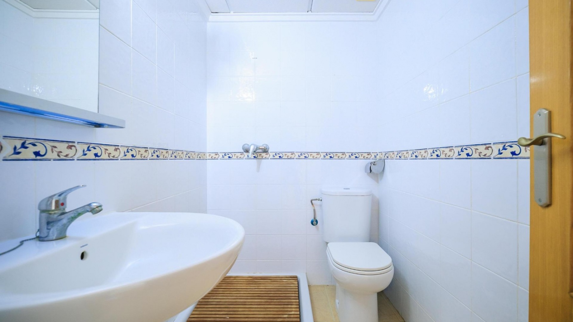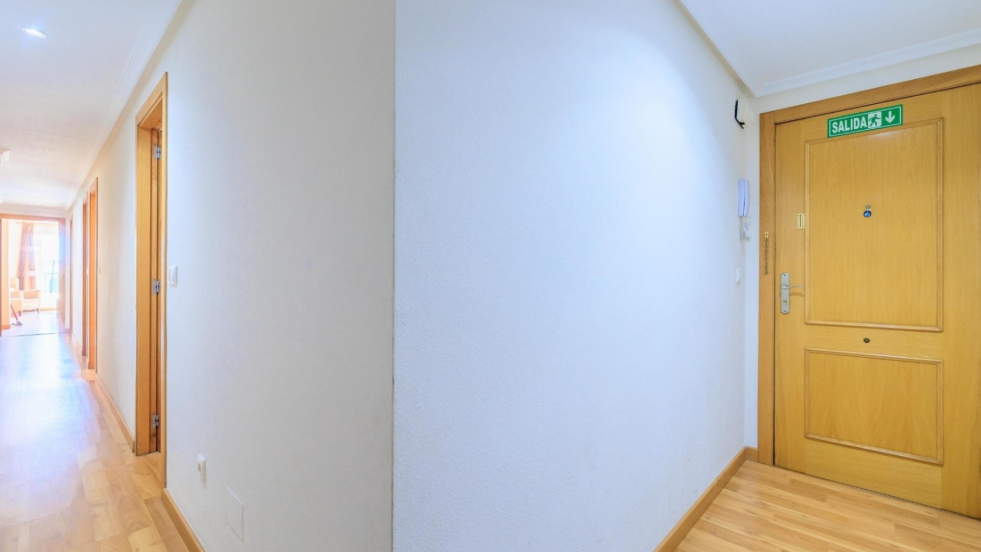 Lägenhet på 98 m² i Torrevieja, belägen på 5:e våningen i en byggnad från 2005 med hiss. Den har 3 sovrum, 2 badrum, ett separat kök och ett vardagsrum med tillgång till en rymlig terrass i söderläge. Lägenheten har luftkonditionering och en underjordisk parkeringsplats.