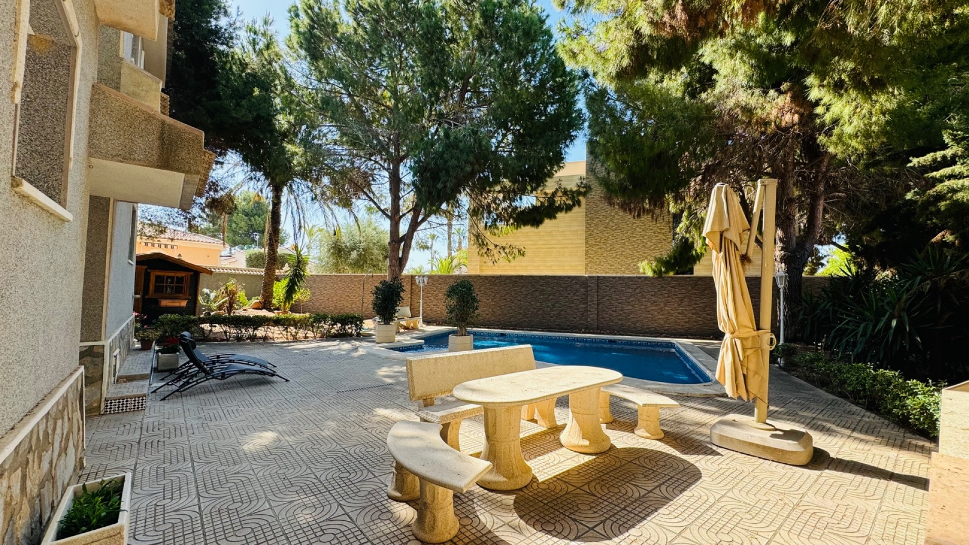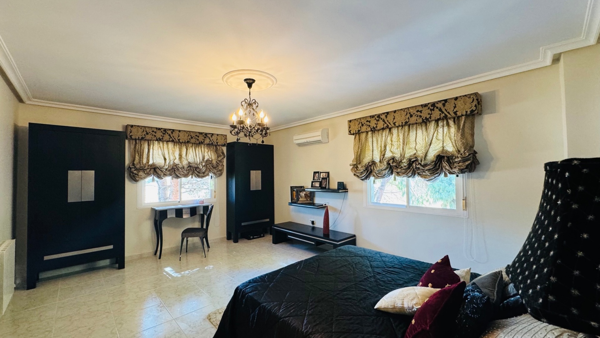 Belägen i det prestigefyllda området Doña Pepa i Ciudad Quesada, denna expansiva villa med 5 sovrum och 5 badrum symboliserar lyx och komfort. Perfekt designad för stora familjer eller de som tycker om gott om utrymme, denna villa har en privat pool och vackert anlagda trädgårdar, och erbjuder en fridfull oas för avkoppling och underhållning. Villans interiör är noggrant utformad, med rymliga vardagsrum fyllda med naturligt ljus, moderna bekvämligheter och högkvalitativa ytskikt överallt. Varje sovrum erbjuder generöst utrymme och avskildhet, med egna badrum som ger en touch av elegans och bekvämlighet. Köket är fullt utrustat med toppmoderna apparater, perfekt för att tillaga gourmetmåltider. De öppna vardagsrums- och matplatserna skapar ett sömlöst flöde, perfekt för att ta emot gäster eller njuta av familjetid. Utomhus är villans privata pool omgiven av frodig grönska och en välskött trädgård, vilket ger en perfekt miljö för utomhussammankomster eller en lugn tillflyktsort. Den stora terrassen erbjuder extra utrymme för att äta utomhus eller slappa i solen. Dona Pepa är ett av Ciudad Quesadas mest eftertraktade områden, denna villa ligger nära lokala bekvämligheter, inklusive affärer, restauranger och rekreationsanläggningar, vilket gör den till ett idealiskt val för dem som söker en lyxig livsstil med ett utmärkt läge.