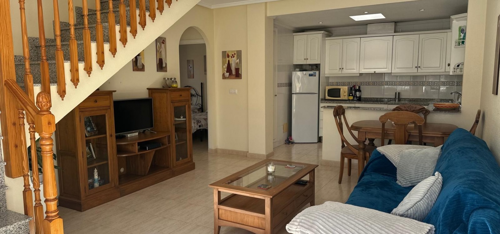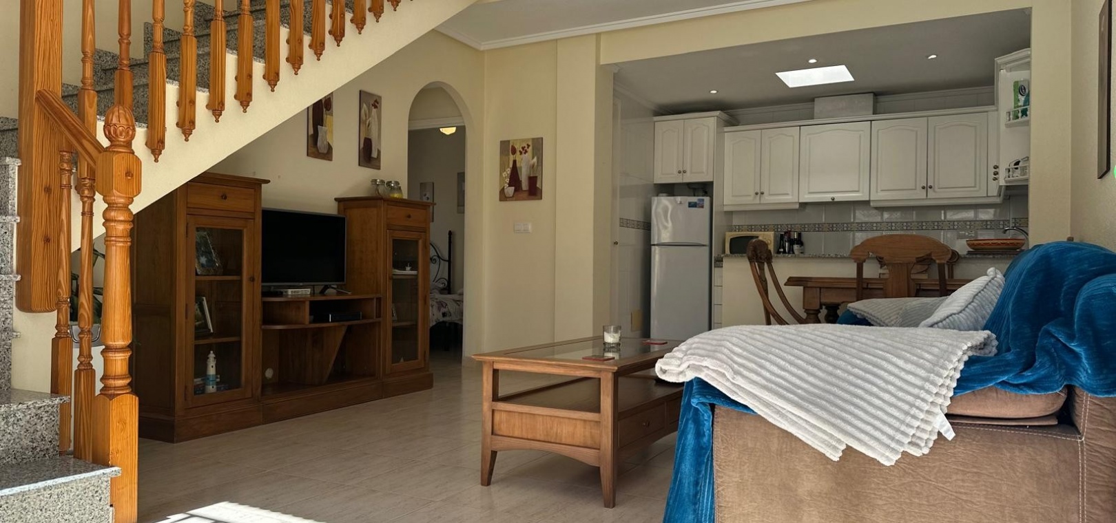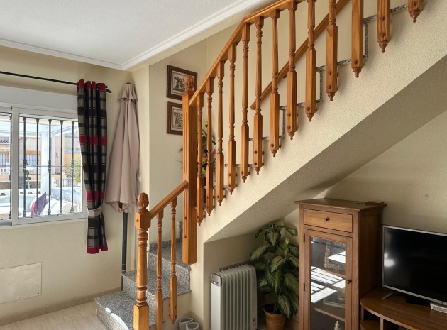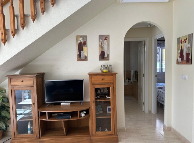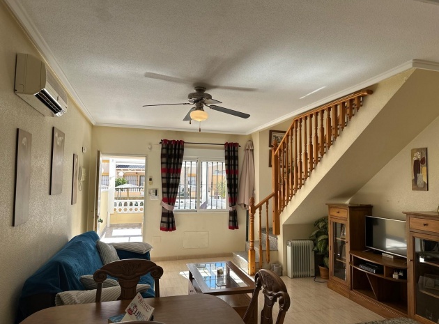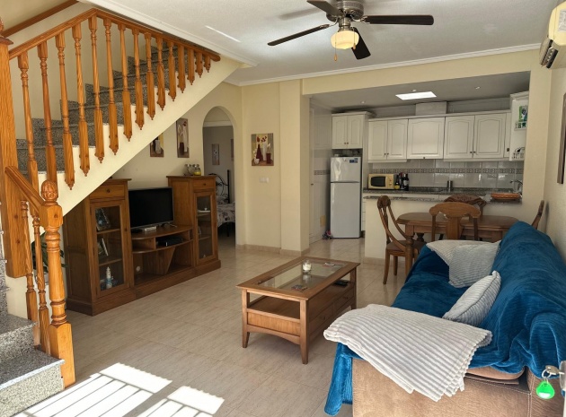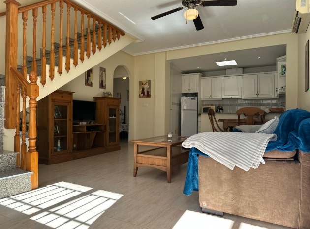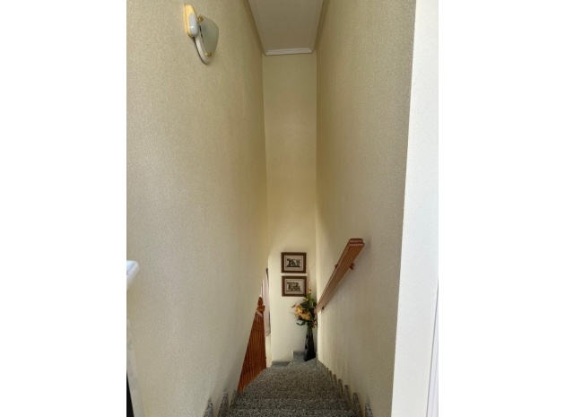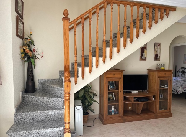 Beläget i ett lugnt och fridfullt område i Los Dolses, erbjuder detta vackert presenterade parhus med 3 sovrum och 2 badrum en idealisk blandning av komfort och bekvämlighet. Fastigheten är fördelad på två våningar och har en nyligen stenlagd trädgård med en fantastisk terrass i söderläge, terrängparkering och en monterad markis för skugga. Dessutom ger en förrådsbod i trädgården extra utrymme för tillhörigheter.