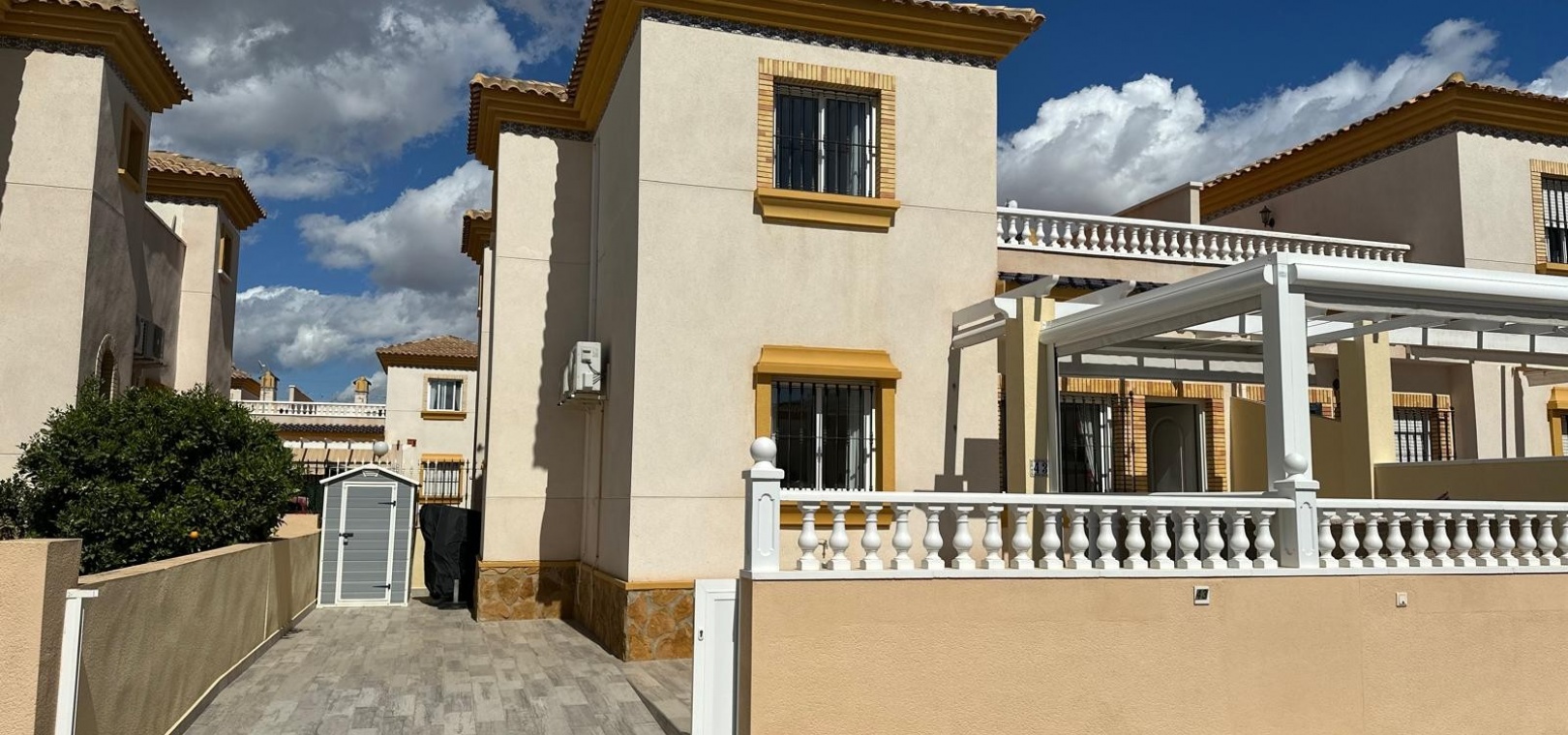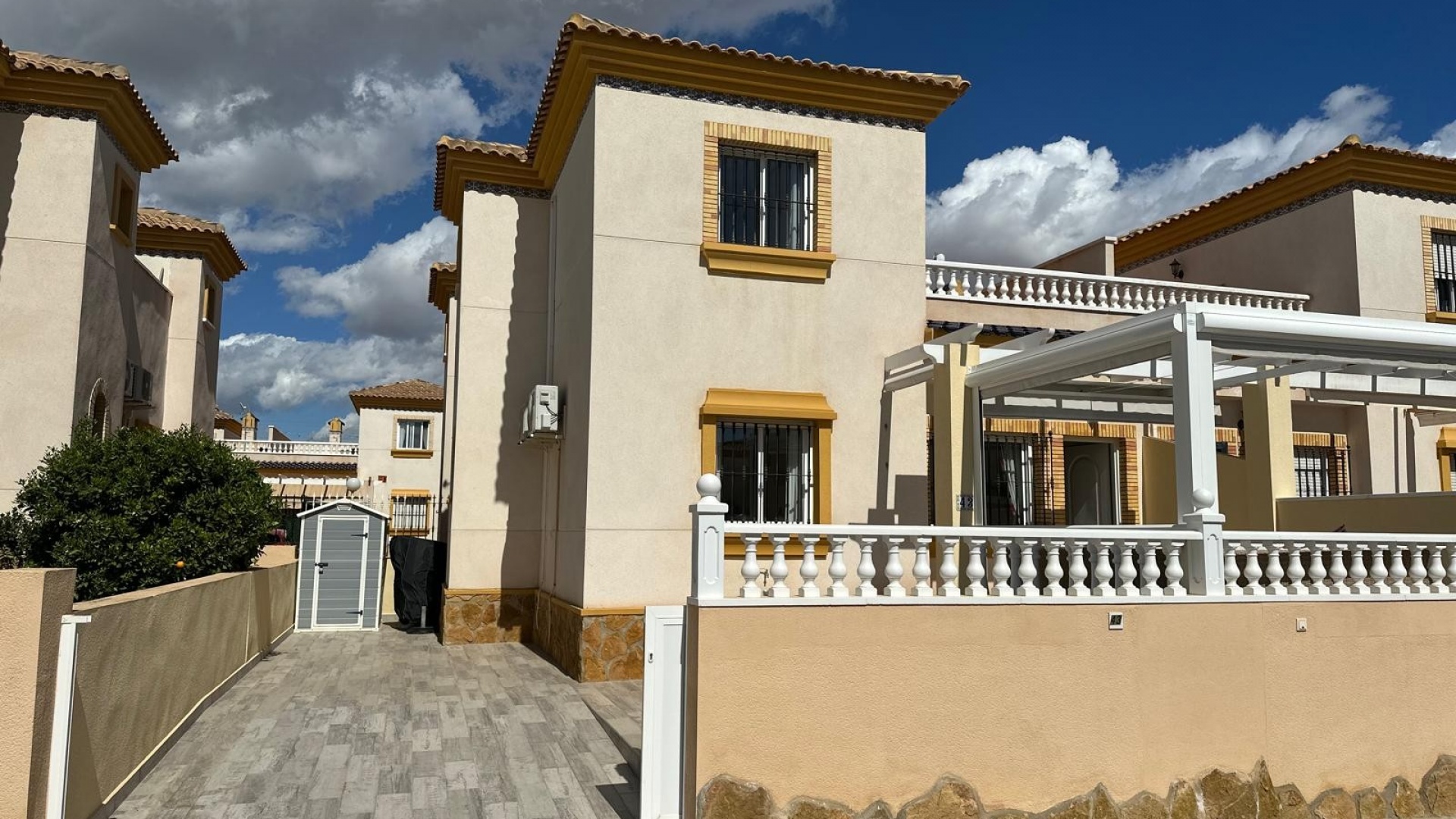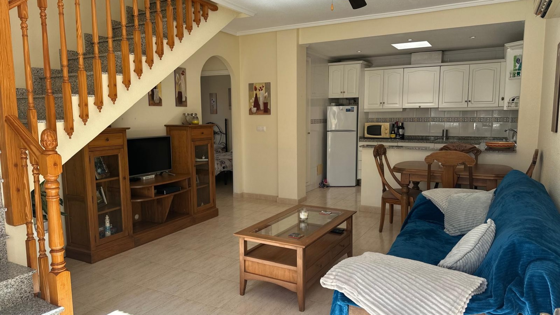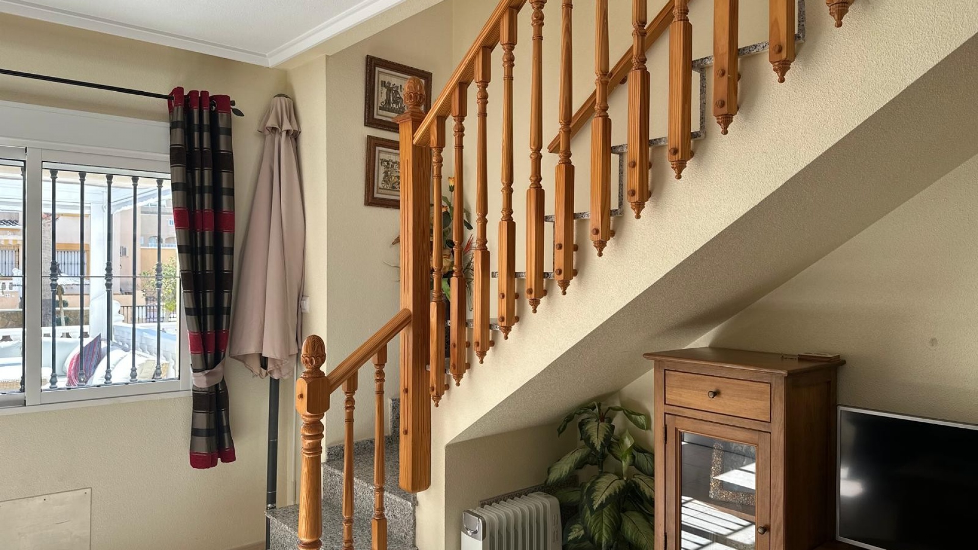 Beläget i ett lugnt och fridfullt område i Los Dolses, erbjuder detta vackert presenterade parhus med 3 sovrum och 2 badrum en idealisk blandning av komfort och bekvämlighet. Fastigheten är fördelad på två våningar och har en nyligen stenlagd trädgård med en fantastisk terrass i söderläge, terrängparkering och en monterad markis för skugga. Dessutom ger en förrådsbod i trädgården extra utrymme för tillhörigheter.