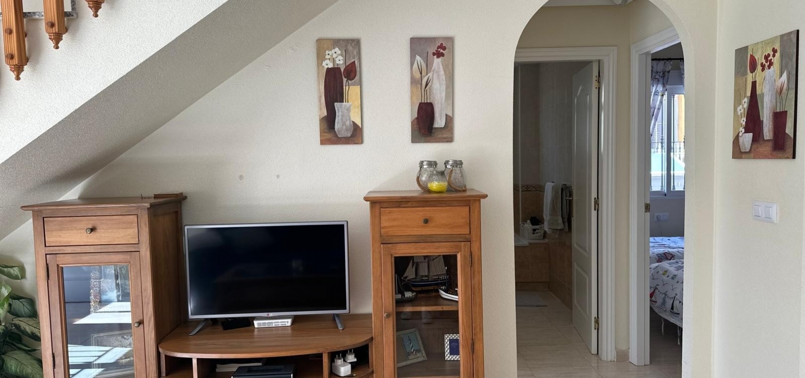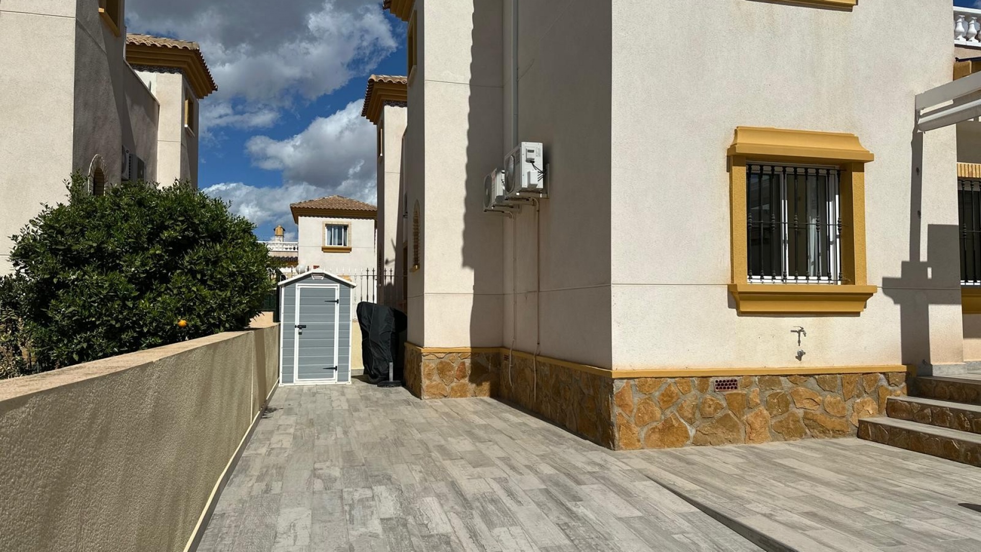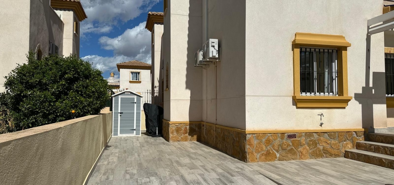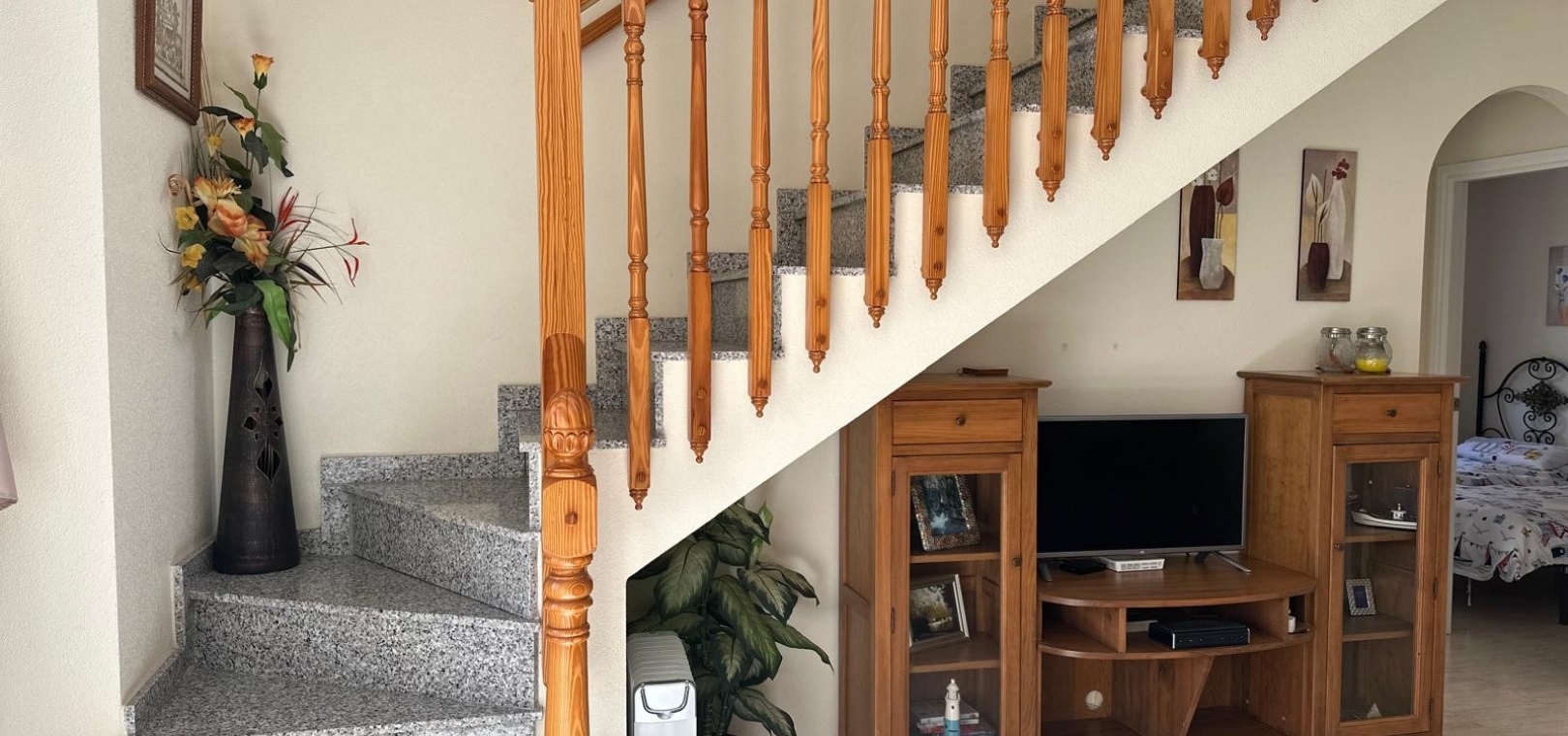 Beläget i ett lugnt och fridfullt område i Los Dolses, erbjuder detta vackert presenterade parhus med 3 sovrum och 2 badrum en idealisk blandning av komfort och bekvämlighet. Fastigheten är fördelad på två våningar och har en nyligen stenlagd trädgård med en fantastisk terrass i söderläge, terrängparkering och en monterad markis för skugga. Dessutom ger en förrådsbod i trädgården extra utrymme för tillhörigheter.