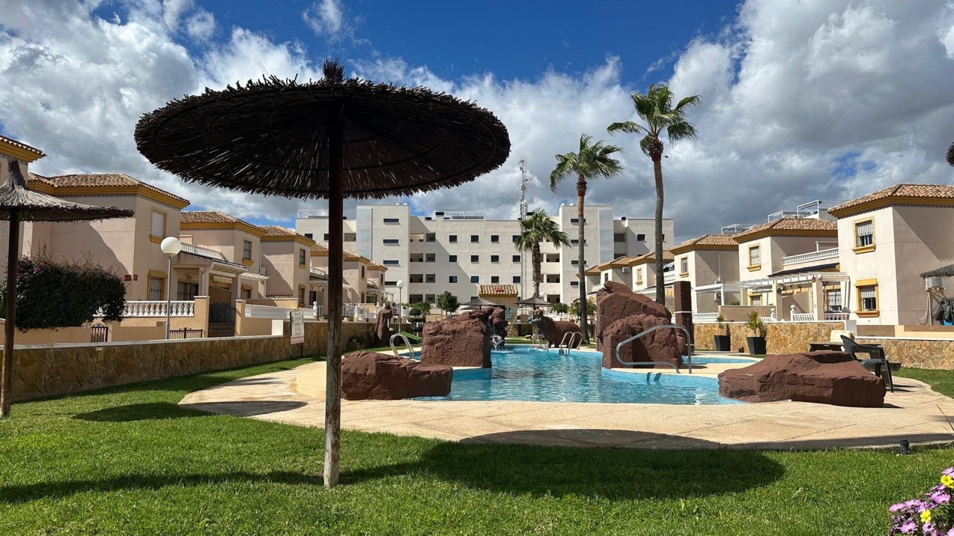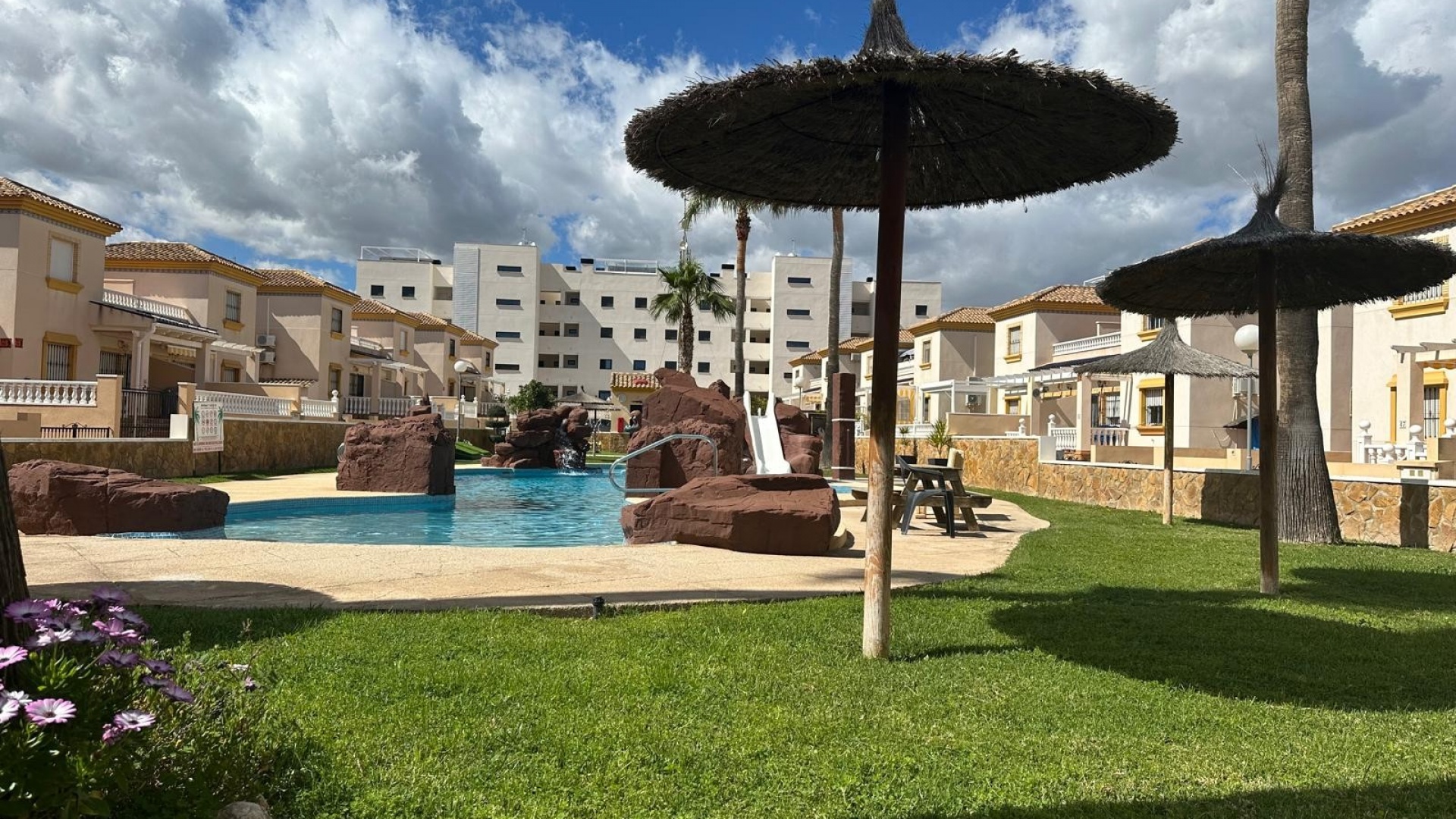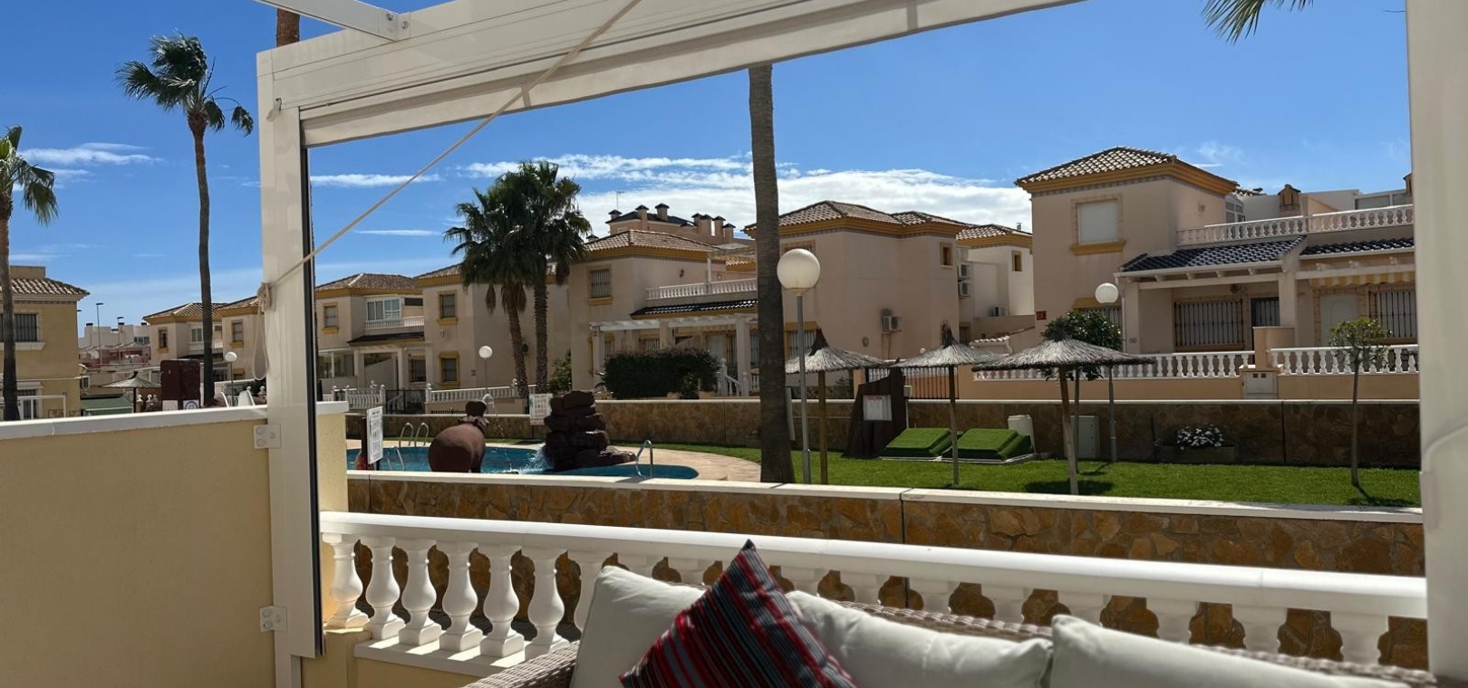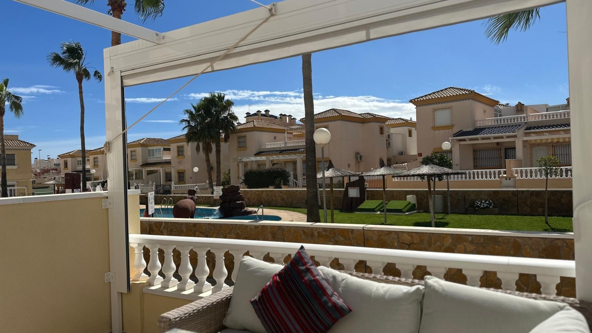 Som en del av ett välskött samhälle har invånarna tillgång till en härlig gemensam pool och anlagda trädgårdsområden och ett litet träningsområde med monterad gymutrustning. Fastigheten säljs delvis möblerad.