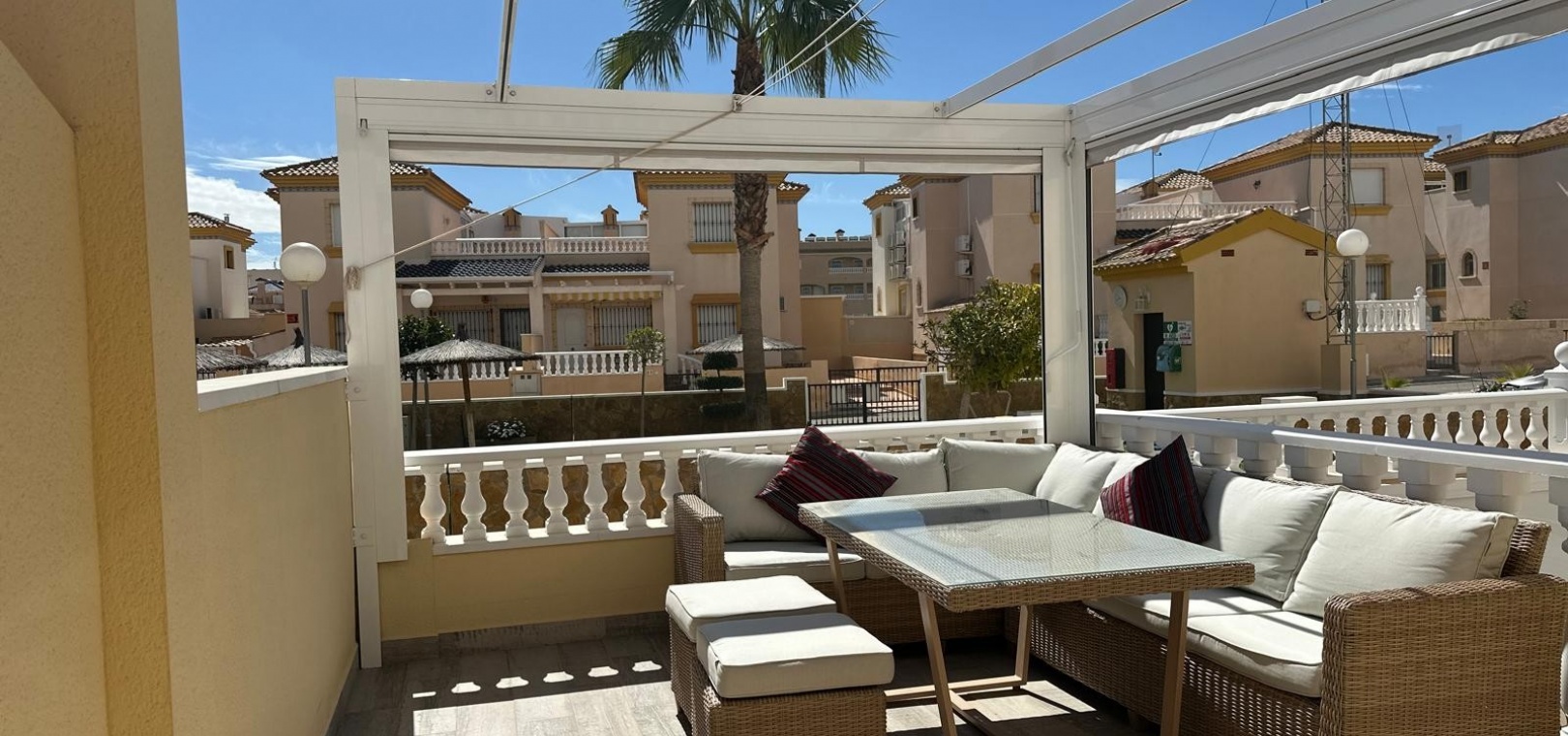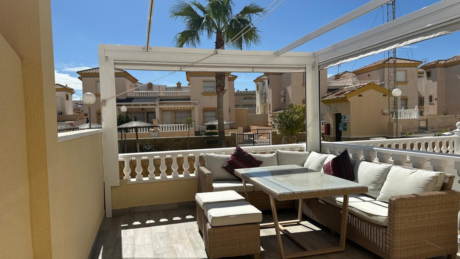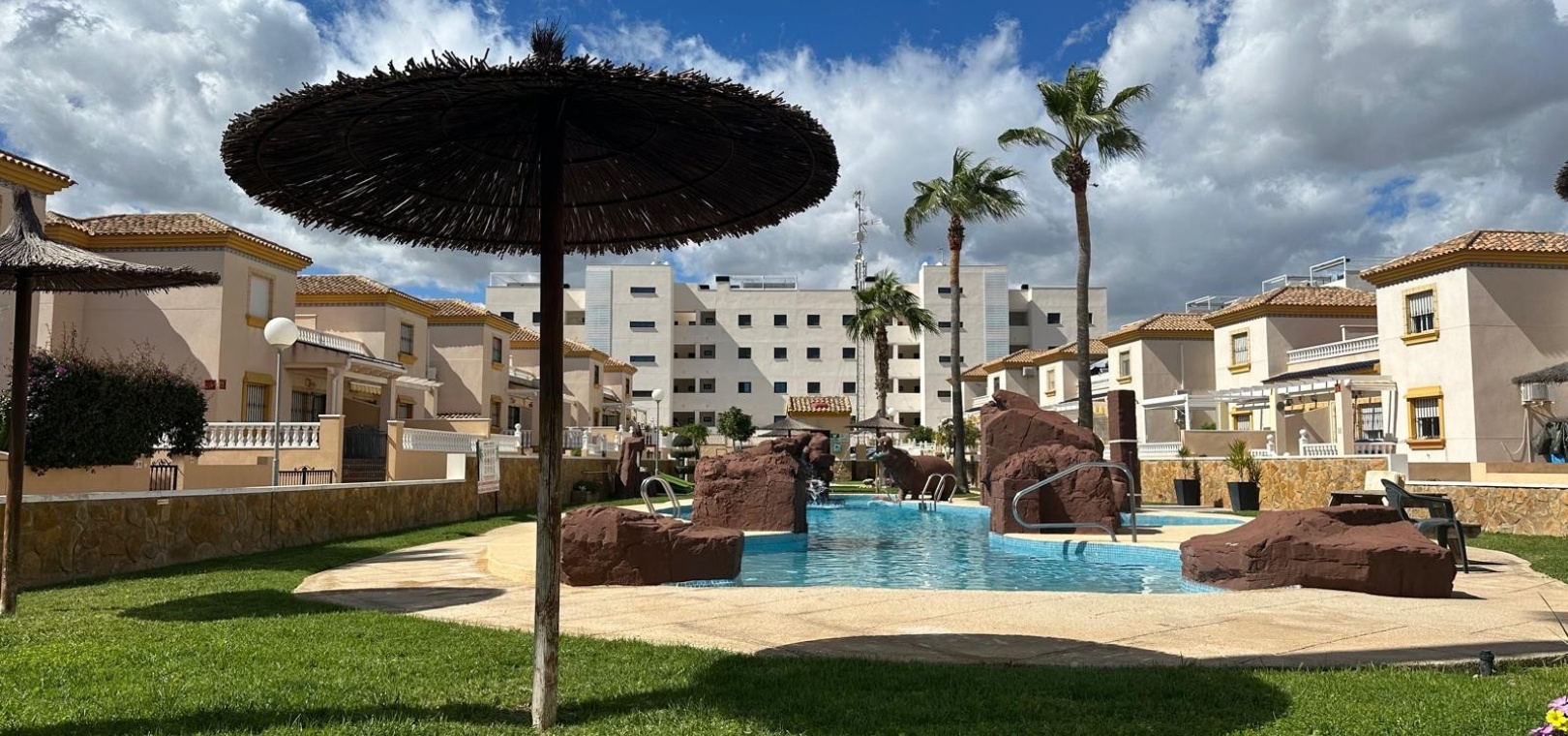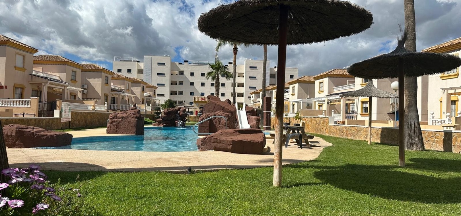 Som en del av ett välskött samhälle har invånarna tillgång till en härlig gemensam pool och anlagda trädgårdsområden och ett litet träningsområde med monterad gymutrustning. Fastigheten säljs delvis möblerad.