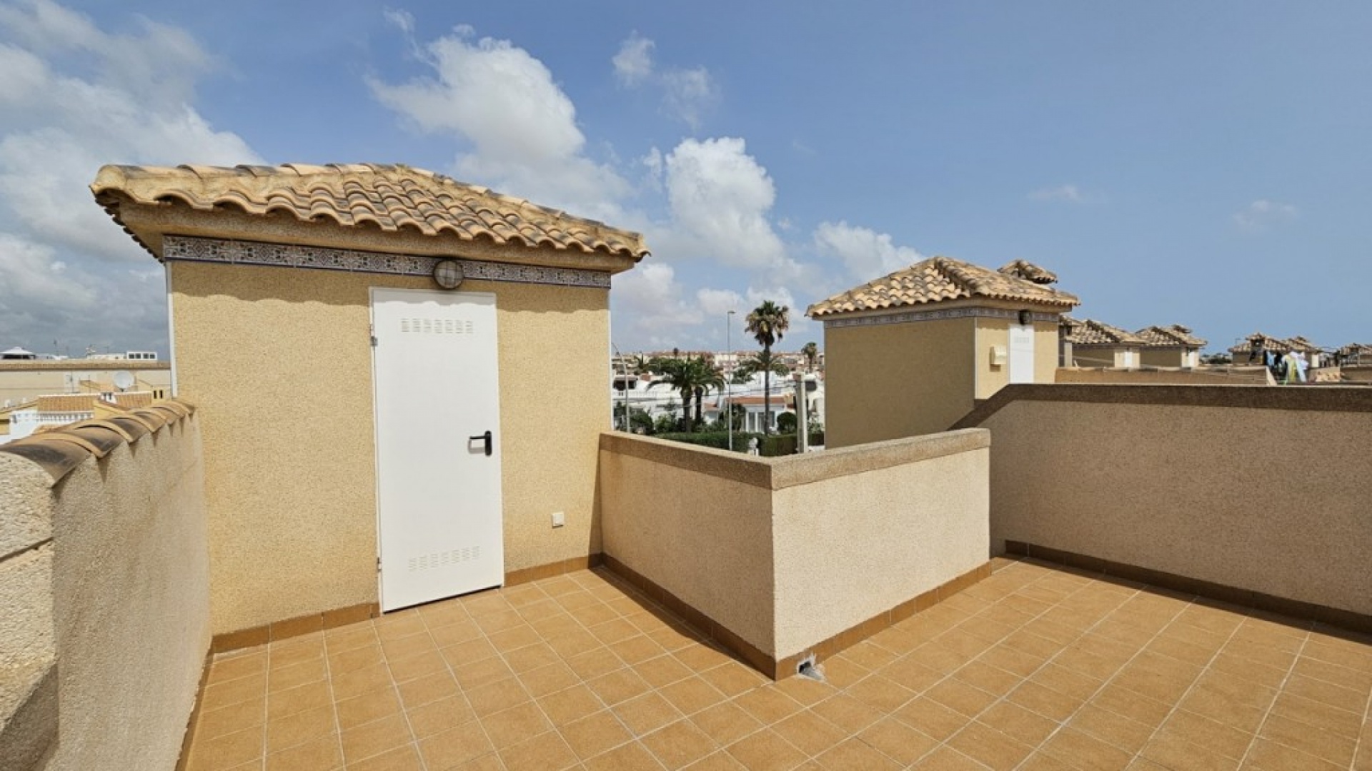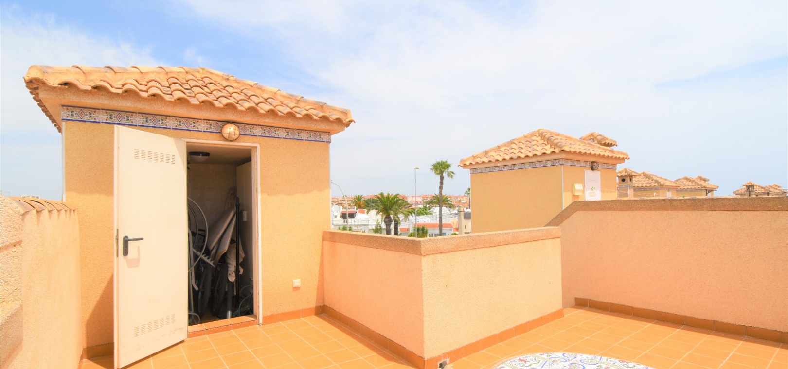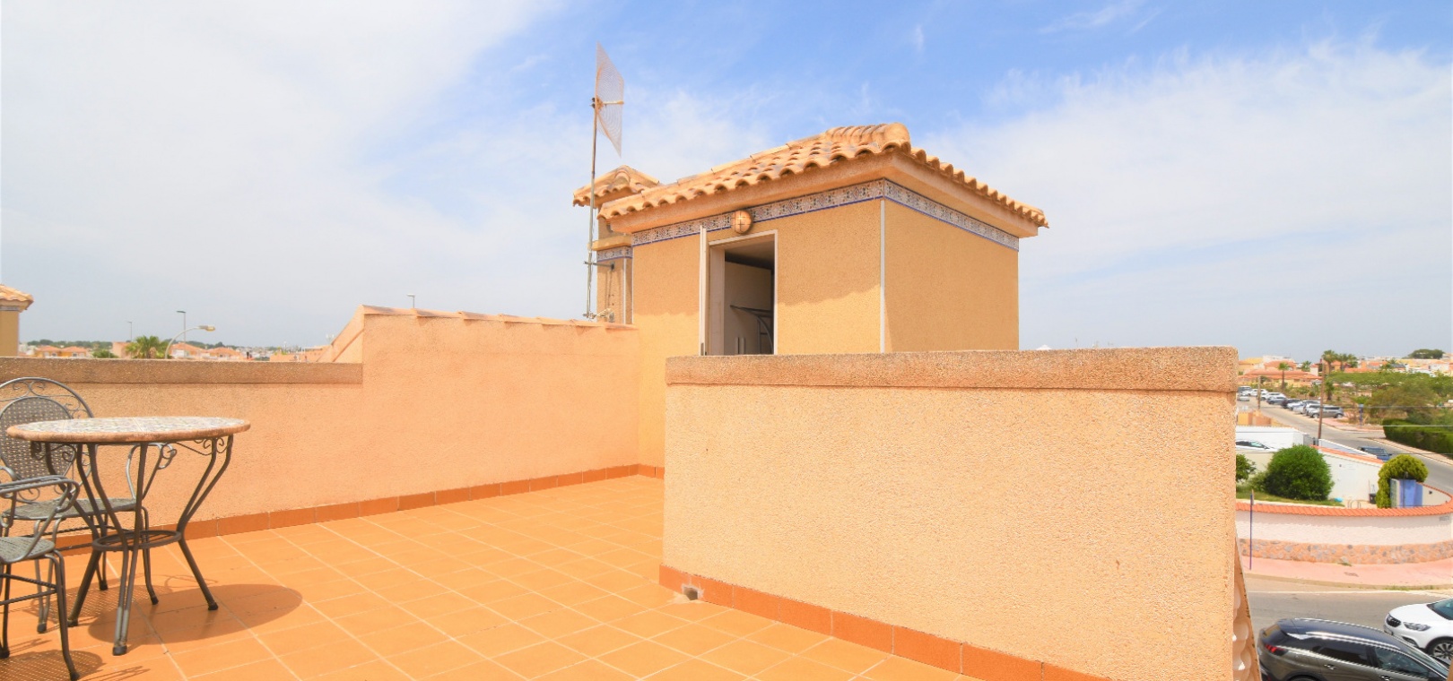 Ett fyrbäddshus med 2 sovrum och 2 badrum i sydvästläge med ett privat takterrass beläget i Playa Flamenca, Costa Blanca South
