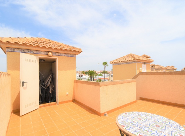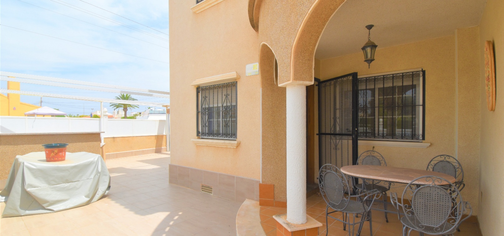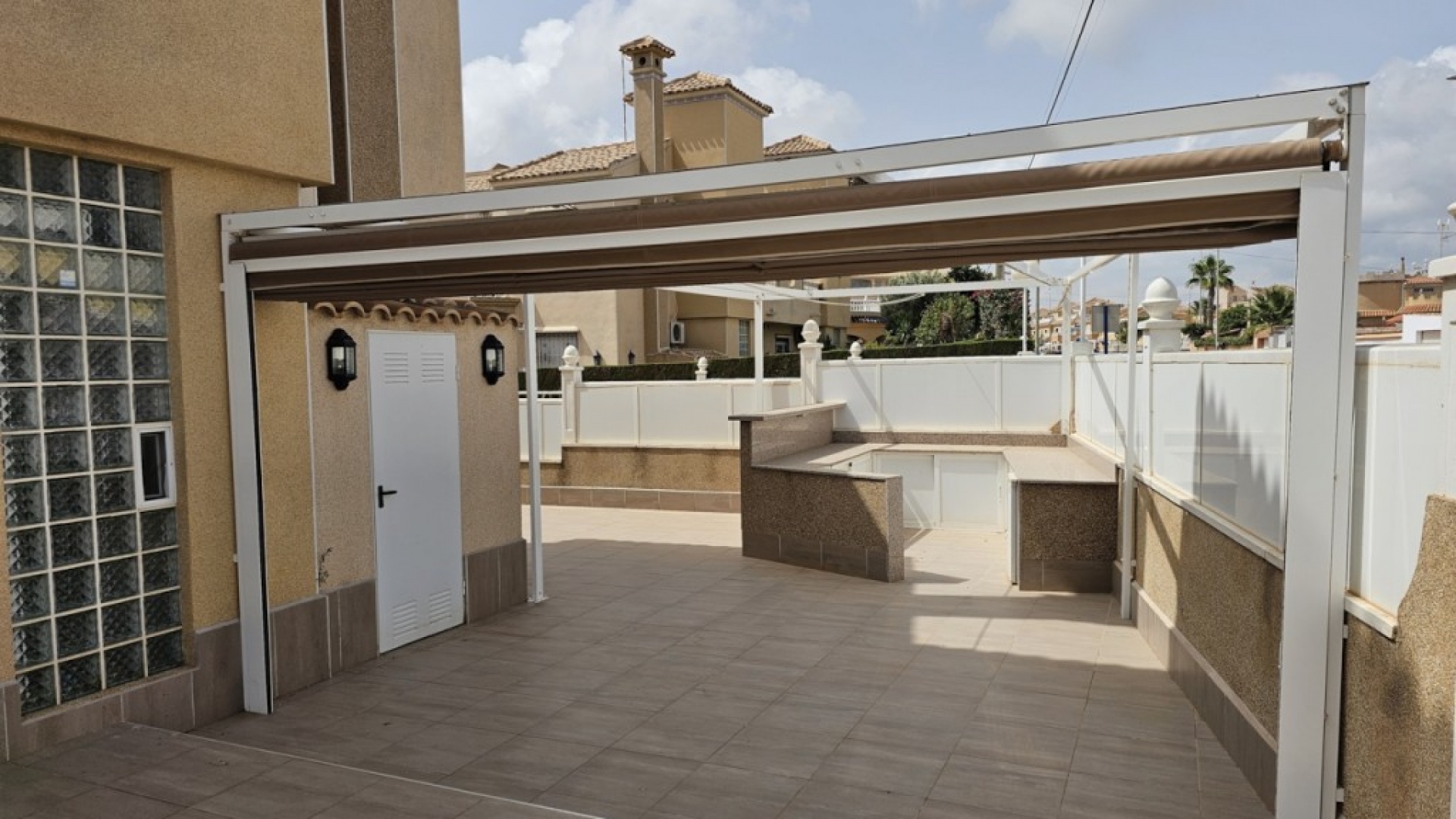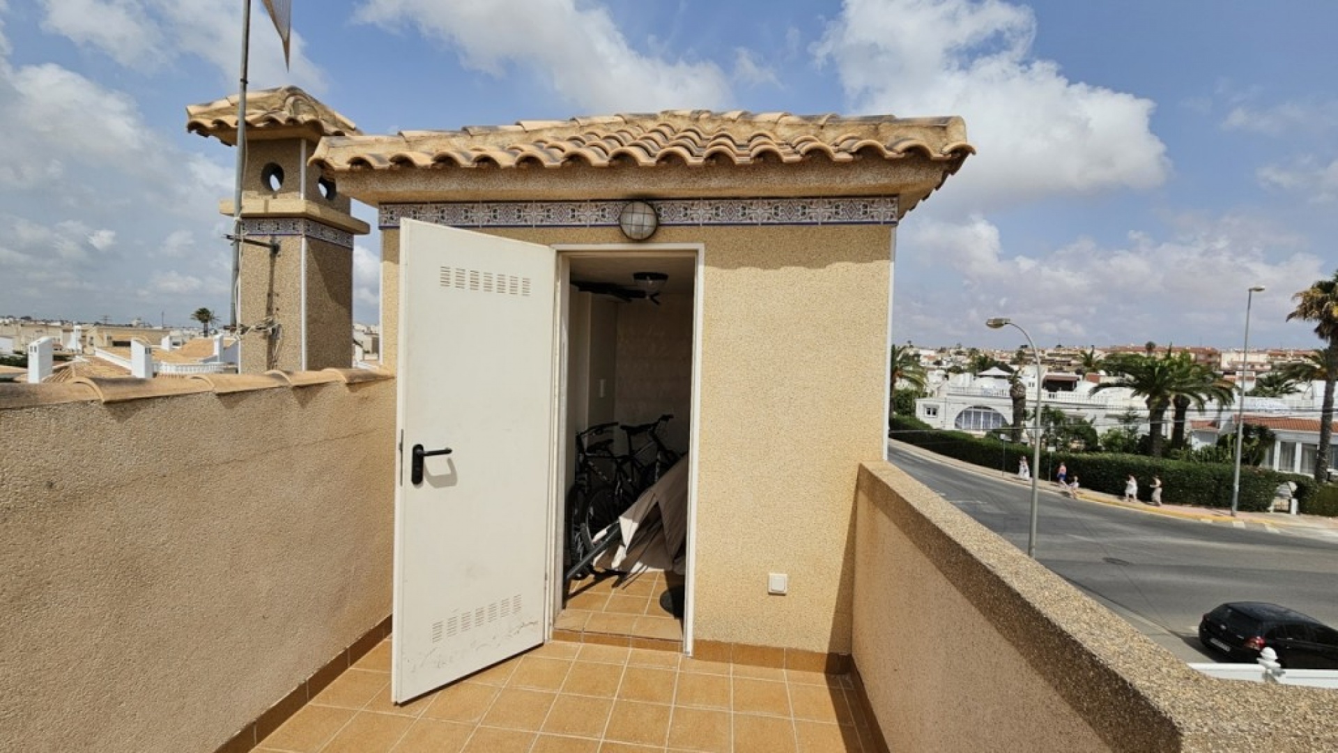 Ett fyrbäddshus med 2 sovrum och 2 badrum i sydvästläge med ett privat takterrass beläget i Playa Flamenca, Costa Blanca South