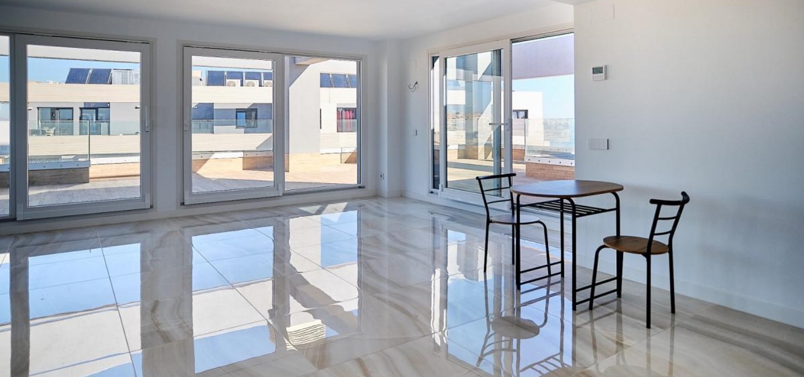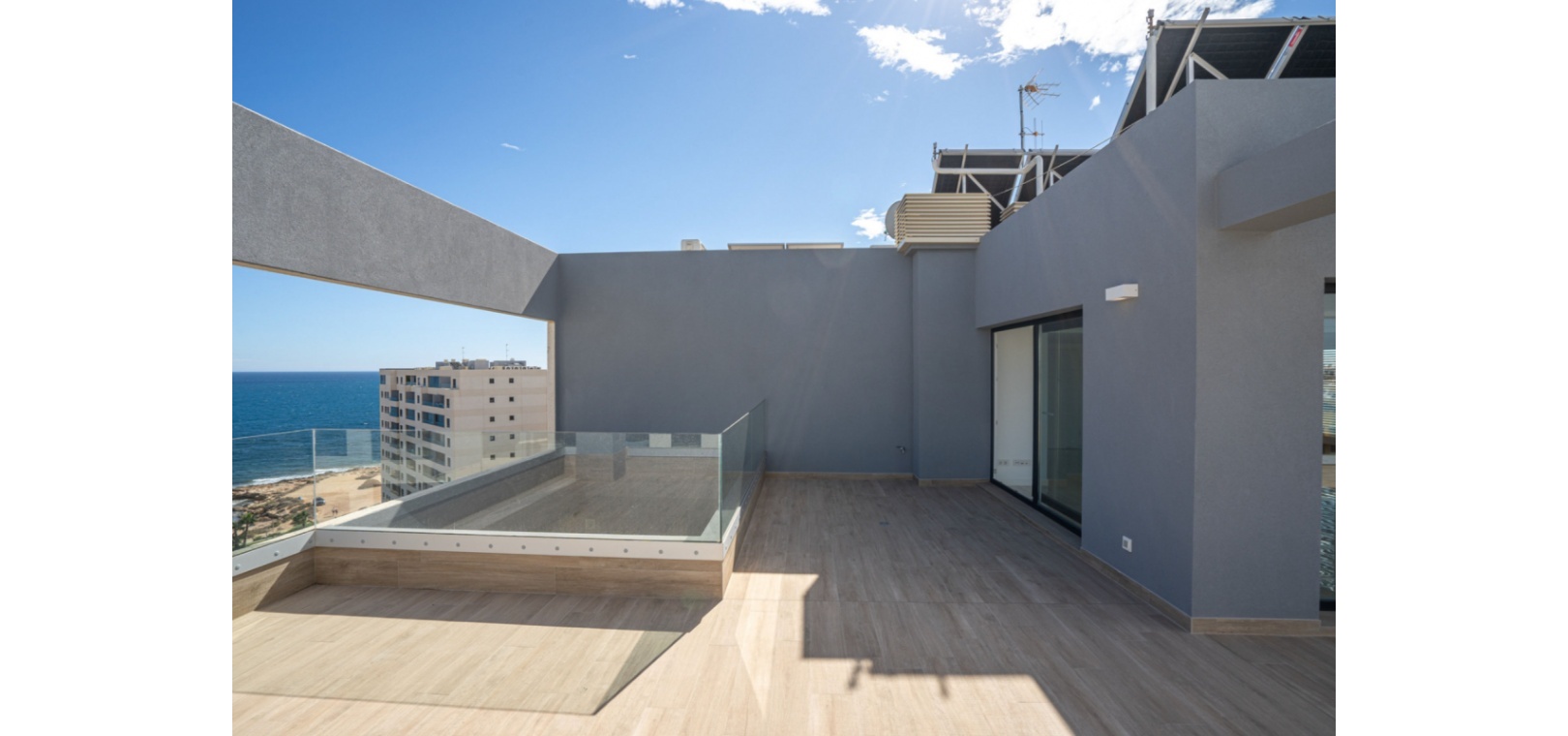 Takvåning vid stranden i Punta Prima Havsutsikt och lyx i varje hörn Pris 649 000 € Upptäck denna imponerande takvåning på 100 m² i Punta Prima, ett av de mest privilegierade områdena i Torrevieja. En unik fastighet med panoramautsikt över havet, perfekt för dig som söker livskvalitet, komfort och ett exceptionellt läge. 2 sovrum 2 badrum 62 m² terrass Stort vardagsrum-matsal med öppet kök Fullt möblerat och utrustat Gemensamma pooler, trädgårdsområden och barnområde Garage och förråd ingår Privat grill och utrymme för att njuta av utomhus Denna takvåning ligger i ett exklusivt samhälle och erbjuder en oöverträffad upplevelse vid Medelhavet. Urbaniseringen är belägen vid stranden, omgiven av all service stormarknader, apotek, restauranger, barer och köpcentra. Dessutom är det bara 40 minuter från Alicantes flygplats. Torrevieja Ett paradis på Costa Blanca Att bo i Torrevieja är synonymt med livskvalitet. Njut av dess medelhavsklimat, med mer än 320 soldagar om året och milda temperaturer även på vintern. Koppla av på gyllene sandstränder som Punta Prima, La Zenia och Playa Flamenca, alla bara några minuter från ditt hem. Bara 10 minuter bort kan du utforska Torreviejas berömda Rosa lagun, ett unikt naturligt under i Europa, perfekt för solnedgångspromenader och terapeutiska bad. Inom gångavstånd hittar du köpcentret La Zenia Boulevard (5 min), Torreviejas småbåtshamn och strandpromenad (10 min) och naturparken La Mata och Torreviejas laguner (15 min). Missa inte möjligheten att bo vid havet med alla bekvämligheter. Kontakta oss nu för mer information och för att se ditt besök!