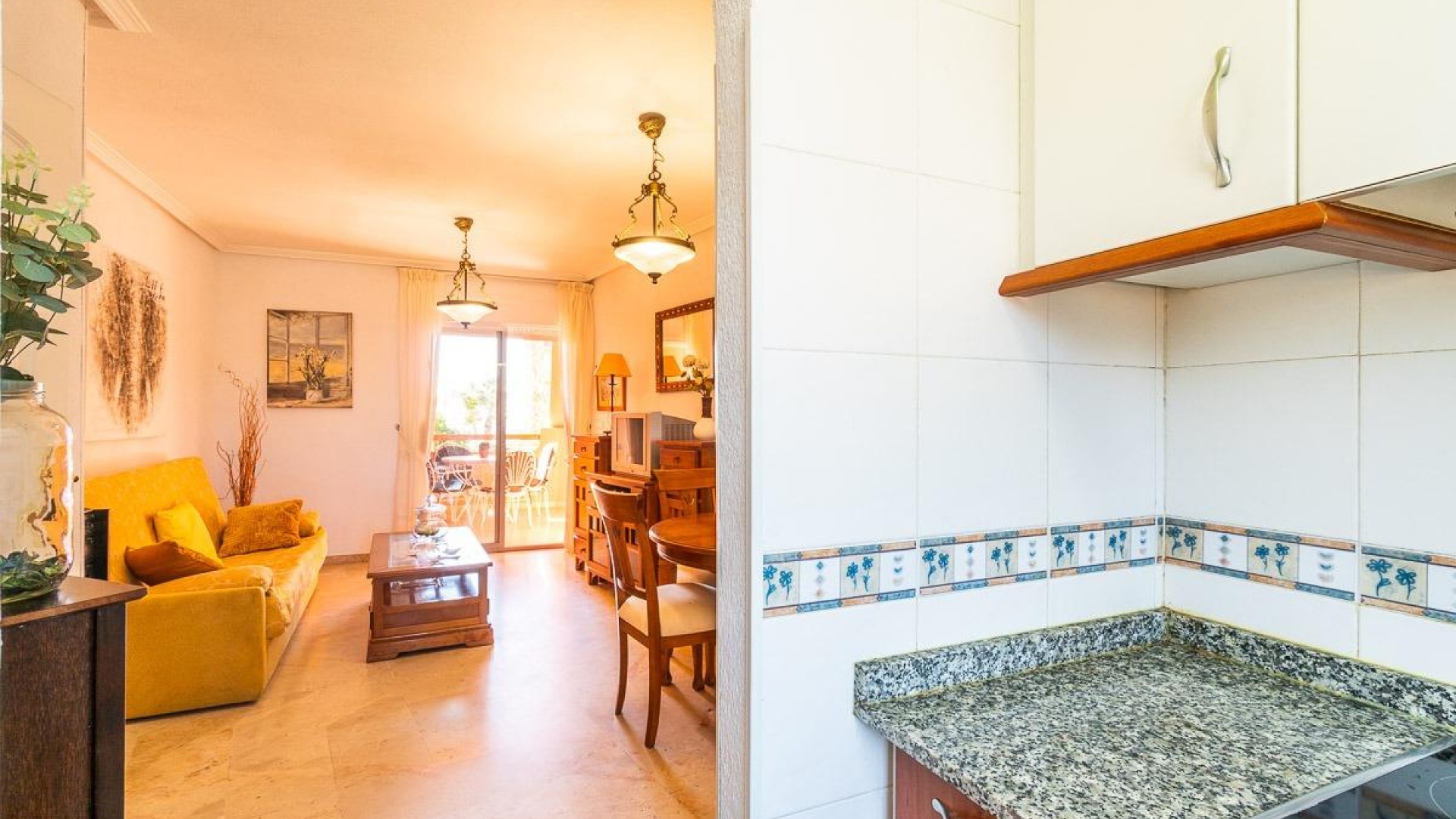 Lägenhet i Las Calas de Campoamor, Orihuela Costa – Ett paradis på Costa Blanca och en stor investering ~ Upptäck denna magnifika lägenhet i Las Calas de Campoamor, belägen i ett exklusivt privat bostadskomplex med direkt tillgång till strandpromenaden, som sträcker sig längs hela Orihuela Costa, och dess fantastiska kristallklara vikar. Ett privilegierat läge där lugn och medelhavsskönhet möts.~~Med 72 m² boyta ligger detta ljusa hem bara 50 meter från stranden och erbjuder 2 dubbelrum, 2 badrum, ett fullt utrustat kök och en mysig balkong som vetter mot sydost, perfekt för att njuta av solen året runt.~~Komplexet har rymliga bekvämligheter och bekvämligheter som behövs för en njutbar grönyta och en bekväm upplevelse. semester.~~Oslagbart läge: Bredvid privata kliniker, Orihuela Costas hälsocenter, och omgivet av viktiga tjänster såsom stormarknader, skolor, sjukhus, köpcentra och golfbanor.~~Inkluderade extrafunktioner: garage, 16 m² förråd, hiss, inbyggda garderober, värme, varm och kall luftsystem med dörren, luftkonditionering, tvättstuga och mer.~ En fantastisk investeringsmöjlighet: Tack vare dess utmärkta läge och funktioner är denna lägenhet idealisk för semesteruthyrning, vilket säkerställer en hög avkastning och konsekvent beläggning under hela året.~~Om du letar efter ett paradis till ett oslagbart pris på Costa Blanca eller en säker investering med stor uthyrningspotential, är denna lägenhet för dig. Missa inte denna möjlighet!