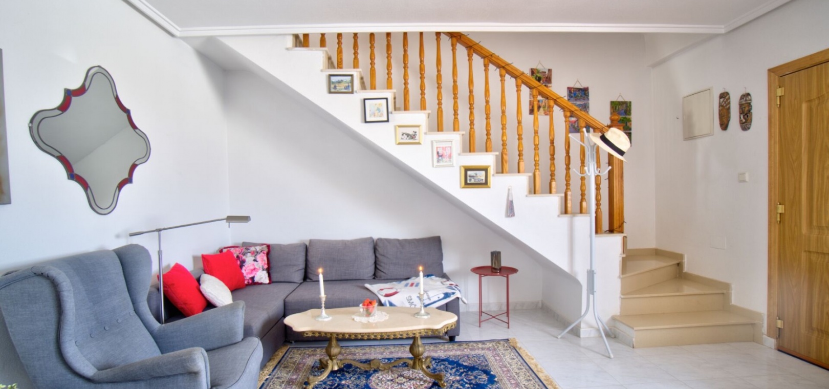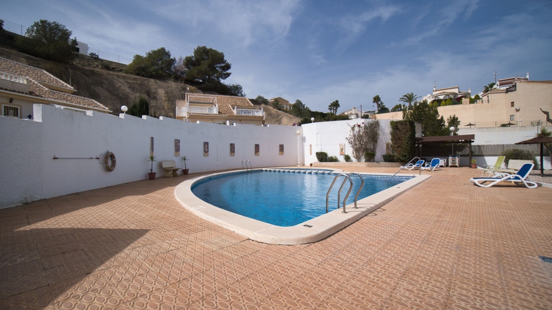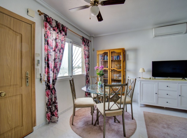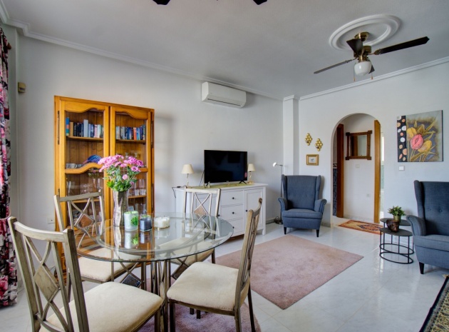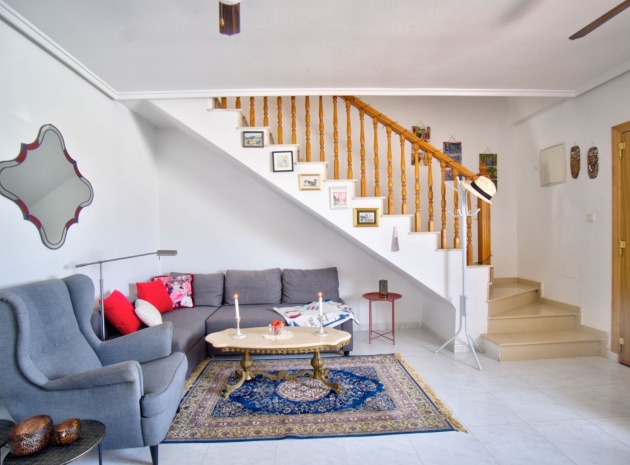 Charmig parhusvilla i Ciudad Quesada, Rojales Inbäddat i hjärtat av det pulserande samhället Ciudad Quesada, Rojales, erbjuder denna förtjusande parhusvilla en bekväm boyta på 75 m². Denna fastighet har två rymliga sovrum och två moderna badrum och är designad för både avkoppling och bekvämlighet. Den parhus är utrustad med luftkonditionering och inkluderar alla nödvändiga vitvaror, vilket säkerställer en inflyttningsklar upplevelse. Dess närhet till den gemensamma poolen är den perfekta platsen för att varva ner under den spanska solen, medan fastigheten har en fantastisk utsikt över det omgivande landskapet. Om Ciudad Quesada Ciudad Quesada grundades på 1970-talet av entreprenören Justo Quesada och har blomstrat till en livlig bostadsstad i Rojales kommun. Beläget cirka 6 kilometer från Medelhavet, erbjuder det invånarna en harmonisk blandning av lugn och tillgänglighet. Området är känt för sitt internationella samfund, med ett betydande antal invånare som kommer från olika europeiska länder, vilket skapar en rik väv av kulturer. Lokala bekvämligheter och attraktioner Invånarna i Ciudad Quesada har en mängd bekvämligheter, inklusive ett varierat utbud av restauranger, kaféer, barer, butiker, apotek och banker. Stadskärnan har nyligen sett till ett mysigt köpcentrum, vilket förbättrar den lokala shoppingupplevelsen. För fritidsaktiviteter har området den berömda golfbanan La Marquesa, en 18-hålsbana som lockar golfentusiaster från hela Europa. Dessutom erbjuder Aquapark Rojales roliga dagar för både familjer och individer. Naturälskare kommer att uppskatta närheten till naturparken El Recorral, perfekt för promenader, cykling eller för att njuta av en picknick i vackra omgivningar. Stränder och klimat Medan Ciudad Quesada ligger i inlandet, är det bara en kort bilresa från de fantastiska stränderna Guardamar del Segura och Torrevieja. Dessa stränder är hyllade för sina fina gyllene sand och kristallklara vatten, och erbjuder idylliska platser för avkoppling och vattensporter. Regionen har ett typiskt medelhavsklimat, kännetecknat av varma somrar och milda vintrar, vilket gör den till en idealisk plats för året runt boende eller semesterresor. Tillgänglighet Villan är bekvämt belägen cirka 40 minuter med bil från både Alicante och Murcia/San Javiers flygplatser, vilket säkerställer enkel tillgång för internationella resenärer. Området har goda vägförbindelser, med stora städer som Elche, Alicante, Valencia, Murcia och Cartagena inom bekvämt räckhåll via motorväg A-7 eller kustväg N-332. Denna villa i Ciudad Quesada erbjuder ett utmärkt tillfälle att omfamna den spanska livsstilen, och erbjuder komfort, bekvämlighet och en livlig gemenskapsatmosfär.