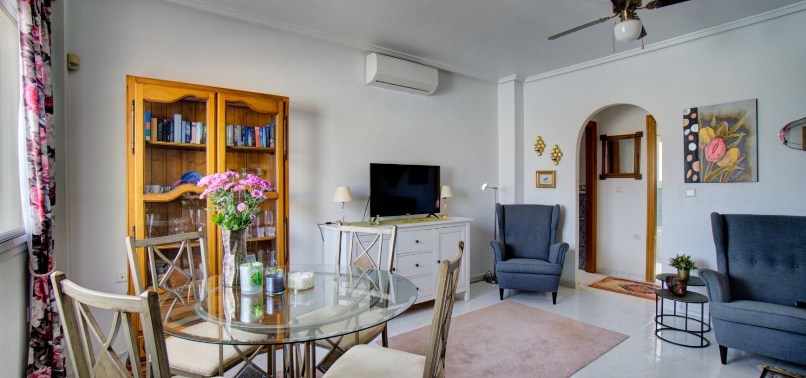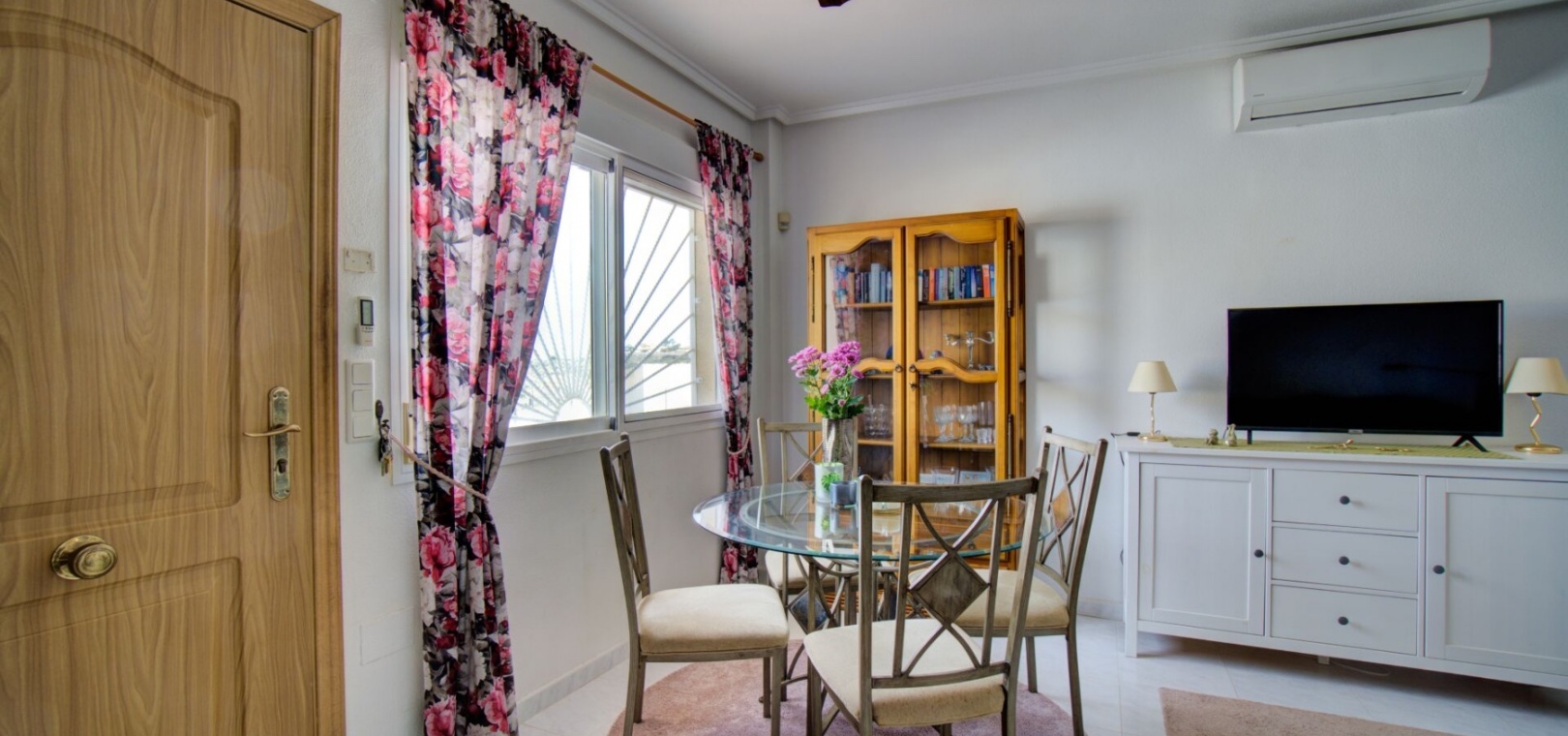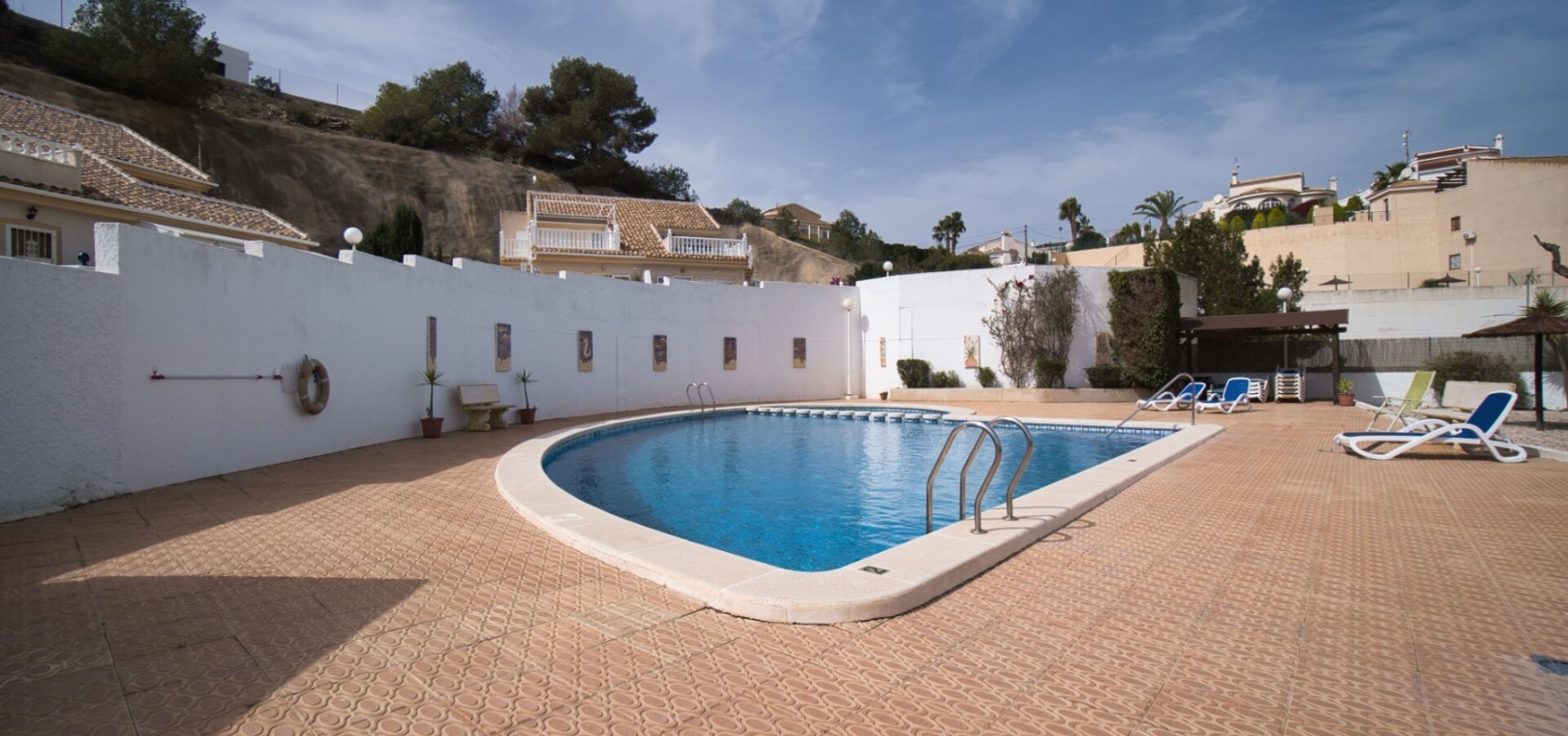 Charmig parhusvilla i Ciudad Quesada, Rojales Inbäddat i hjärtat av det pulserande samhället Ciudad Quesada, Rojales, erbjuder denna förtjusande parhusvilla en bekväm boyta på 75 m². Denna fastighet har två rymliga sovrum och två moderna badrum och är designad för både avkoppling och bekvämlighet. Den parhus är utrustad med luftkonditionering och inkluderar alla nödvändiga vitvaror, vilket säkerställer en inflyttningsklar upplevelse. Dess närhet till den gemensamma poolen är den perfekta platsen för att varva ner under den spanska solen, medan fastigheten har en fantastisk utsikt över det omgivande landskapet. Om Ciudad Quesada Ciudad Quesada grundades på 1970-talet av entreprenören Justo Quesada och har blomstrat till en livlig bostadsstad i Rojales kommun. Beläget cirka 6 kilometer från Medelhavet, erbjuder det invånarna en harmonisk blandning av lugn och tillgänglighet. Området är känt för sitt internationella samfund, med ett betydande antal invånare som kommer från olika europeiska länder, vilket skapar en rik väv av kulturer. Lokala bekvämligheter och attraktioner Invånarna i Ciudad Quesada har en mängd bekvämligheter, inklusive ett varierat utbud av restauranger, kaféer, barer, butiker, apotek och banker. Stadskärnan har nyligen sett till ett mysigt köpcentrum, vilket förbättrar den lokala shoppingupplevelsen. För fritidsaktiviteter har området den berömda golfbanan La Marquesa, en 18-hålsbana som lockar golfentusiaster från hela Europa. Dessutom erbjuder Aquapark Rojales roliga dagar för både familjer och individer. Naturälskare kommer att uppskatta närheten till naturparken El Recorral, perfekt för promenader, cykling eller för att njuta av en picknick i vackra omgivningar. Stränder och klimat Medan Ciudad Quesada ligger i inlandet, är det bara en kort bilresa från de fantastiska stränderna Guardamar del Segura och Torrevieja. Dessa stränder är hyllade för sina fina gyllene sand och kristallklara vatten, och erbjuder idylliska platser för avkoppling och vattensporter. Regionen har ett typiskt medelhavsklimat, kännetecknat av varma somrar och milda vintrar, vilket gör den till en idealisk plats för året runt boende eller semesterresor. Tillgänglighet Villan är bekvämt belägen cirka 40 minuter med bil från både Alicante och Murcia/San Javiers flygplatser, vilket säkerställer enkel tillgång för internationella resenärer. Området har goda vägförbindelser, med stora städer som Elche, Alicante, Valencia, Murcia och Cartagena inom bekvämt räckhåll via motorväg A-7 eller kustväg N-332. Denna villa i Ciudad Quesada erbjuder ett utmärkt tillfälle att omfamna den spanska livsstilen, och erbjuder komfort, bekvämlighet och en livlig gemenskapsatmosfär.